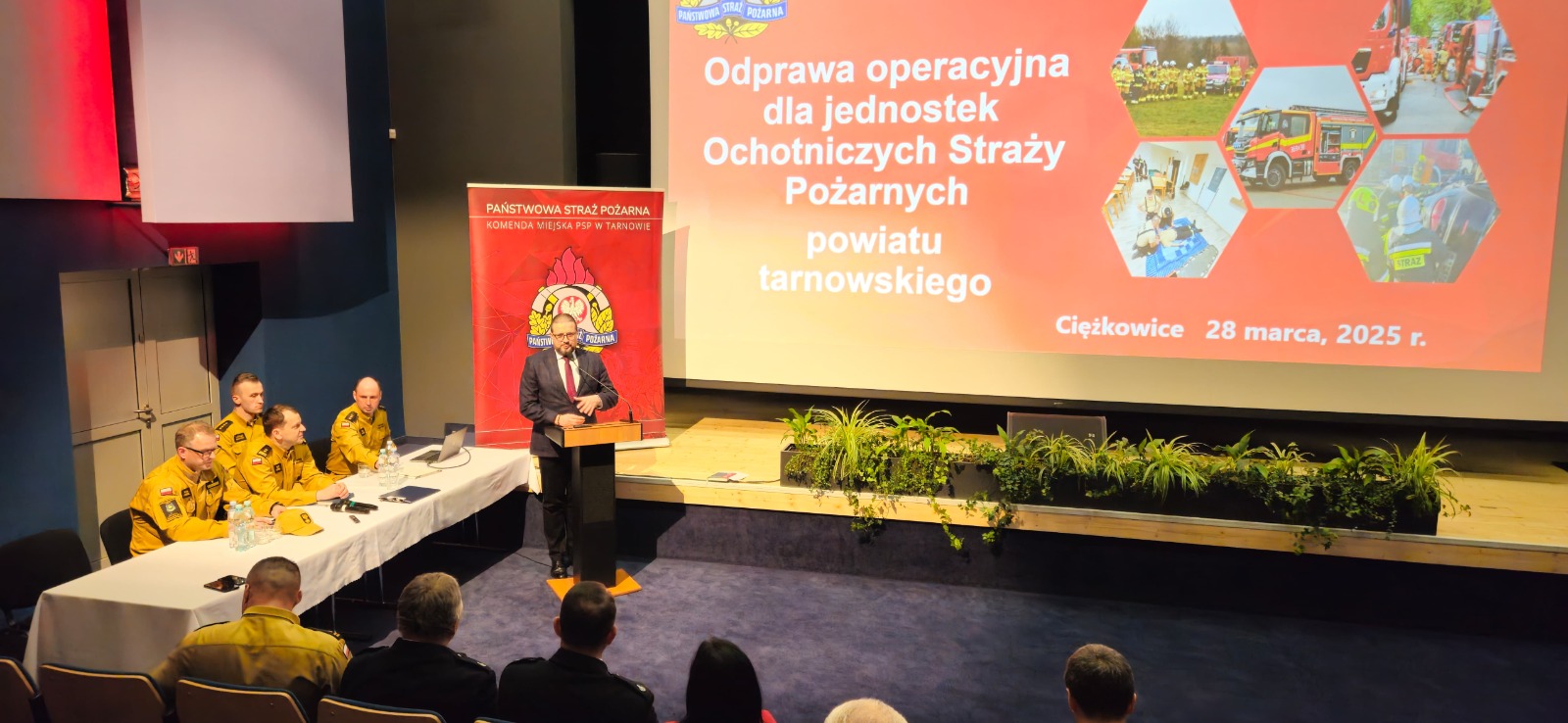 W spotkaniu uczestniczyli m.in.: Józef Knapik– wójt gminy Pleśna, dh Andrzej Jarocha - wiceprezes oddziału wojewódzkiego ZOSP województwa małopolskiego, zastępca burmistrza Ciężkowic, Wojciech Mik - Dyrektor Wydziału Ochrony Ludności, Zarządzania Kryzysowego i Spraw Obywatelskich Powiatu Tarnowskiego oraz komendanci gminni, prezesi i naczelnicy jednostek OSP z wymienionych gmin, a także Z-cy Komendanta Miejskiego PSP w Tarnowie mł. bryg. Tomasz Bańdur i bryg. Piotr Wróbel i funkcjonariusze Komendy Miejskiej.
