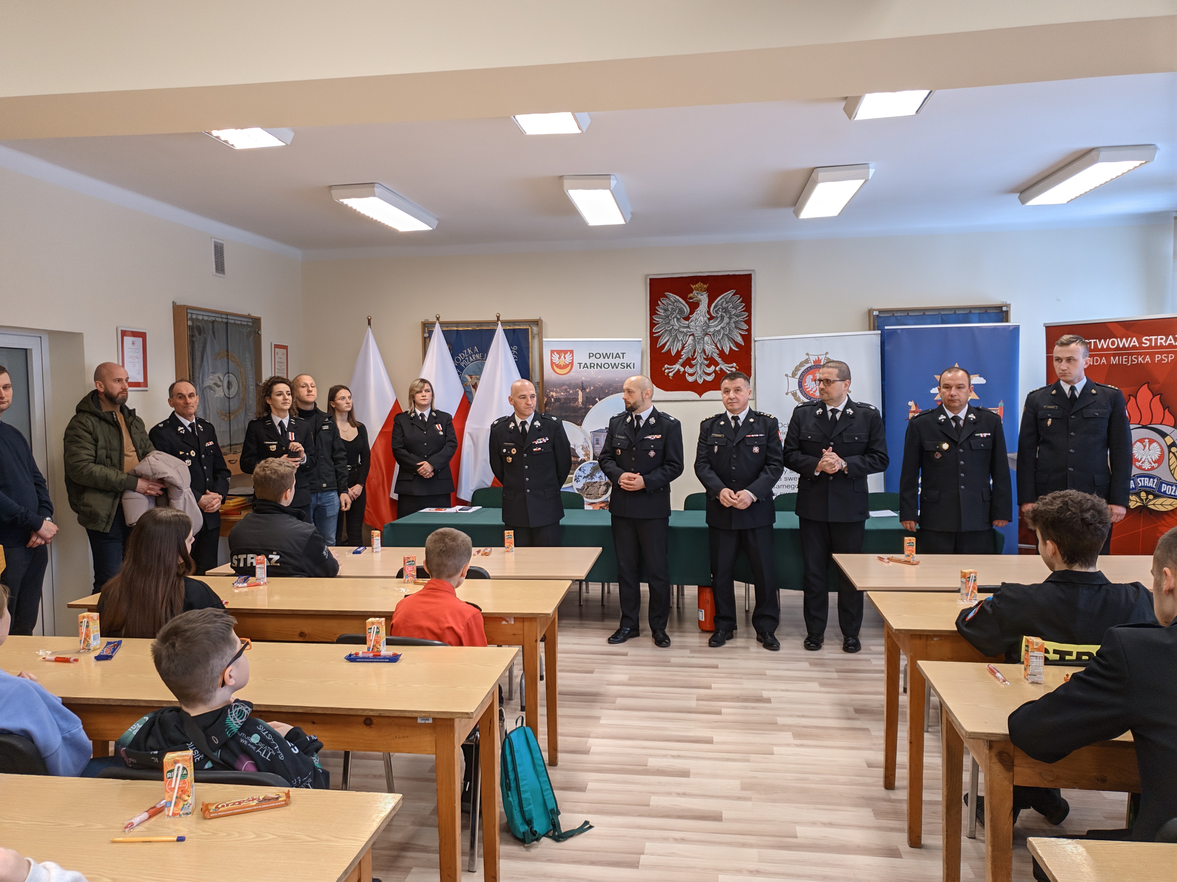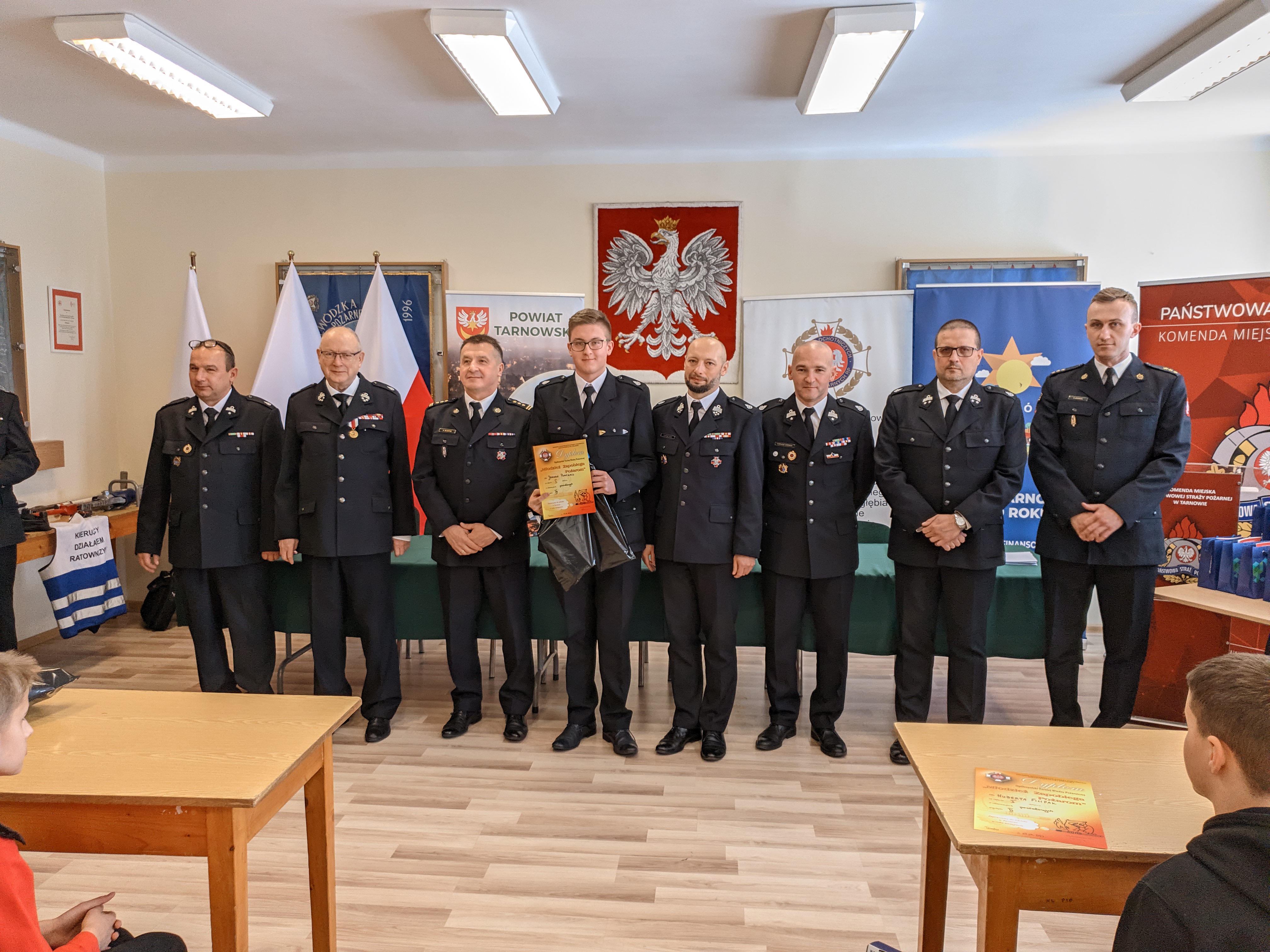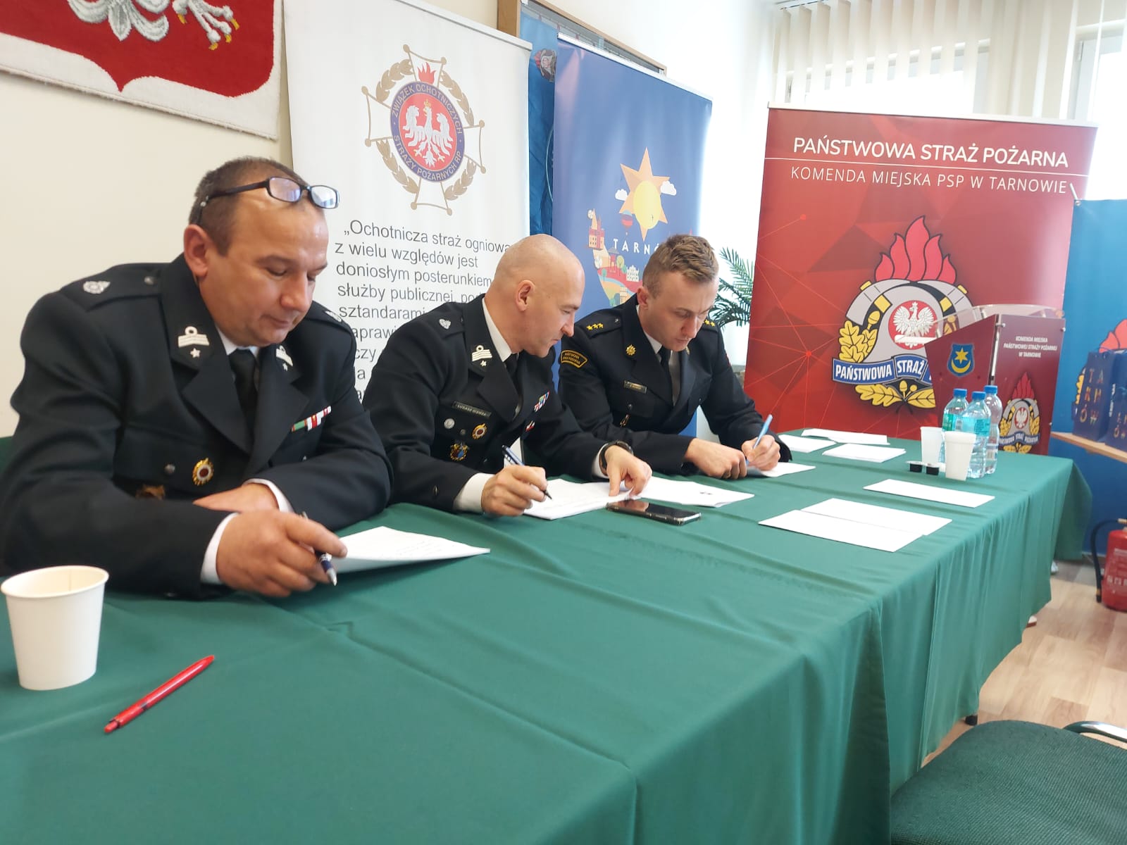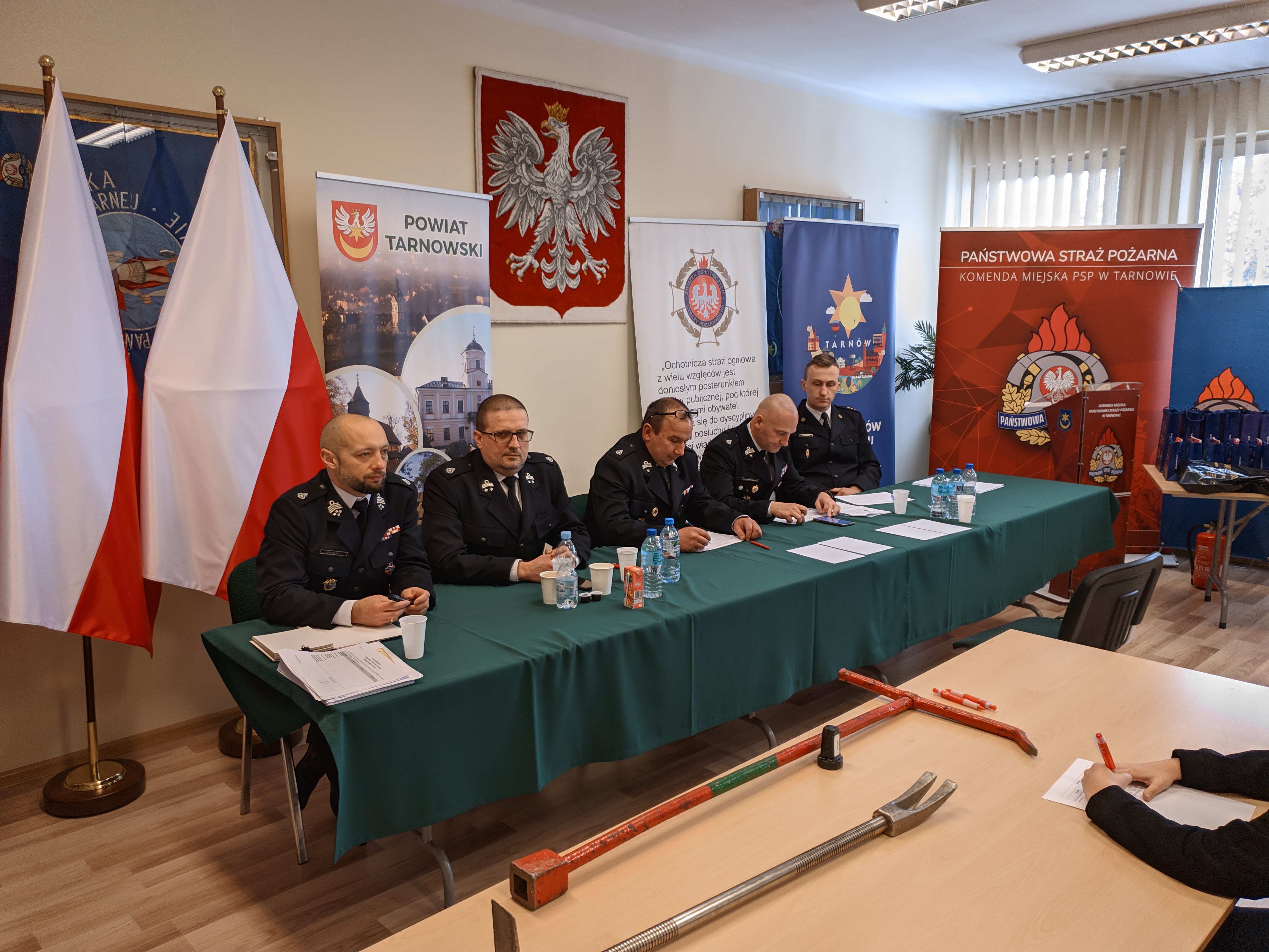 kpt. Mateusz Skowron Zastępca Wydziału Operacyjno-Szkoleniowego KM PSP w Tarnowie, dh Łukasz Łach Prezes Oddziału Powiatowego ZOSP RP w Tarnowie, dh Łukasz Giemza Wiceprezes ZOSP RP w Tarnowie, dh Sławomir Kolasiński Wiceprezes ZOSP RP w Tarnowie, dh Wiesław Siedlik Członek Prezydium ZOSP RP w Tarnowie, dh Wojciech Mik przedstawiciel Starostwa Powiatowego w Tarnowie oraz dh Ewelina Stefańska Sekretarz ZOSP RP w Tarnowie.