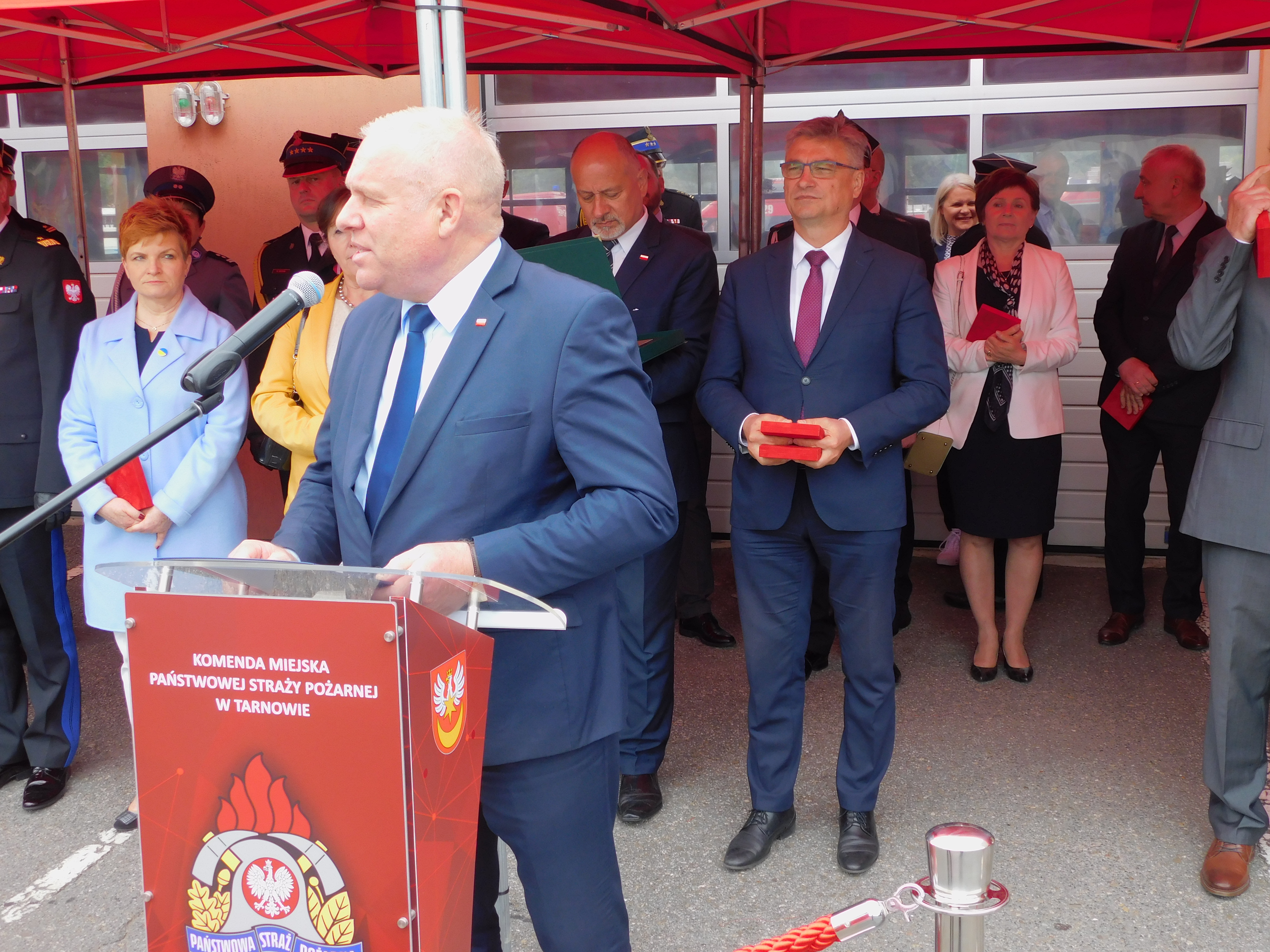 i życząc dalszych sukcesów w służbie, dziękując za dobrą współpracę przybyłym gościom. Swoją obecnością brać strażacką w tym dniu zaszczycili parlamentarzyści ziemi tarnowskiej:, Włodzimierz Bernacki - Sekretarz Stanu w Ministerstwie Edukacji i Nauki, Ryszard Pagacz – Wicewojewoda Małopolski, Anna Pieczarka, Józefa Szczurek-Żelazko,