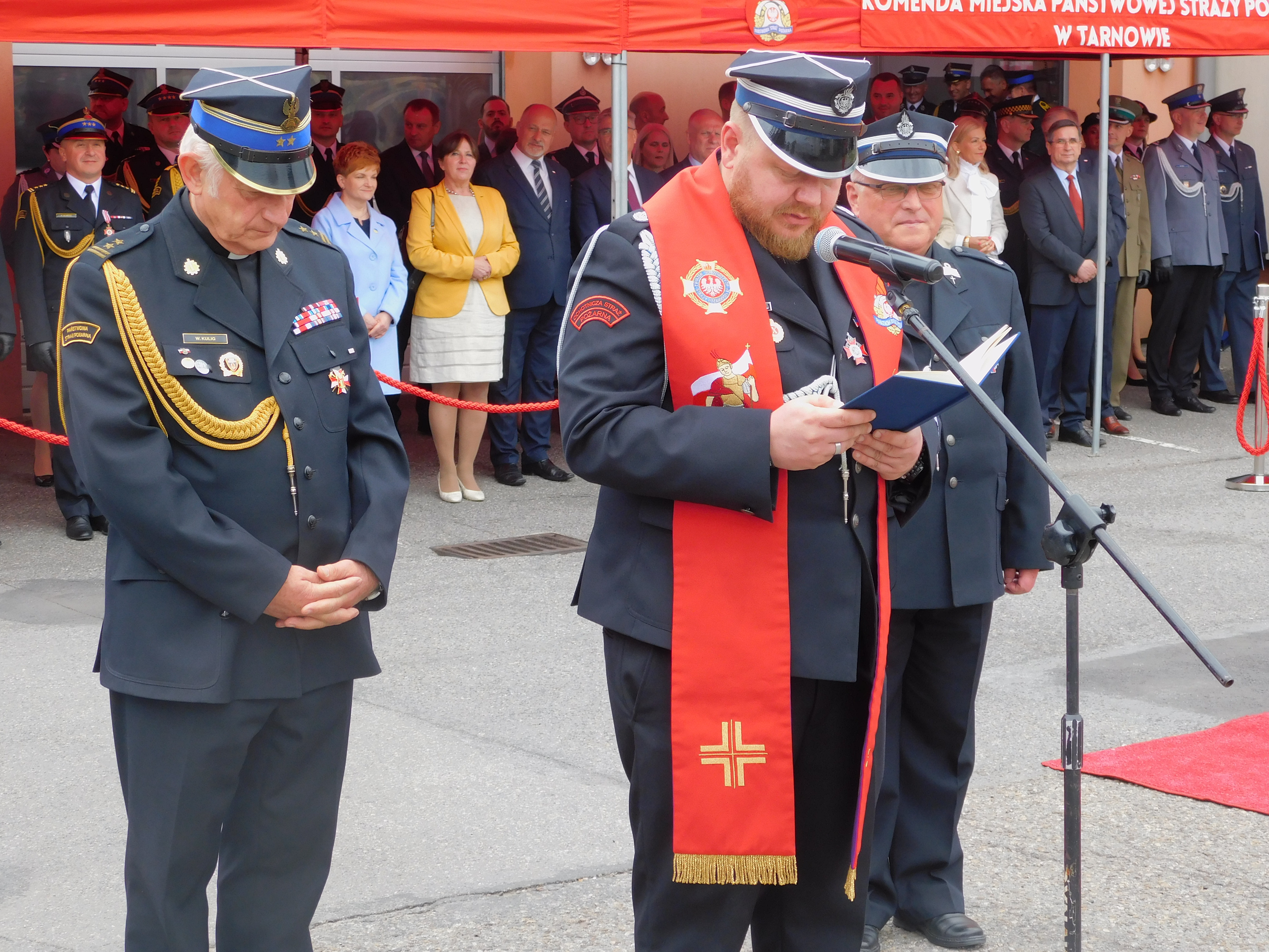 a następnie przy akompaniamencie orkiestry dętej z OSP Filipowice, pododdziały przemaszerowały na plac zewnętrzny Komendy Miejskiej PSP w Tarnowie. Uroczystość otworzył st. bryg. Krzysztof Gładysz - Komendant Miejski PSP oraz Dh Łukasz Łach – Prezes ZOP ZOSP RP w Tarnowie, witając przybyłych gości i dziękując wszystkim strażakom za ich odpowiedzialną służbę, trud i poświęcenie, oraz składając wyrazy uznania