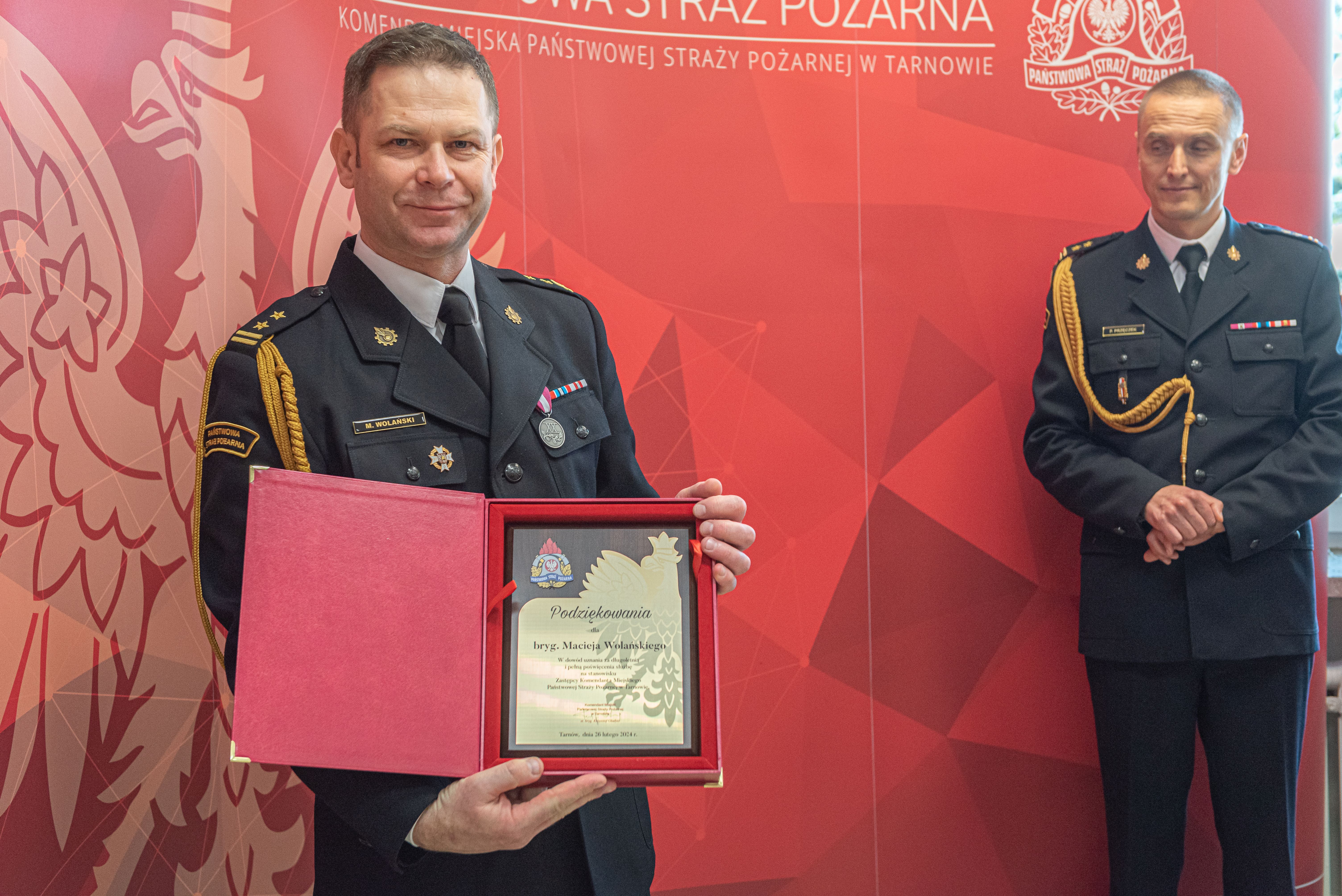 26 lutego 2024 r. w Sali Narad Komendy Miejskiej PSP w Tarnowie odbyła się uroczysta zbiórka z okazji zdania obowiązków Zastępcy Komendanta Miejskiego Państwowej Straży Pożarnej w Tarnowie przez bryg. Macieja Wolańskiego z tytułu zakończenia służby w PSP i przejścia na zaopatrzenie emerytalne.