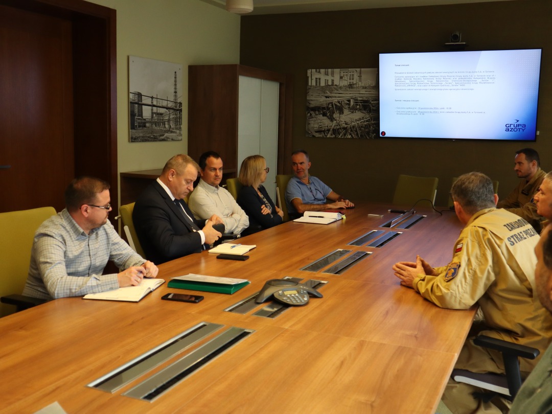 W dniu 23 października odbyło się spotkanie podsumowujące ćwiczenia, które odbyły się w dniach 3 i 9 października bieżącego roku na terenie Grupy Azoty S.A. w Tarnowie. W spotkaniu udział wzięli przedstawiciele Komendy Miejskiej PSP w Tarnowie oraz Grupy Azoty S.A. w Tarnowie w tym Prezes Zarządu Zbigniew Paprocki, Komendant Miejski PSPw Tarnowie st. bryg. Rafał Waśko i Komendant Zakładowej Straży Pożarnej Grupy Azoty Jacek Zapart. Spotkanie miało na celu podsumowanie ćwiczeń, przedstawienie wniosków z ich realizacji, a także wskazanie obszarów do doskonalenia. Wszyscy uczestnicy wyrazili chęć dalszej współpracy podczas kolejnych szkoleń i ćwiczeń.