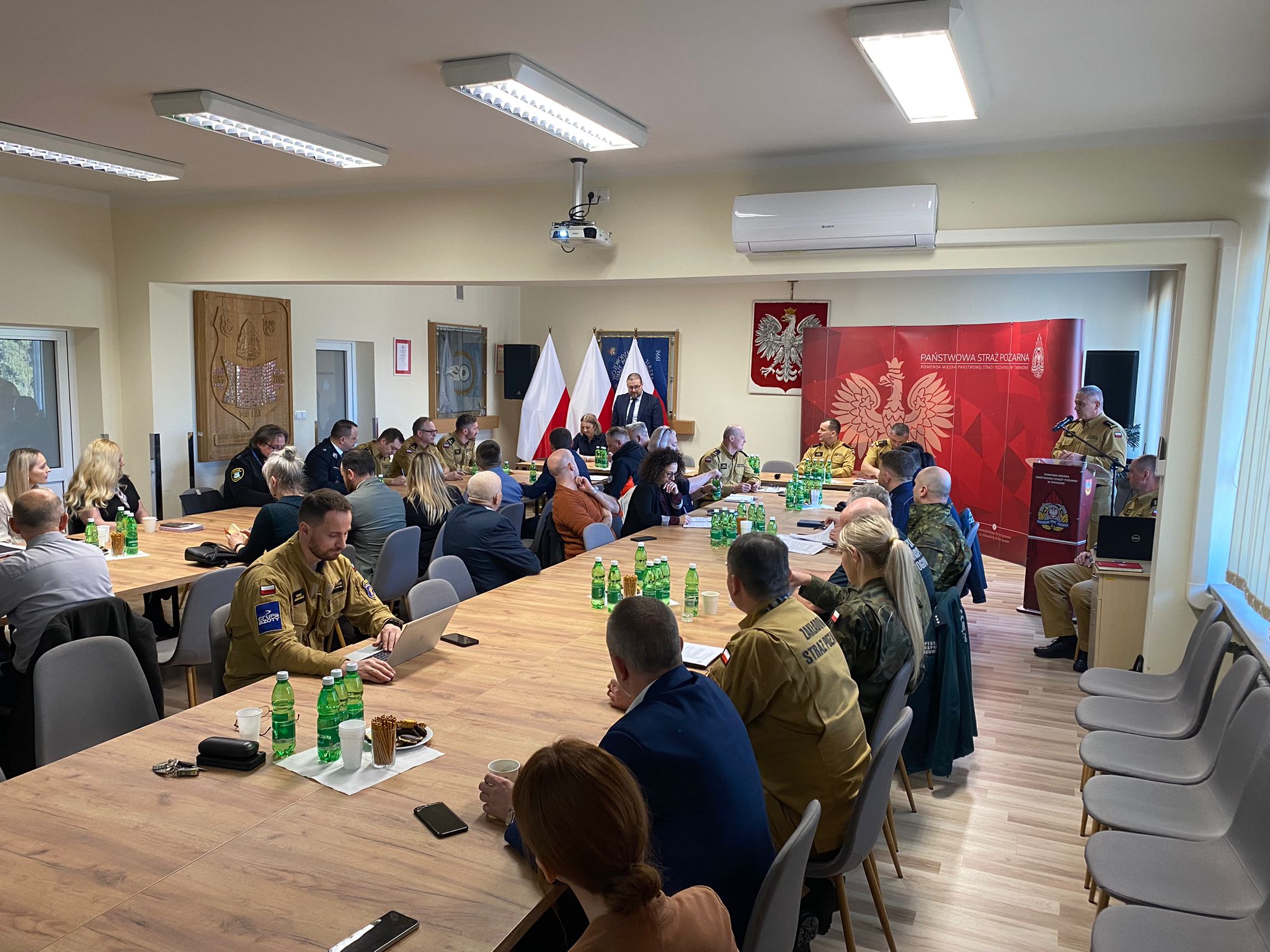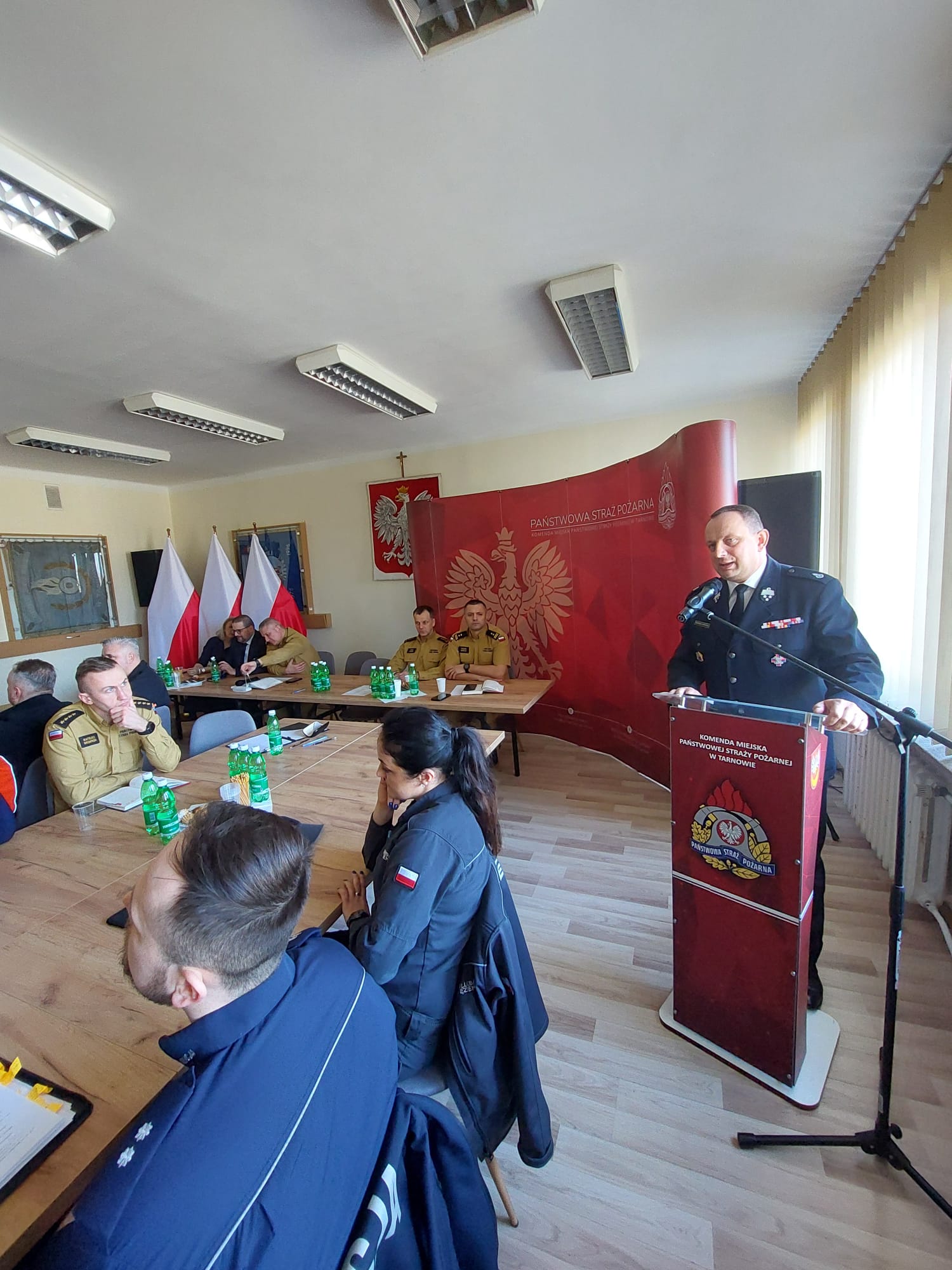 Komendant Miejski PSP w Tarnowie, st. bryg. Rafał Waśko, powitał zaproszonych gości, dziękując za liczną obecność przedstawicieli podmiotów z terenu miasta Tarnowa oraz powiatu tarnowskiego. W dalszej części spotkania wybrani reprezentanci służb i instytucji przedstawili zakres swoich zadań oraz kompetencji w funkcjonowaniu systemu Ochrony Ludności i Obrony Cywilnej. 🤝