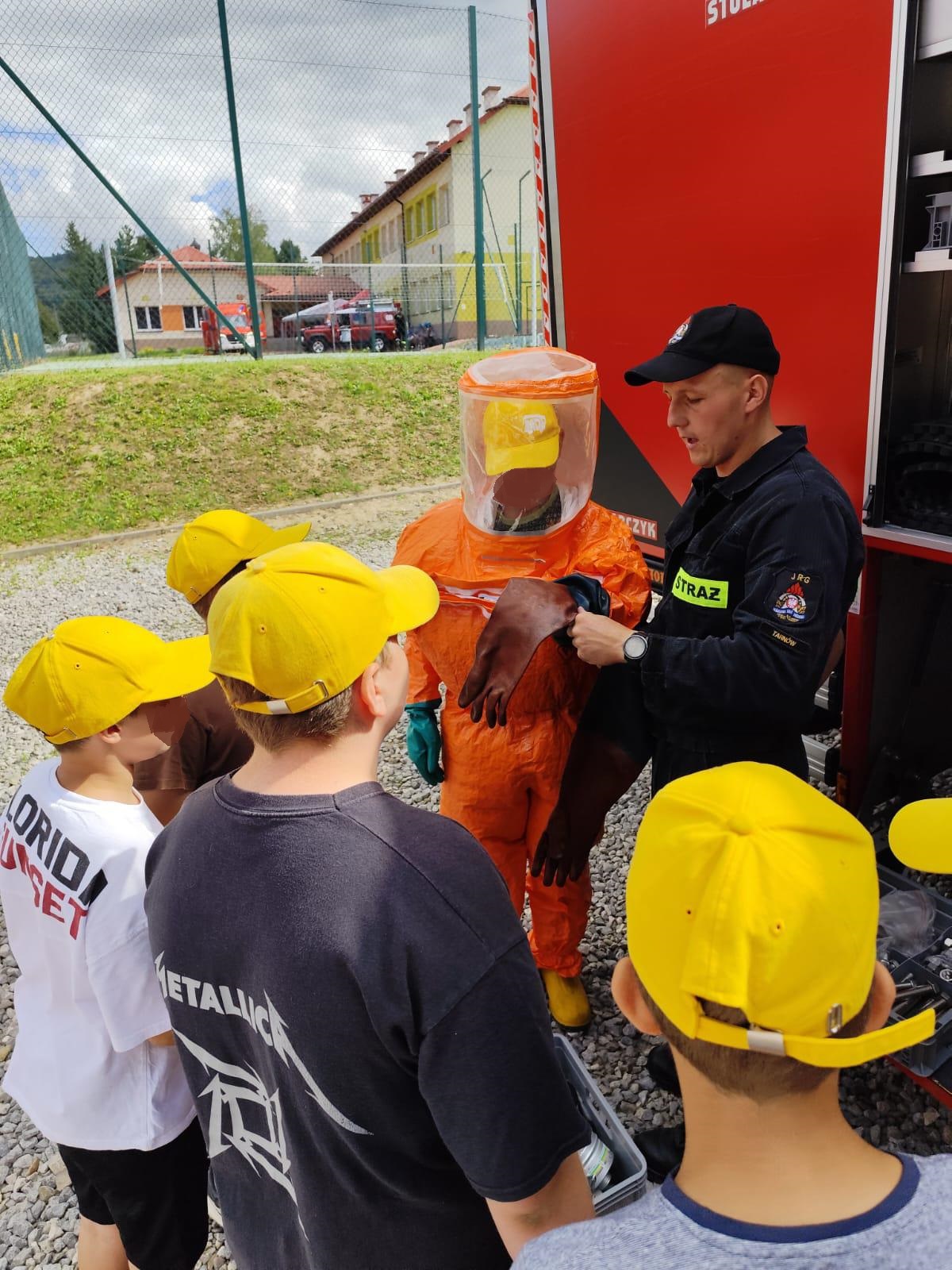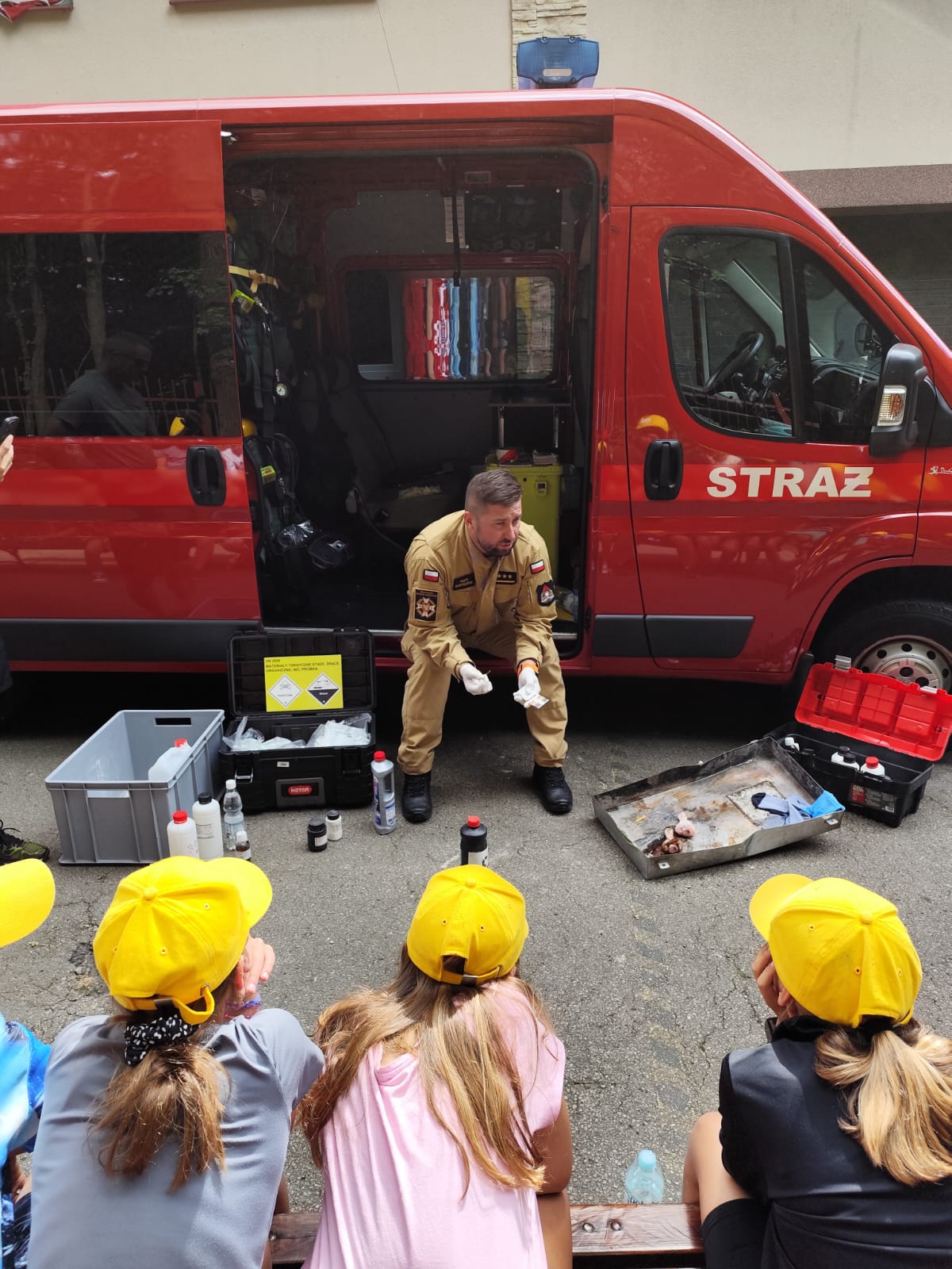 Podczas prelekcji młodzi adepci pożarnictwa mieli okazje zapoznać się ze sprzętem będącym na wyposażeniu grupy chemicznej, a także z wyposażeniem samochodu ratownictwa medycznego SLRMed CBRNE. Przeprowadzono prezentację sprzętu pomiarowego, środków ochronnych i innych związanych z prowadzeniem specjalistycznych działań z zakresu ratownictwa chemicznego i ekologicznego. Ponadto zostały przeprowadzone prelekcje z zakresu pierwszej pomocy i szeroko pojętego bezpieczeństwa w trakcie letniego wypoczynku.