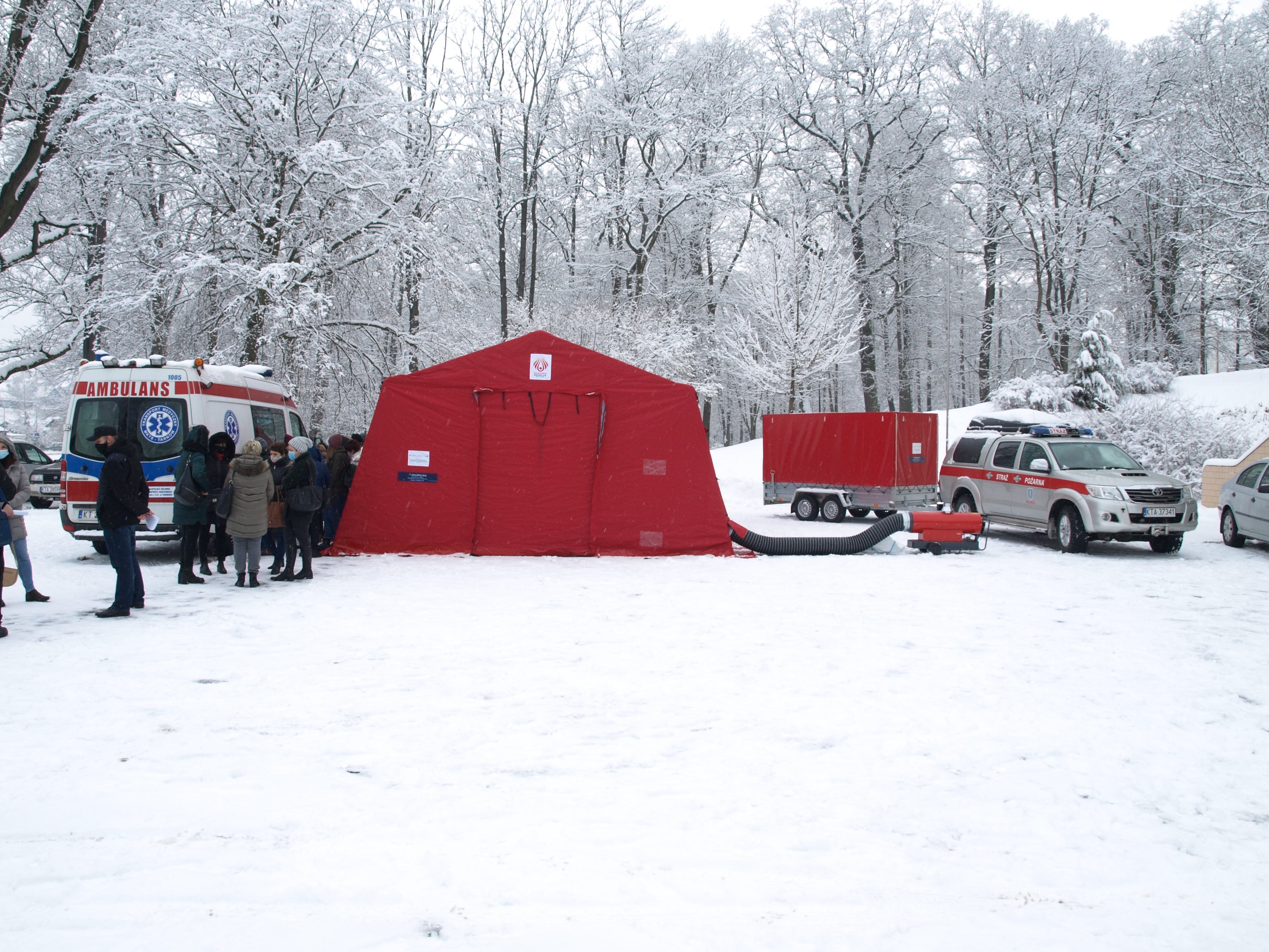 W dniach 14 - 15 stycznia 2021 r. w Tarnowie na placu byłej kapłanówki oraz w Gromniku na placu przy amfiteatrze zostały rozstawione namioty stelażowe służące jako mobilne punkty pobrań w kierunku COVID. W godzinach 9.00-19.00 były przyjmowane osoby które zostały skierowane na tego typu badanie. Rozstawione namioty są własnością strażaków OSP Łęg Tarnowski, OSP Żabno oraz OSP Wojnicz i w ramach walki z korona-wirusem posłużyły do przeprowadzania przez pracowników tarnowskiego pogotowia i sanepidu testu w zakresie podejrzenia zachorowania na Covid-19.