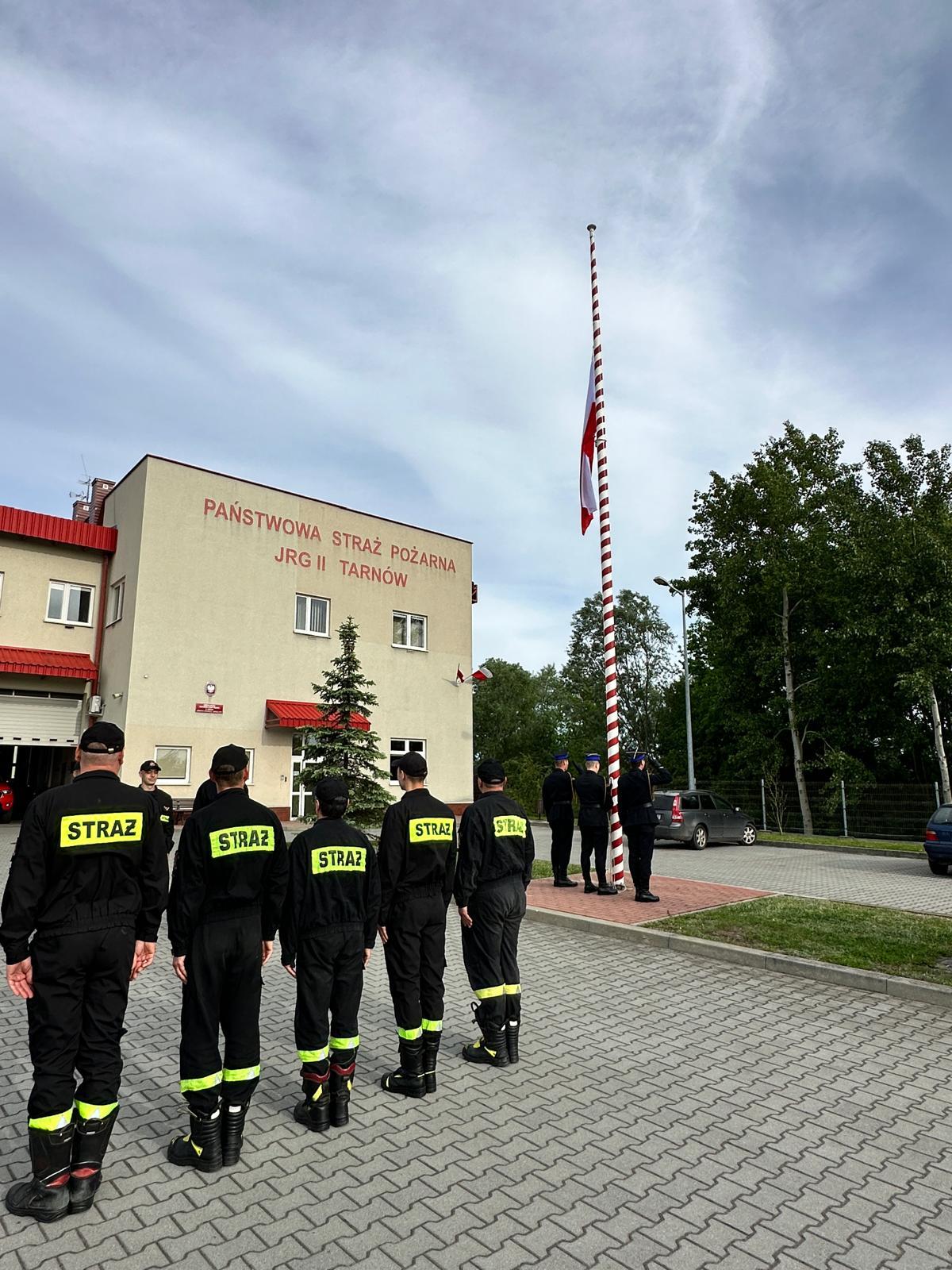 W dniu 02.05.2024 r. w ramach obchodów Święta Flagi Rzeczypospolitej Polskiej w Jednostkach Ratowniczo Gaśniczych Nr 1 i Nr 2 Komendy Miejskiej Państwowej Straży Pożarnej w Tarnowie przeprowadzone zostały uroczyste zmiany służby połączone z wciągnięciem Flagi Państwowej na maszt wraz z odtworzeniem Hymnu Państwowego.