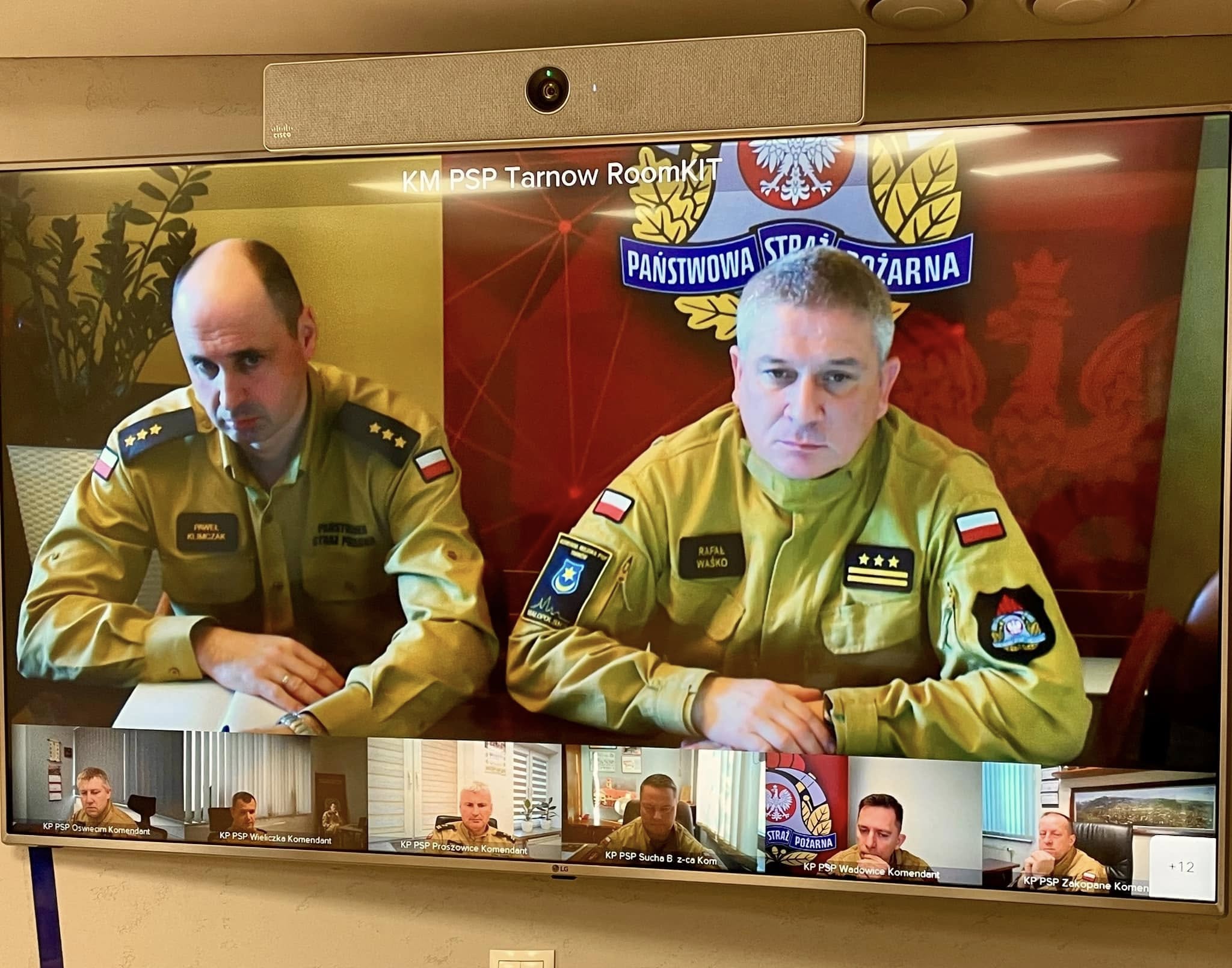 Zastępca Małopolskiego Komendanta Wojewódzkiego Państwowej Straży Pożarnej st. bryg. Arkadiusz Kielin wraz z kadrą kierowniczą KW PSP Kraków uczestniczył w wideokonferencji z kierownikami jednostek nadzorowanych.