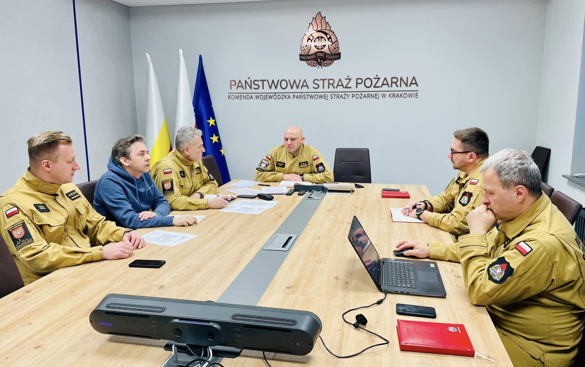 Wideokonferencja Małopolskiego Komendanta Wojewódzkiego PSP w sprawie SOiA