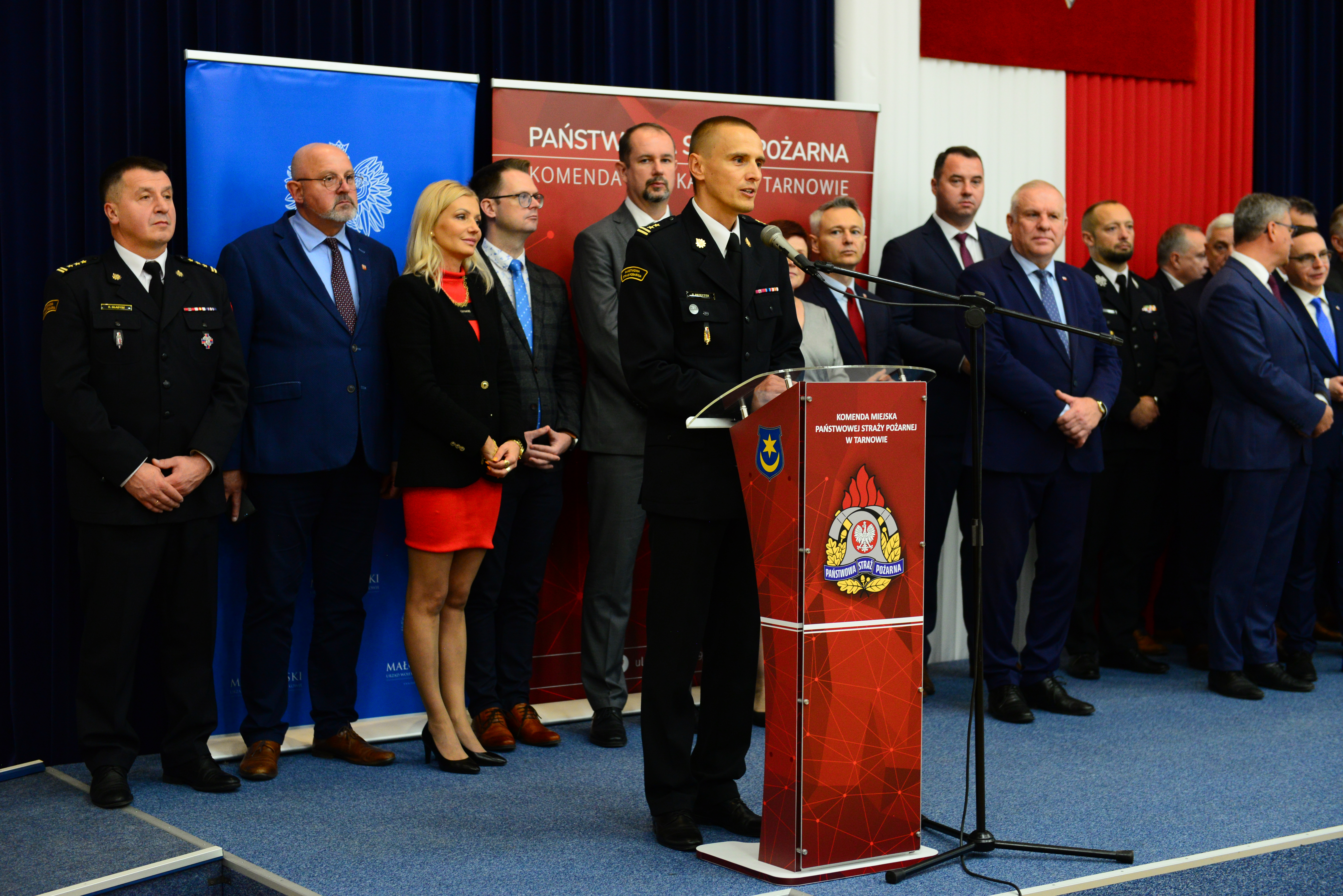W uroczystości udział wzięli: poseł RP Anna Pieczarka, poseł RP Piotr Sak, poseł RP Wiesław Krajewski, wicewojewoda małopolski Ryszard Pagacz, Zastępca Małopolskiego Komendanta Wojewódzkiego bryg. Przemysław Przęczek, Komendant Miejski PSP