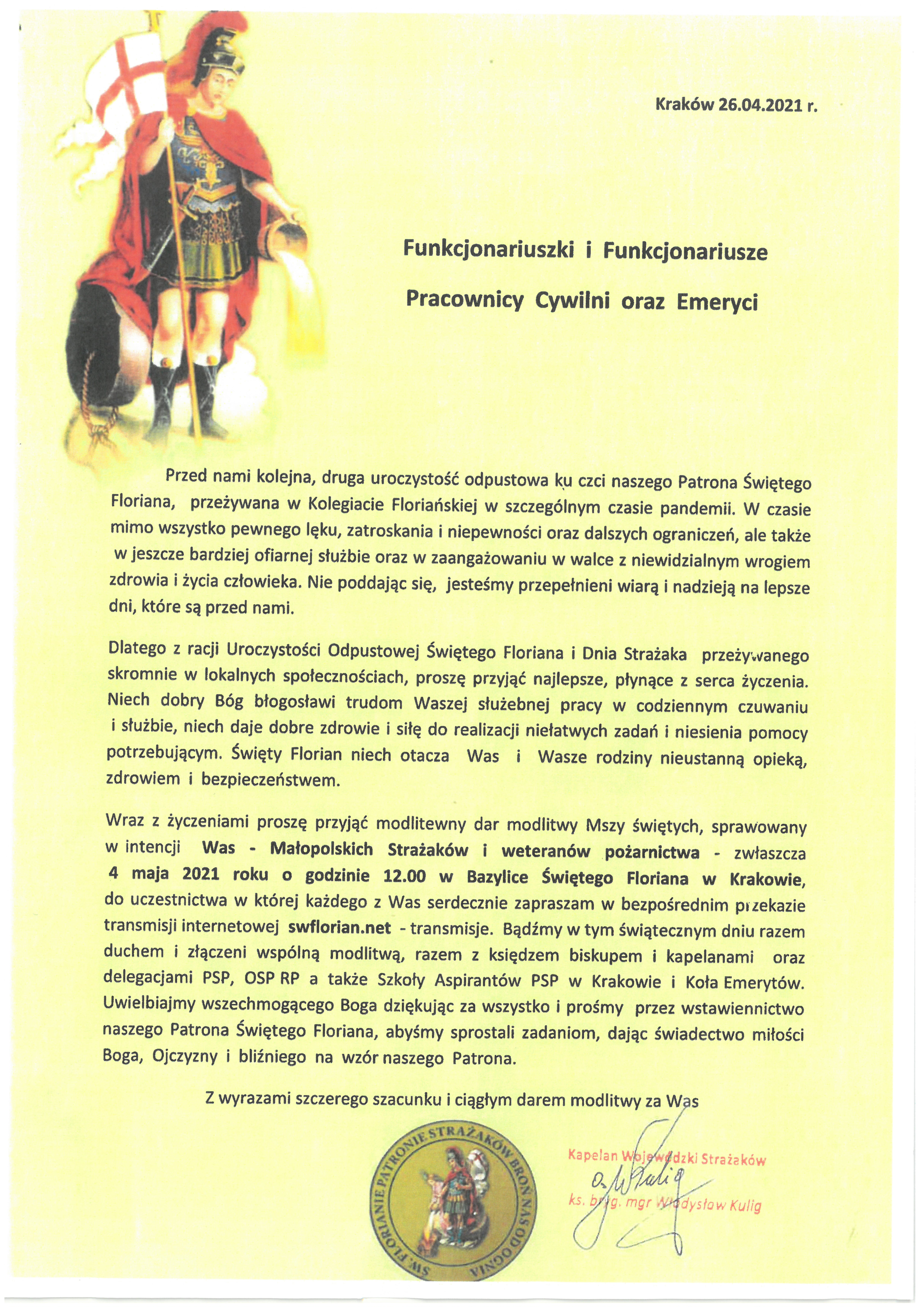 Życzenia Kapelana Wojewódzkiego z okazji Dnia Strażaka 04.05.2021 Życzenia Kapelana Wojewódzkiego z okazji Dnia Strażaka Zdjęcia (1) Pokaż zdjęcie 1 z galerii.