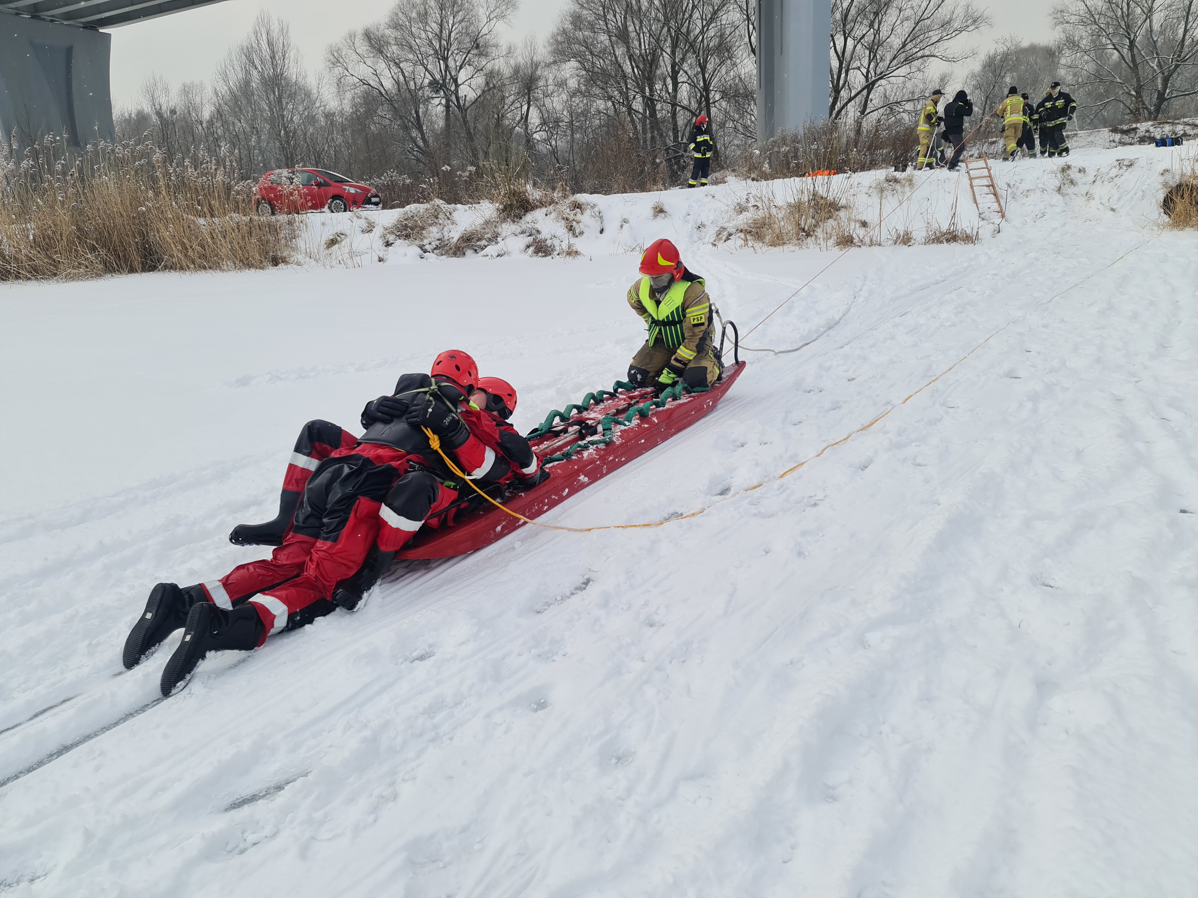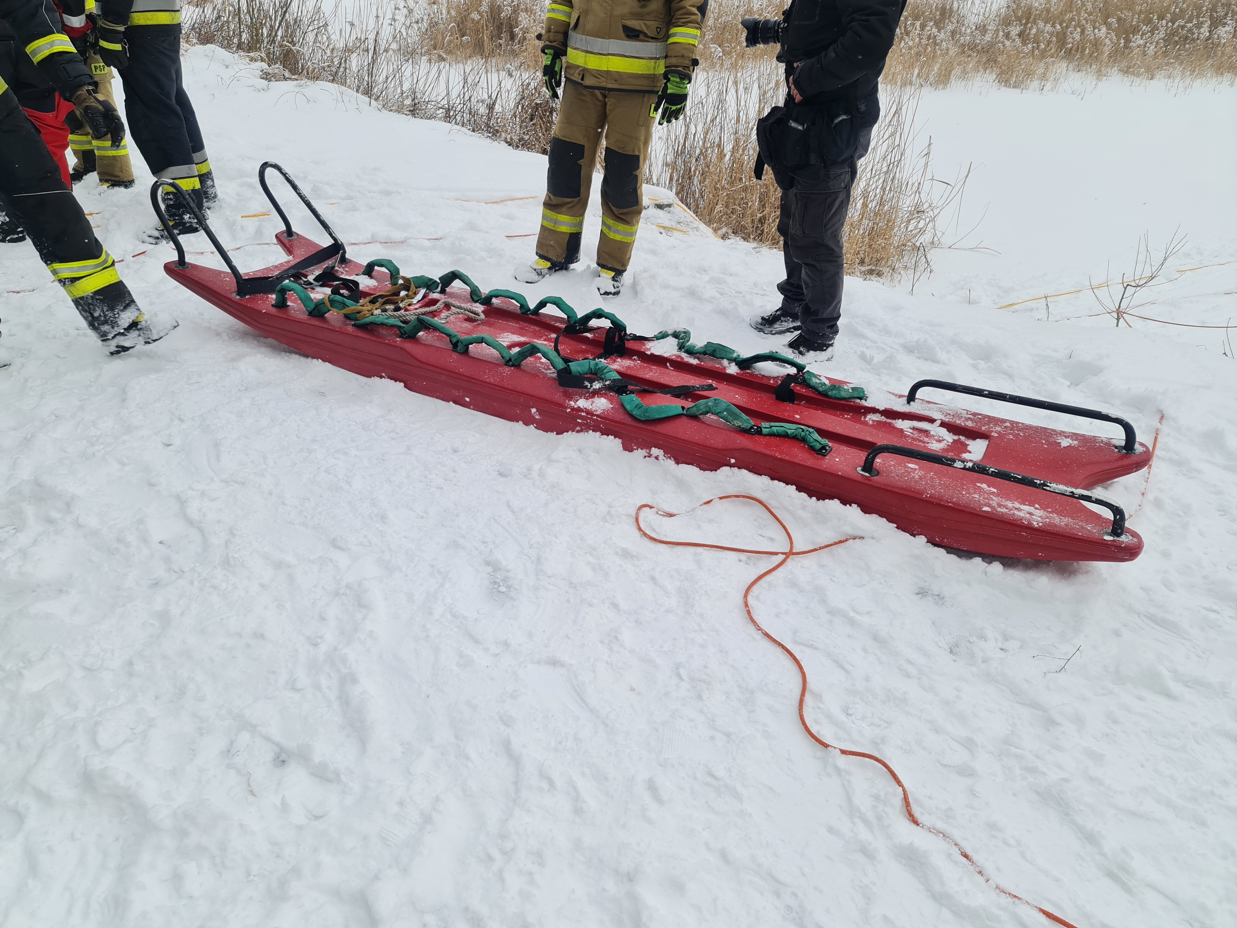 Straż Pożarna dysponuje specjalistycznym sprzętem do ratowania osób, pod którymi załamał się lód. Powiadom Nas jak najszybciej!