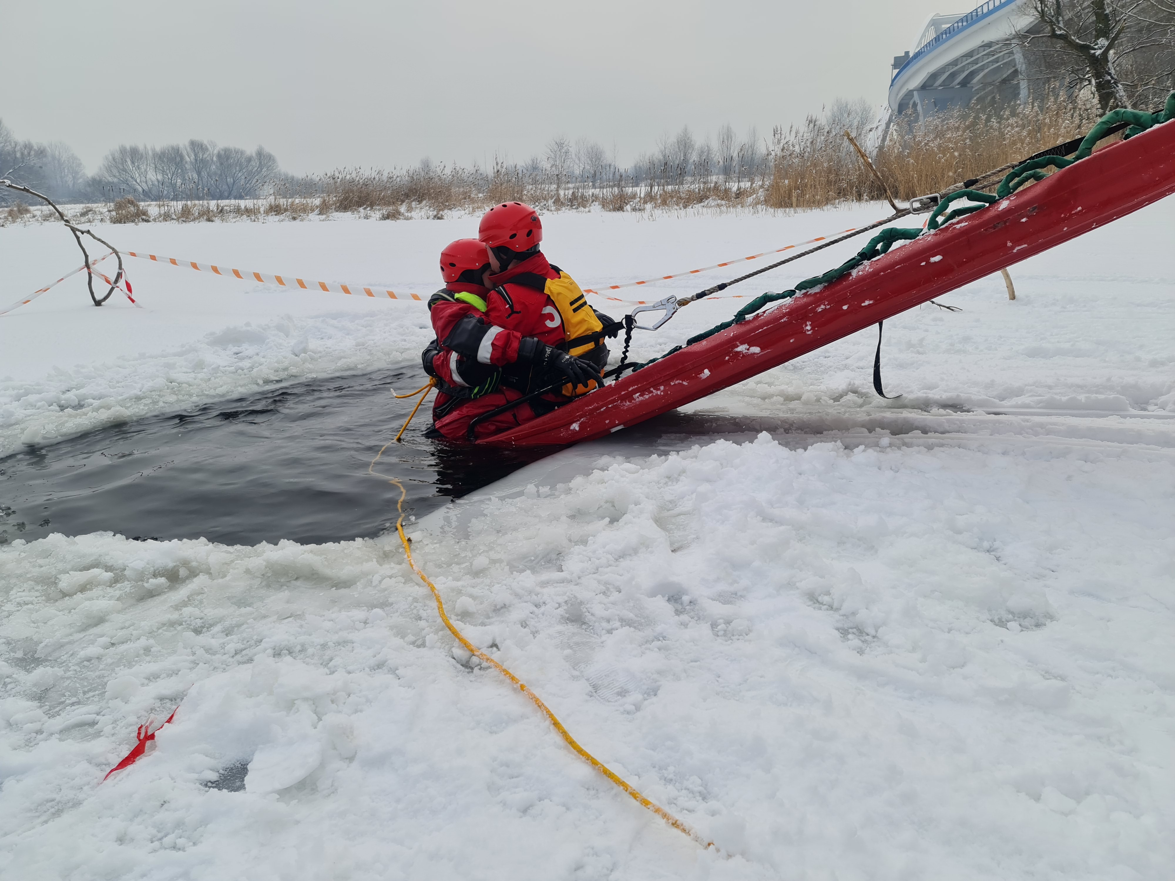 Ćwiczenia z zakresu ratownictwa wodnego i lodowego są niezwykle istotne w praktyce, gdyż często dochodzi do sytuacji konieczności ratowania osób, pod którymi załamał się lód.