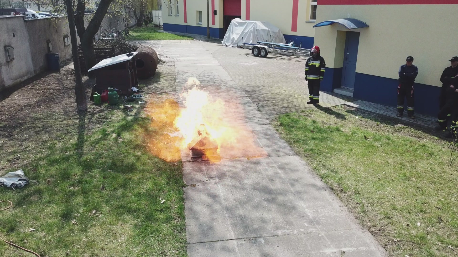 Pokaz z użyciem trenażera pożarowego GF 42, Pokaz polegał na doprowadzeniu oleju spożywczego do samozapłonu a następnie próbie jego ugaszenia wodą. Pokaz miał na celu uświadomienie jakie ryzyko wiąże się z niewłaściwym gaszeniem tego typu pożaru.