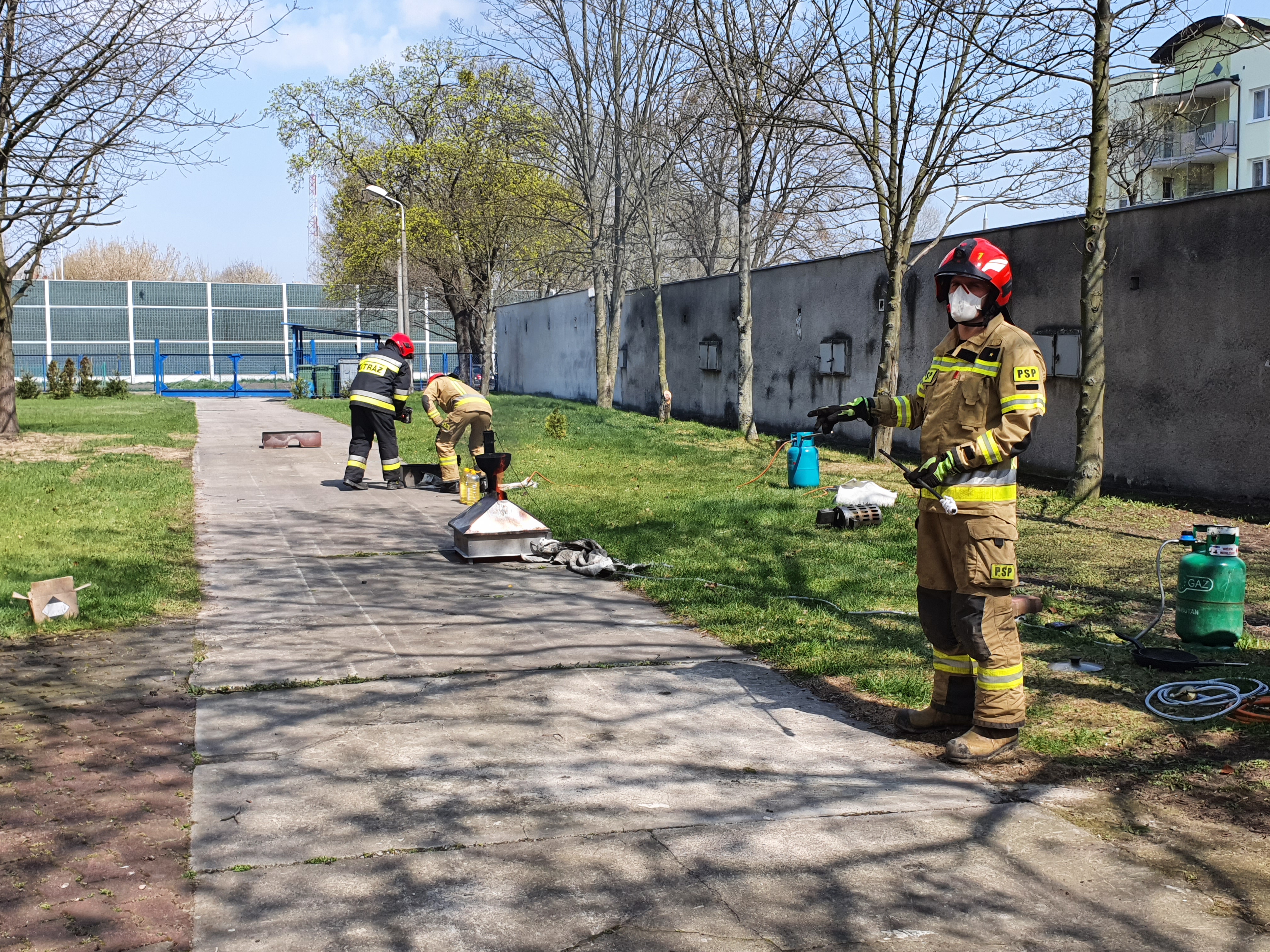 Na terenie JRG nr 1 w Toruniu odbyły się ćwiczenia z trenażerem pożarowym.