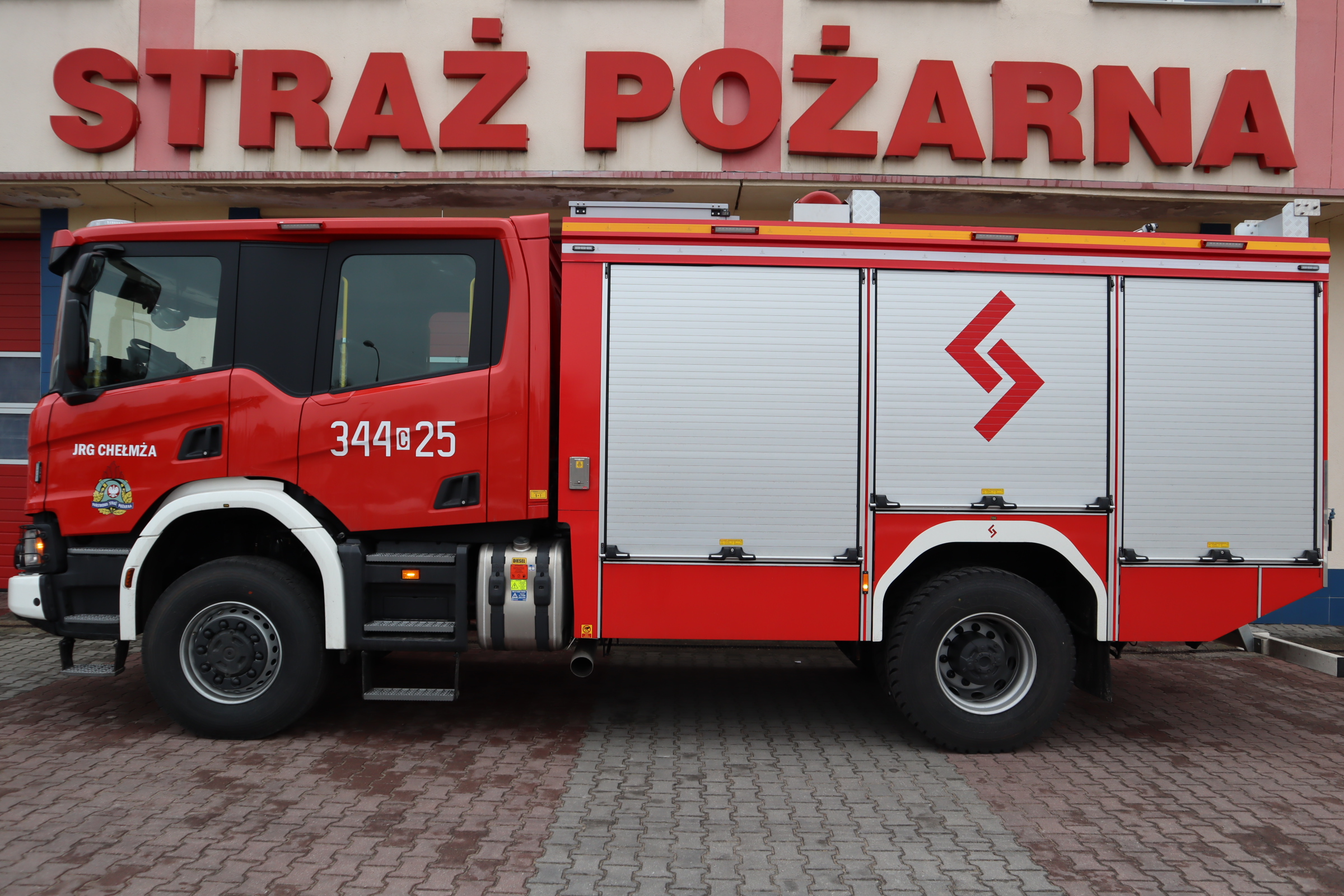 Nowy ciężki samochód ratowniczo - gaśniczy Scania w JRG Chełmża Komendy Miejskiej PSP w Toruniu