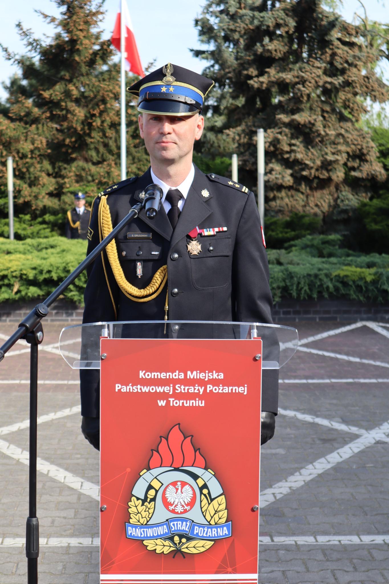 30 kwietnia 2024r. w Komendzie Miejskiej PSP w Toruniu odbył się uroczysty apel z okazji przyjęcia obowiązków Komendanta Miejskiego PSP w Toruniu przez bryg. Sławomira Grudzińskiego.