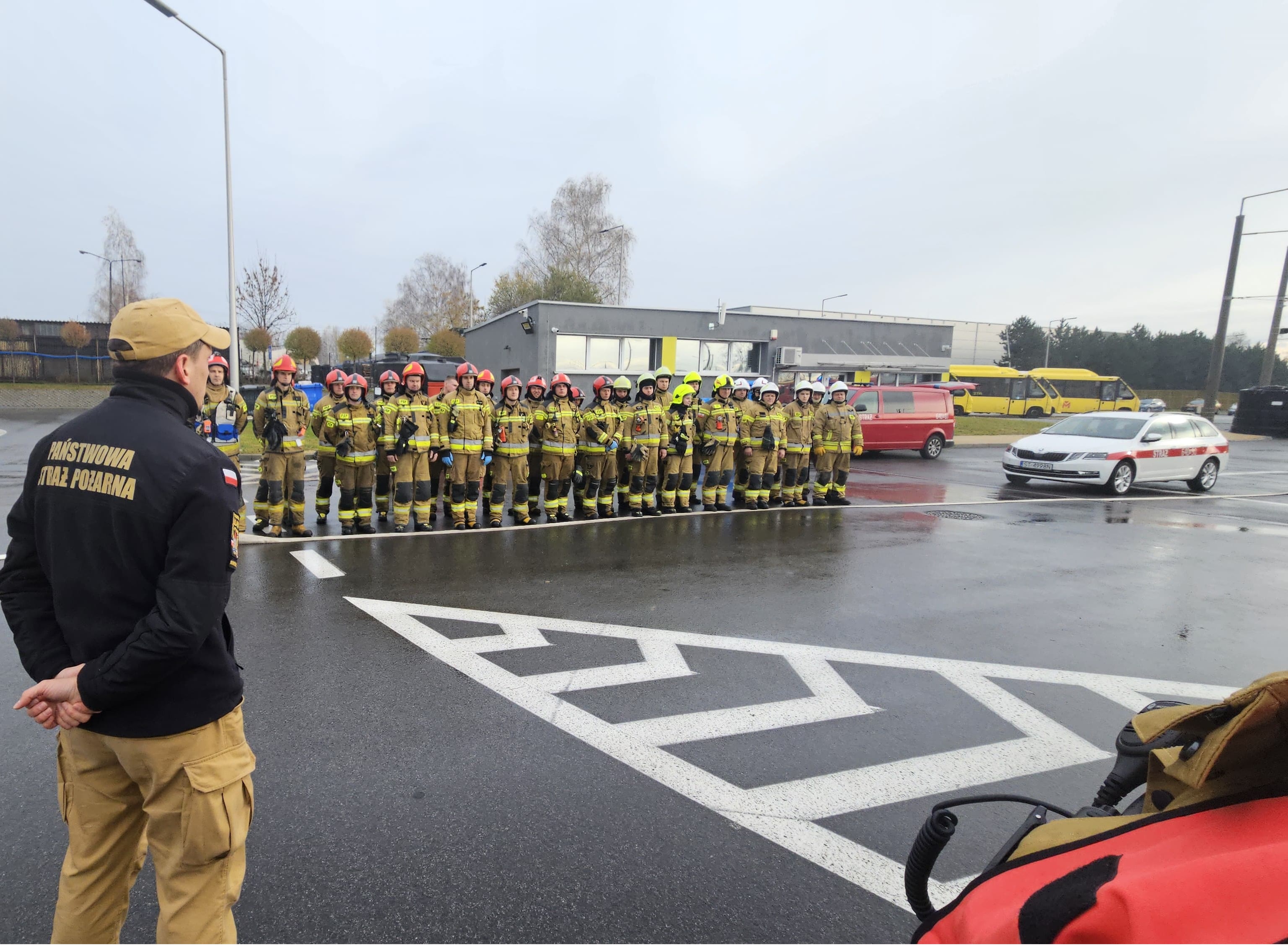 Po zakończeniu głównego założenia – ugaszeniu pożaru oraz udzieleniu Kwalifikowanej Pierwszej Pomocy osobie poszkodowanej ratownicy mieli okazję zapoznać się z specyfikacją Przedsiębiorstwa Komunikacji Miejskiej w Tychach, a w szczególności z budową i charakterystyką autobusów o napędzie alternatywnym oraz z specyfikacją stacji ładowania i tankowania.