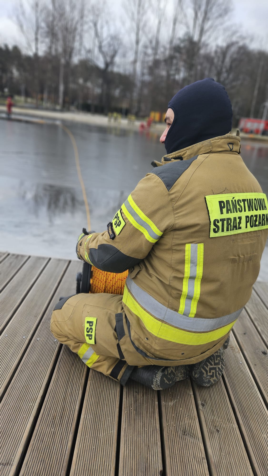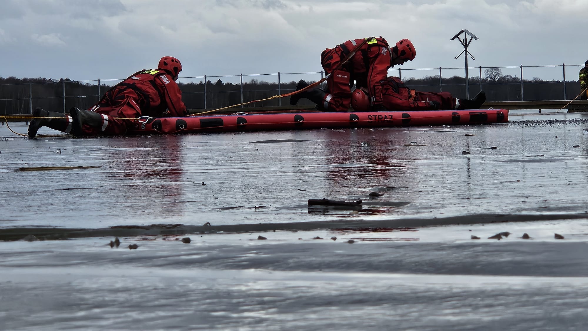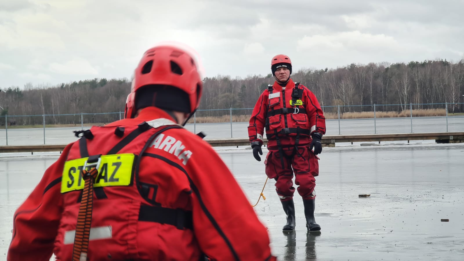 W jednej z symulacji strażacy musieli wydobyć osobę poszkodowaną z wody. W tym celu wykorzystali specjalny trap ratowniczy oraz sanie lodowe. W drugiej symulacji strażacy musieli udzielić pomocy osobie poszkodowanej na lodzie przy pomocy rzutki ratowniczej.