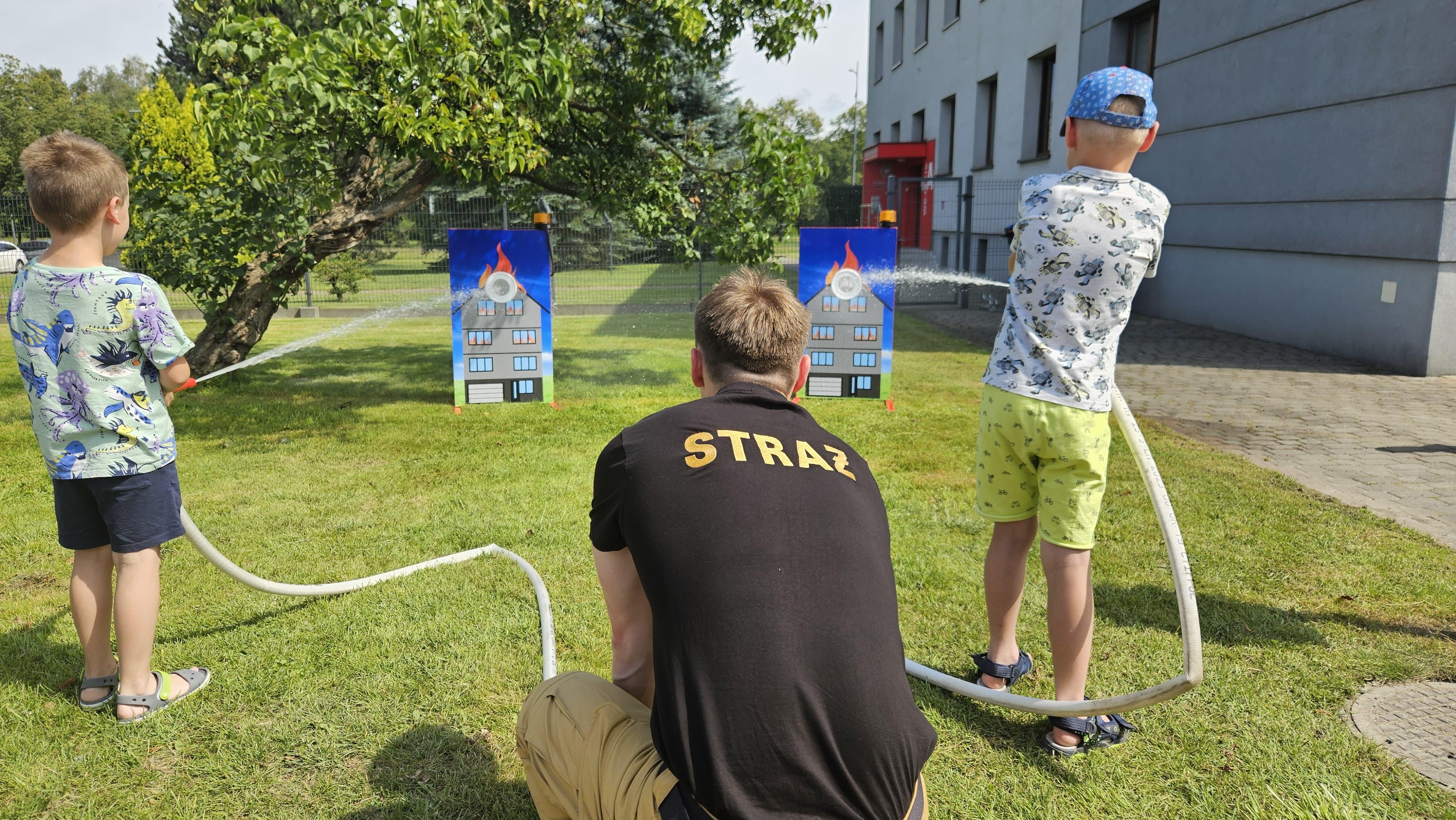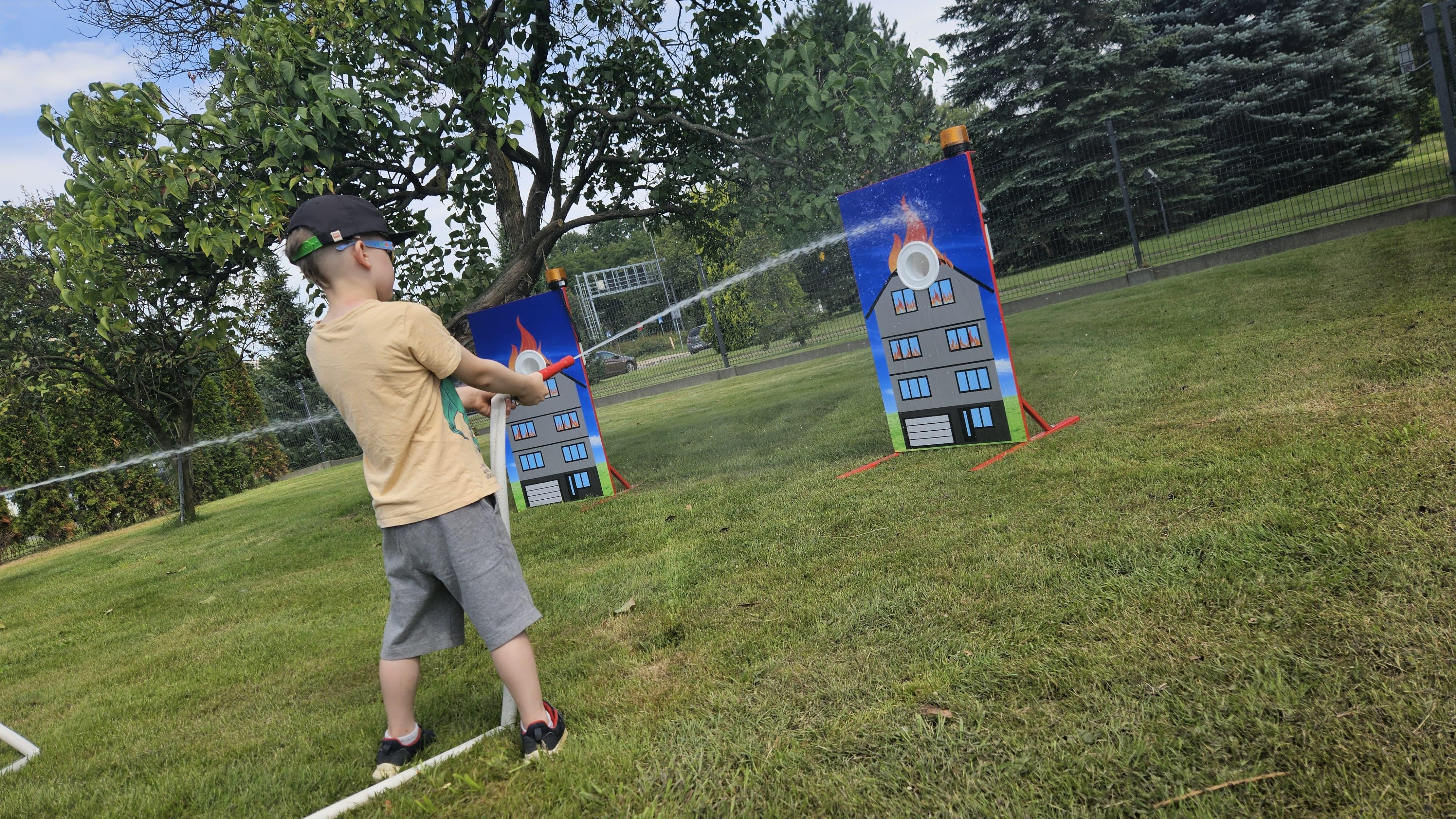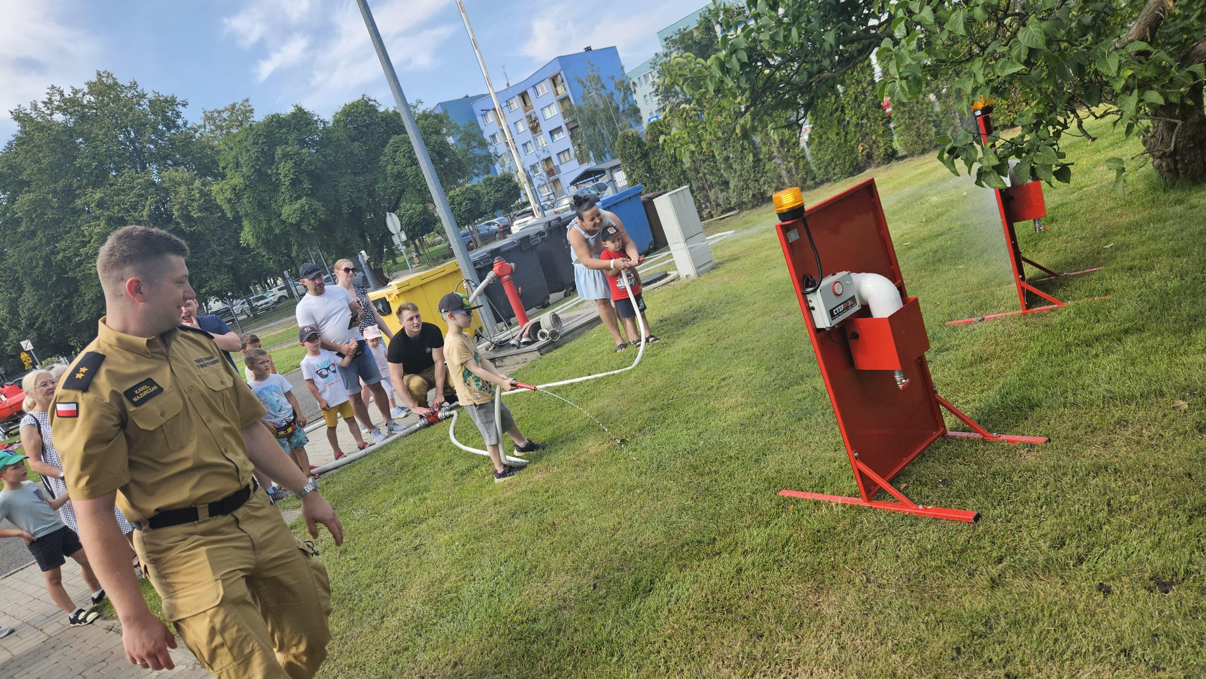 - Sprawdzić swoje siły w gaszeniu ognia: Specjalnie przygotowany punkt pozwalał na spróbowanie swoich sił w gaszeniu „płomieni” za pomocą prawdziwej prądownicy strażackiej.