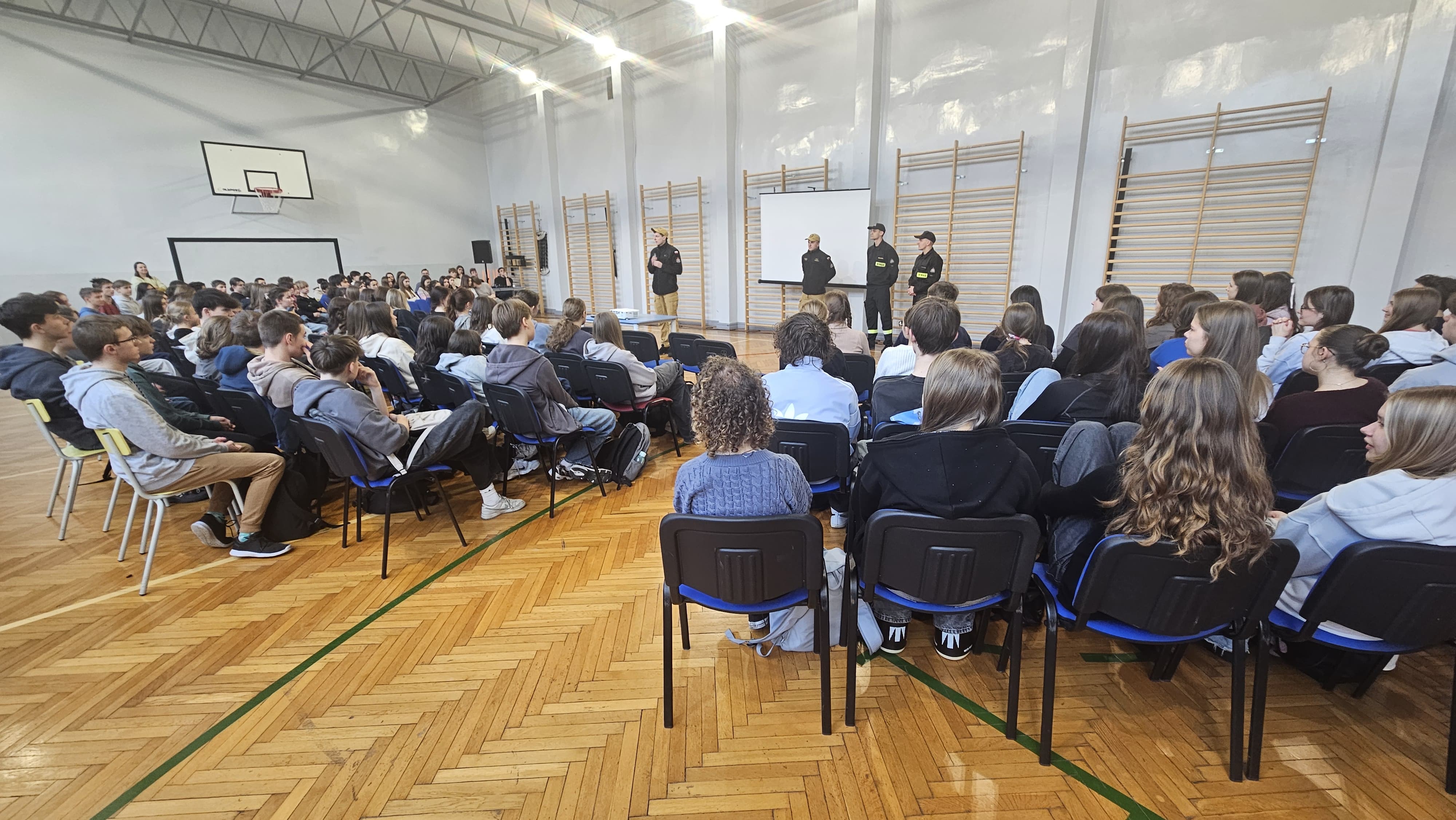 Z okazji Dnia Bezpieczeństwa, 22 stycznia 2025 roku, strażacy z Komendy Miejskiej PSP Tychy zostali zaproszeni do I Liceum Ogólnokształcącego im. Leona Kruczkowskiego. Podczas spotkania z uczniami, strażacy przeprowadzili edukacyjną prelekcję, zwracając szczególną uwagę na zagrożenia związane z czadem. Uczestnicy spotkania dowiedzieli się o znaczeniu posiadania czujki tlenku węgla oraz o podstawowych zasadach bezpieczeństwa podczas zimowego wypoczynku.