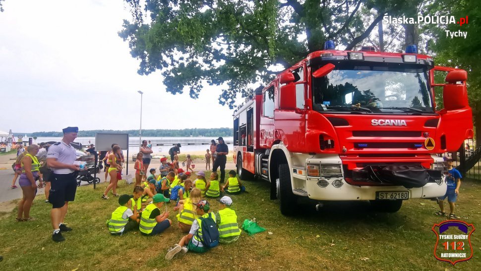 Przedsięwzięcie było doskonałą okazją do rozmów na temat bezpieczeństwa podczas wakacji. Dzieci bardzo aktywnie uczestniczyły w rozmowie profilaktycznej z policjantką. Młodzi uczestnicy spotkania otrzymywali od mundurowych książeczki związane z promocją akcji "Kręci mnie bezpieczeństwo..nad wodą" oraz ulotki dotyczące konkursu „ARTYSTYCZNY przeWODNIK". Na zasady bezpiecznej kąpieli zwracali uwagę także policjanci ogniwa wodnego, funkcjonariusze Straży Miejskiej, WOPR-u, którzy na co dzień dbają o bezpieczeństwo wypoczywających nad jeziorem Paprocanyoraz Komendy Miejskiej PSP w Tychach.