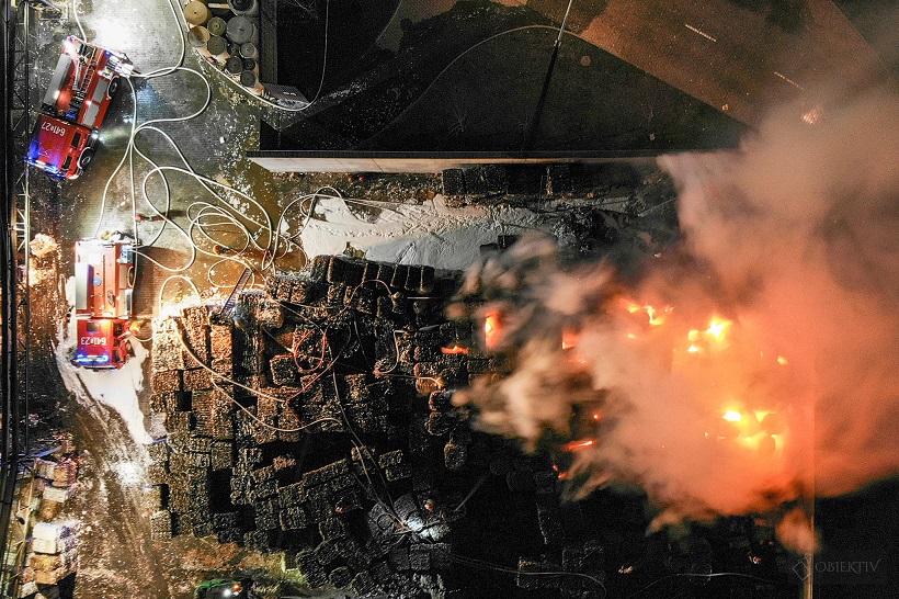 21 listopada 2020r. o godzinie 18:29 pracownicy zakładu produkcyjnego w Tychach przy ul. Katowickiej poinformowali KM PSP W Tychach o pożarze składowiska makulatury na terenie zakładu. Przedmiotowe składowisko miało powierzchnię 1500 m2, a pożarem objęta była jego część o powierzchni 180 m2 i kubaturze 1080 m3. Paliła się makulatura sprasowana w belach o objętości około 1m3 każda i wykorzystywana jako surowiec do produkcji w zakładzie. Składowisko miało formę zewnętrznego pola magazynowego stanowiącego wydzieloną strefą pożarową od pozostałych obiektów budowlanych na terenie zakładu. W działania gaśnicze udział brały łącznie 23 zastępy gaśnicze jednostek ochrony przeciwpożarowej, w tym 16 zastępów Państwowej Straży Pożarnej oraz 7 Ochotniczych Straży Pożarnych. Z uwagi na charakter składowiska oraz konieczność wykonania dostępu do płonącej części składowiska, a następnie systematycznego przelewania całej masy makulatury objętej pożarem działania gaśnicze trwały łącznie prawie 19 godzin, a w ich trakcie zużyto 815 m3 wody. Straty popożarowe oszacowano na kwotę 150 tyś. złotych natomiast wartość mienia uratowanego dzięki sprawnie prowadzonym działaniom gaśniczym oszacowano na wartość 330 tyś złotych. Ostatecznie działania gaśnicze zakończono o godzinie 13:50 w dniu 22 listopada. 2020r.