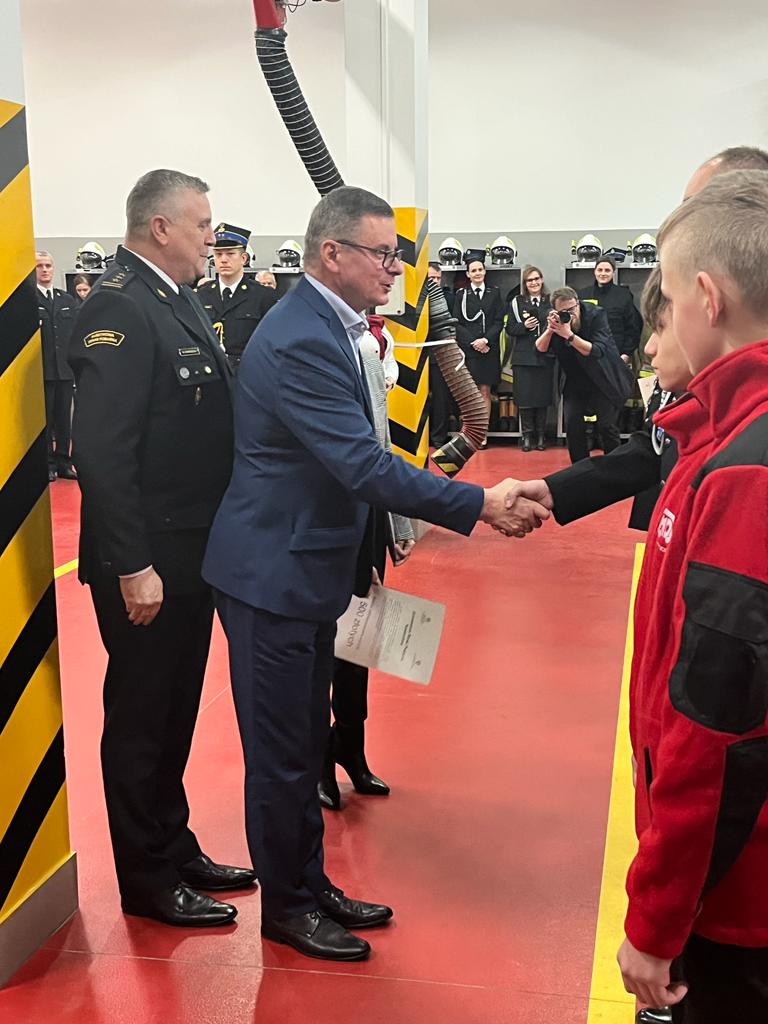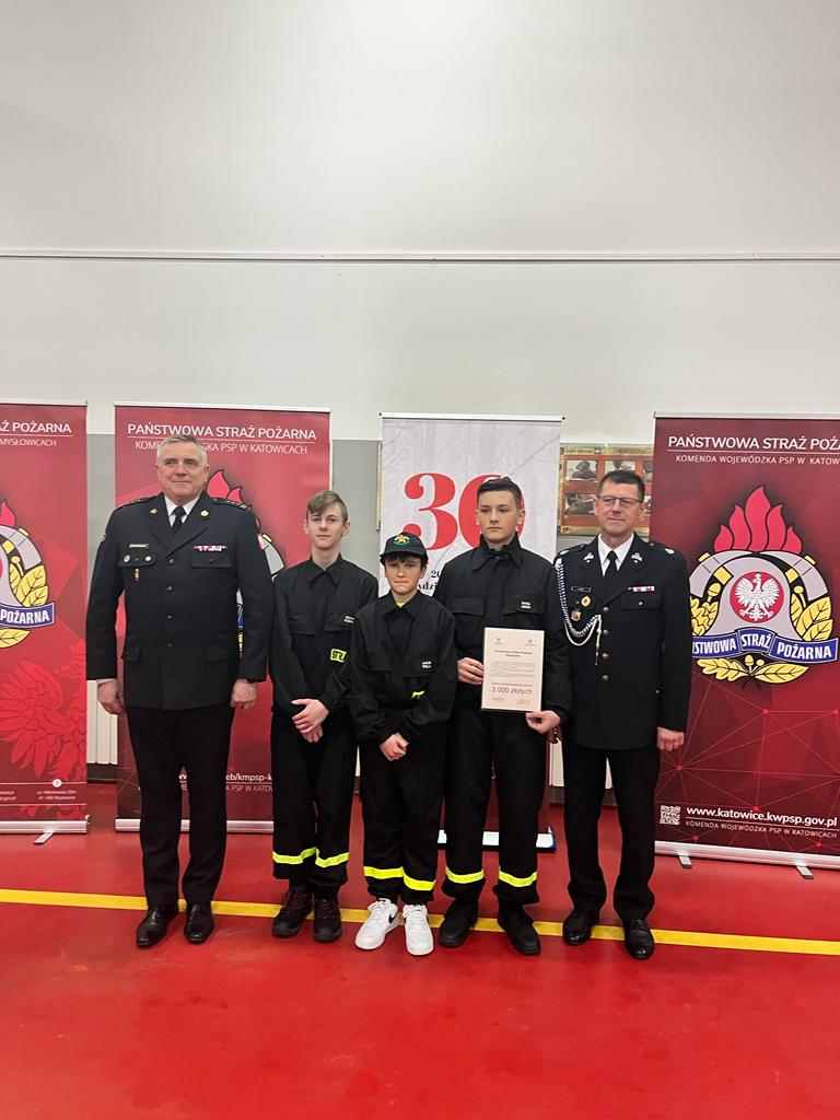 Uroczyste wręczenie promes dla Ochotniczych Straży Pożarnych na zakup sprzętu dla członków Młodzieżowych Drużyn Pożarniczych powiatu Bieruńsko-Lędzińskiego