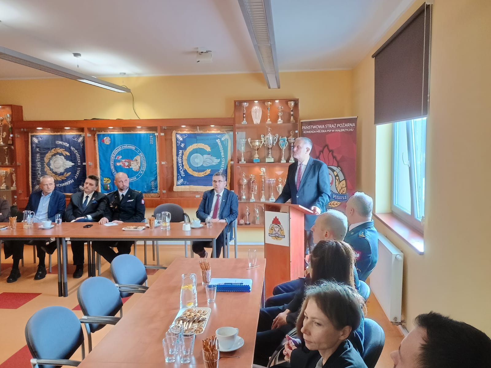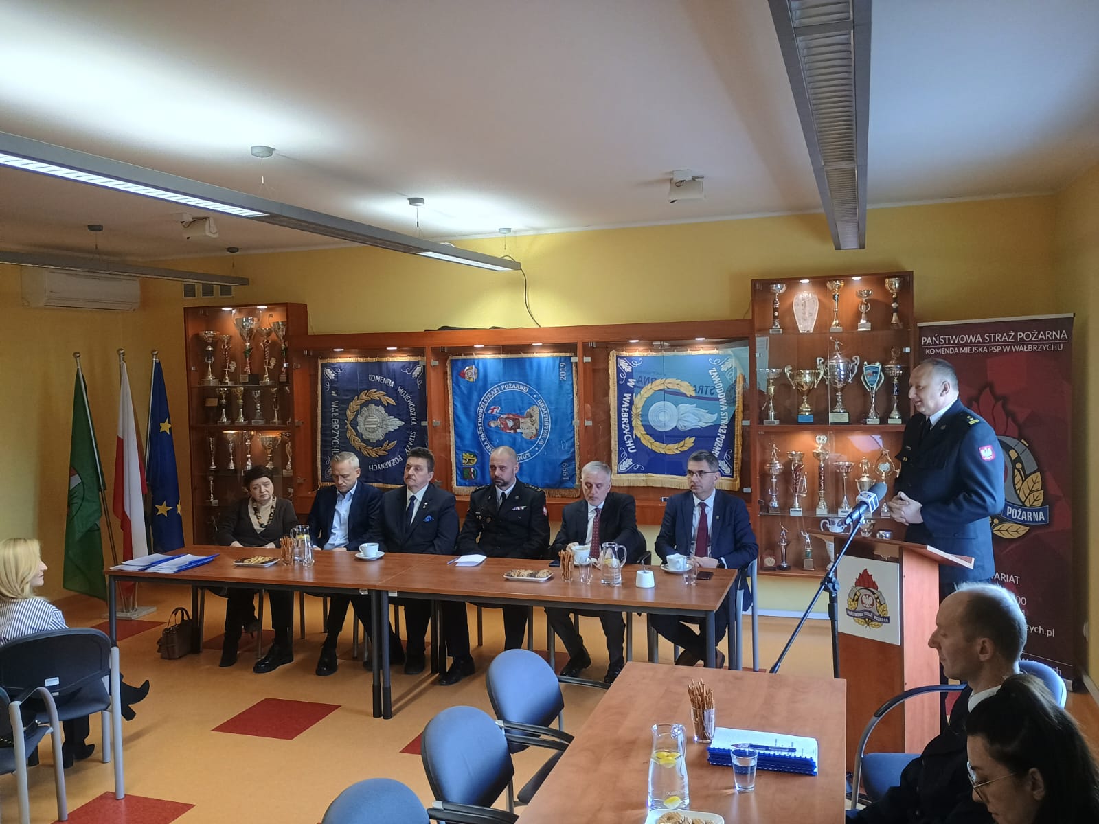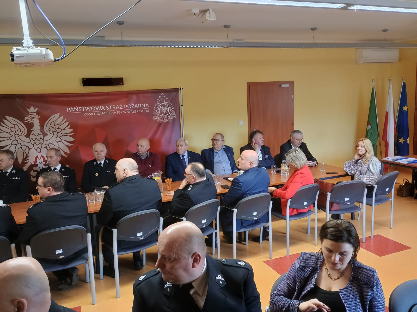 W dniu dzisiejszym w siedzibie KM PSP w Wałbrzych miała miejsce narada roczna podsumowująca działania naszej jednostki za rok 2024. W spotkaniu uczestniczyli: Posłanka na Sejm RP pani dr Sylwia Bielawska, zastępca Komendanta Wojewódzkiego PSP we Wrocławiu st. bryg. Paweł Kaliński, Prezydent Wałbrzycha pan dr Roman Szełemej, Starosta Wałbrzyski pan Leonard Górski, przewodniczący rad miasta i powiatu, przedstawiciele samorządów terytorialnych, druhowie OSP, pracownicy i funkcjonariusze KM PSP w Wałbrzychu. Podczas spotkania Komendant Miejski PSP w Wałbrzychu omówił działalność jednostki, a także plany na rok bieżący. W dalszej kolejności zaproszeni goście zabrali głos przekazując między innymi podziękowania strażakom, pracownikom cywilnym i druhom OSP za pracę w 2024 roku. Spotkanie zakończyło się wizytacją wyremontowanych pod koniec 2024 roku pomieszczeń stanowiska kierowania i sali sztabowej dokonaną przez st. bryg. Pawła Kalińskiego.