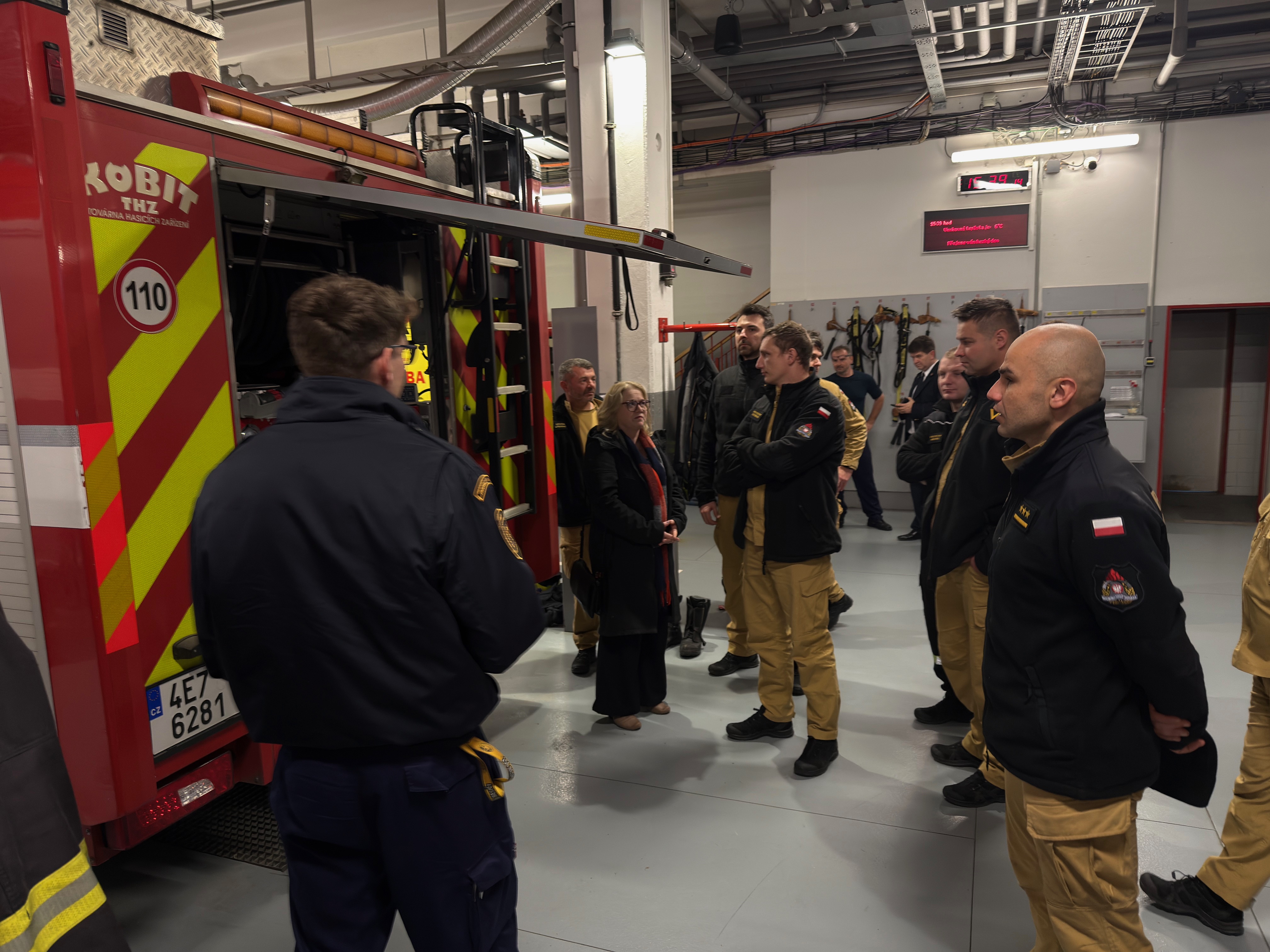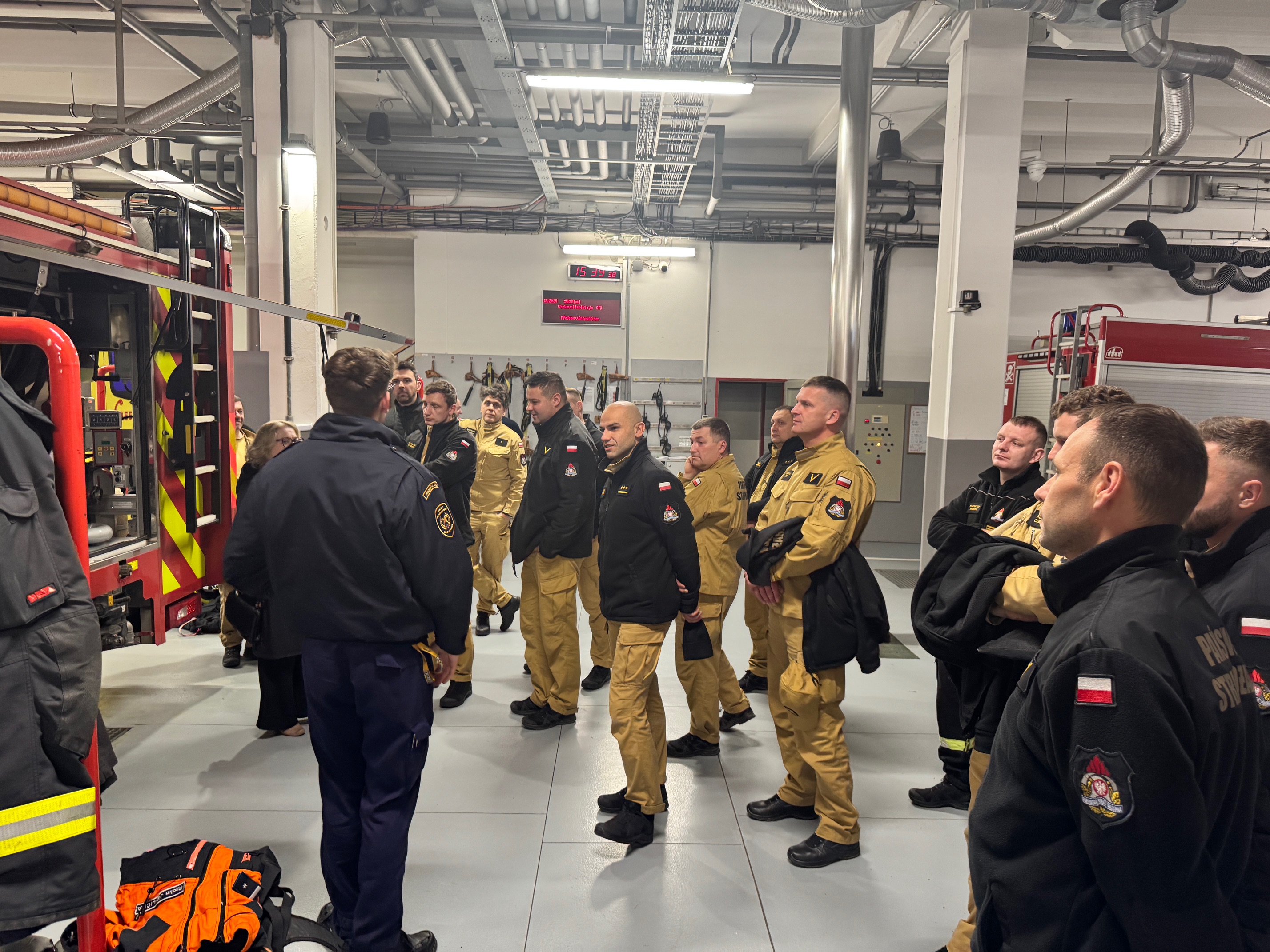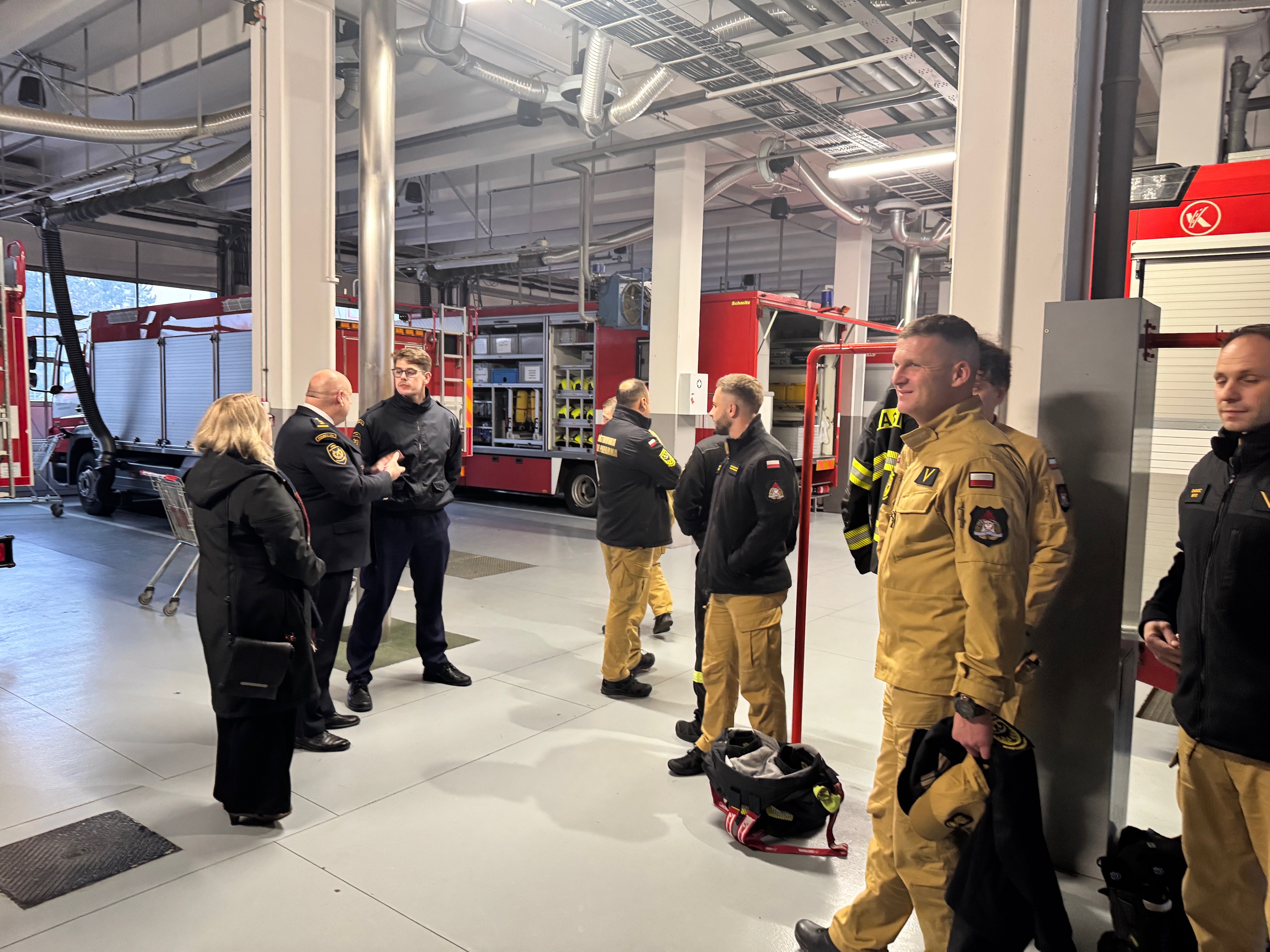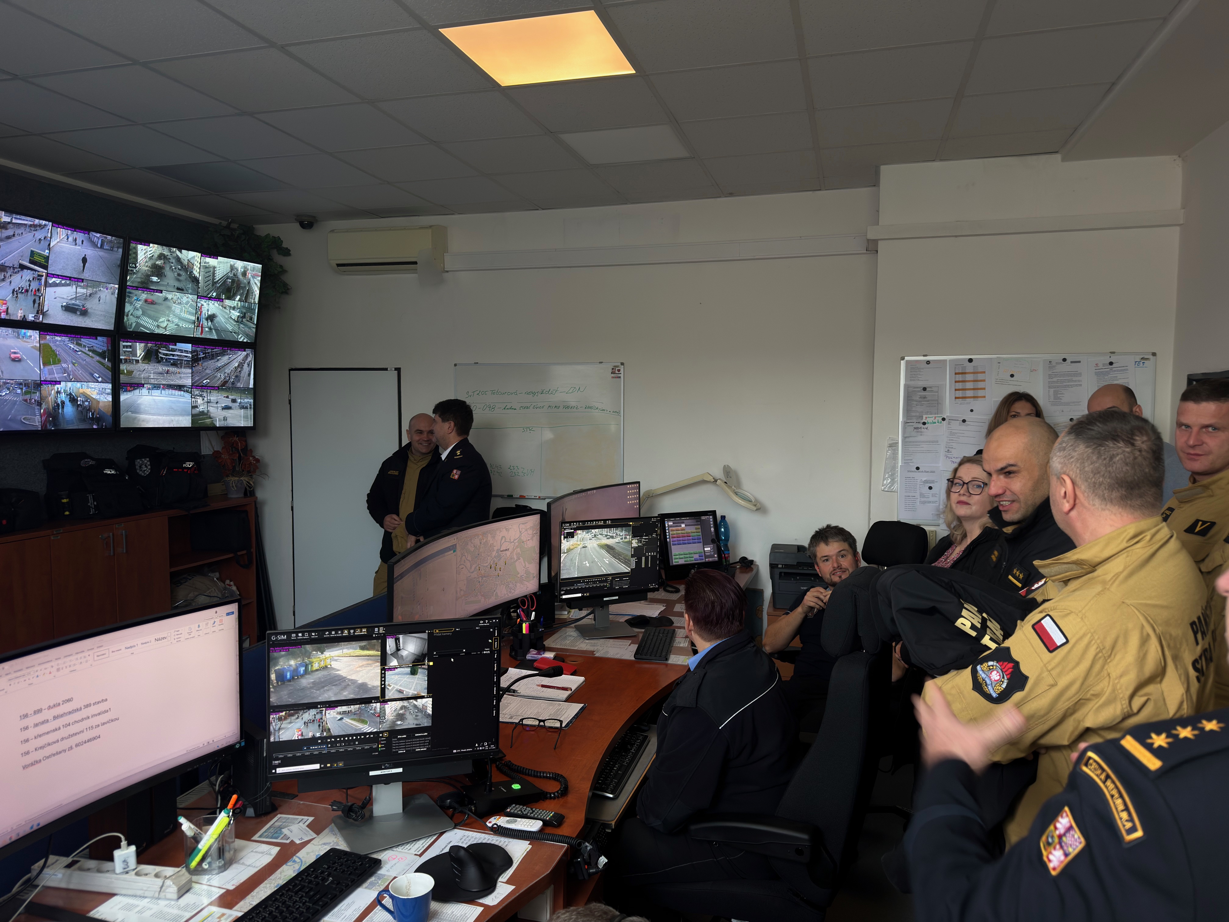 Delegacja odwiedziła Komendę Wojewódzką Straży Pożarnej, gdzie zaprezentowano system organizacji działań ratowniczych i nowoczesne narzędzia wspierające dowodzenie. Kolejnym punktem było Centrum Powiadamiania Ratunkowego, w którym omówiono proces przyjmowania zgłoszeń oraz koordynacji służb.