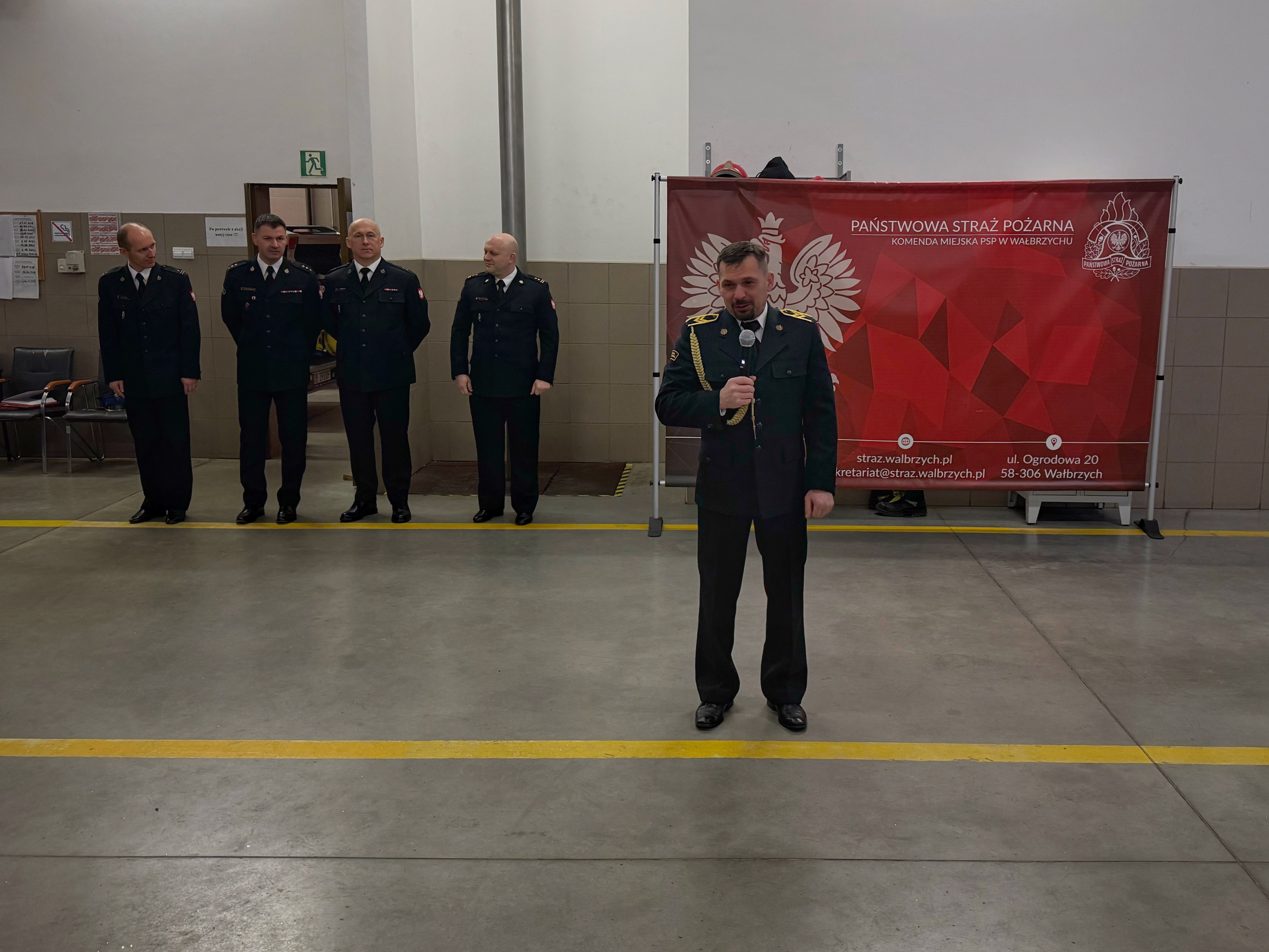 W uroczystości uczestniczył Zastępca Komendanta Miejskiego PSP w Wałbrzychu, mł. bryg. mgr inż. Michał Kozioł, który w imieniu kierownictwa podziękował odchodzącym funkcjonariuszom za lata rzetelnej służby i poświęcenia na rzecz bezpieczeństwa mieszkańców regionu.