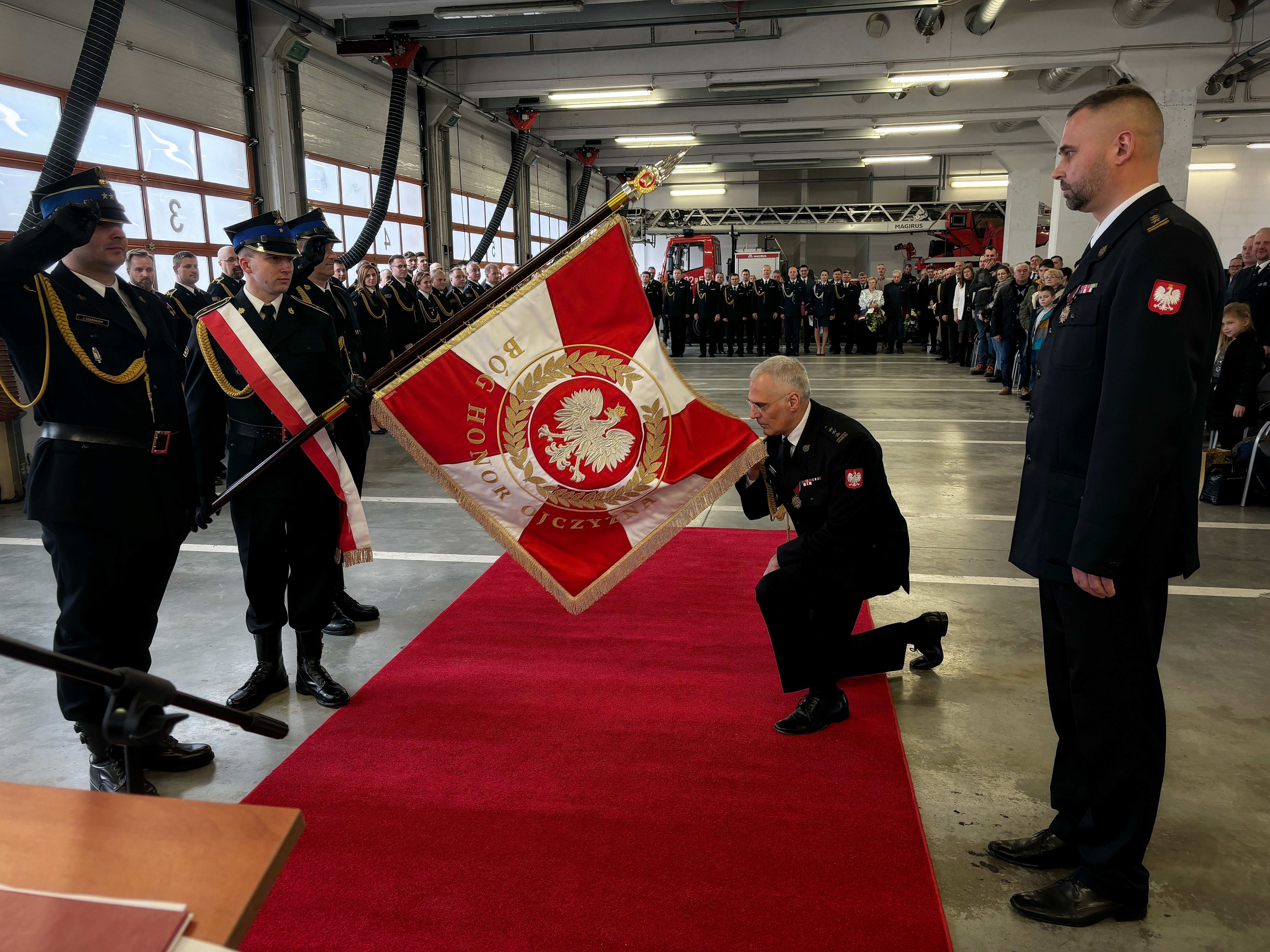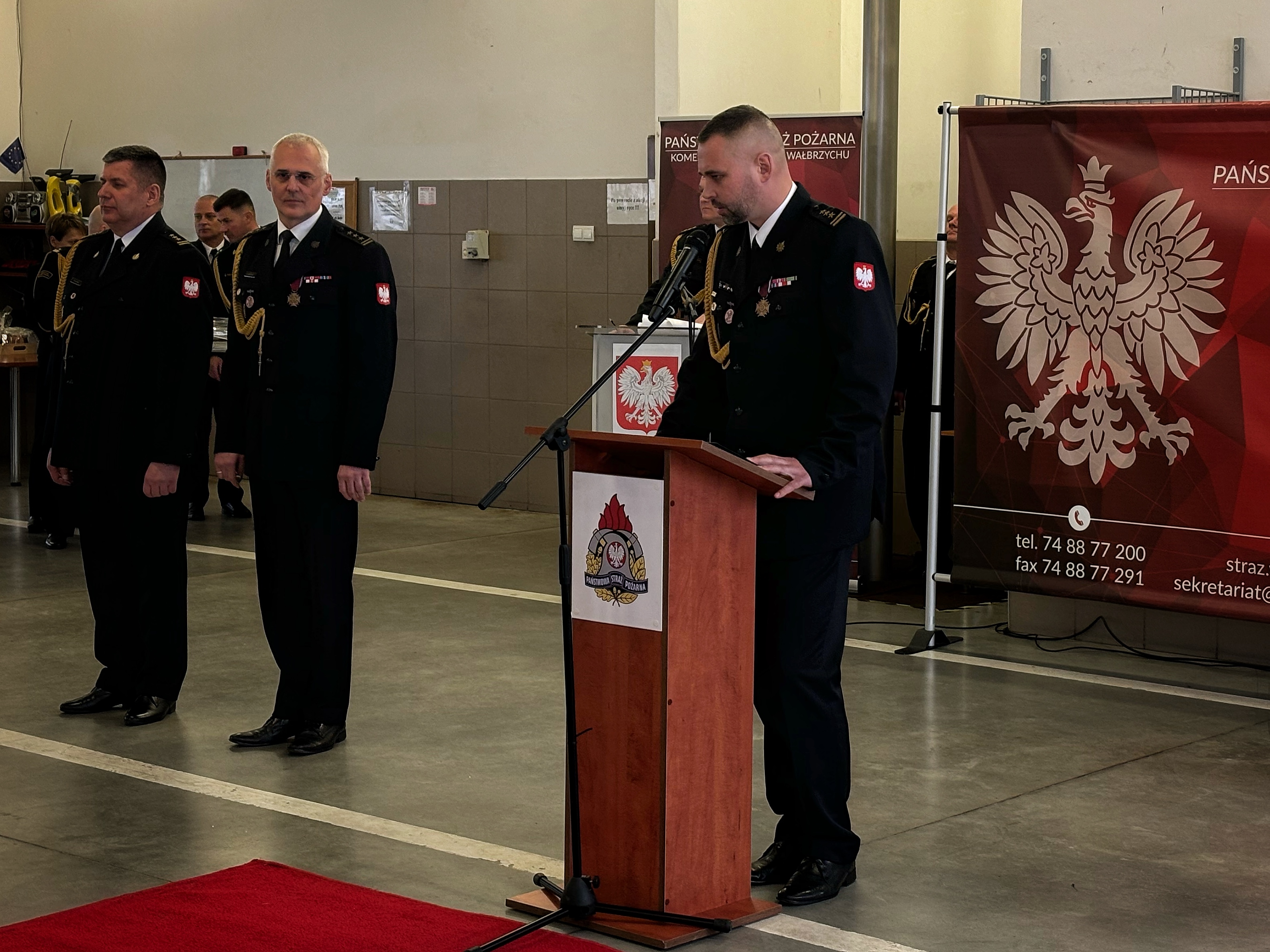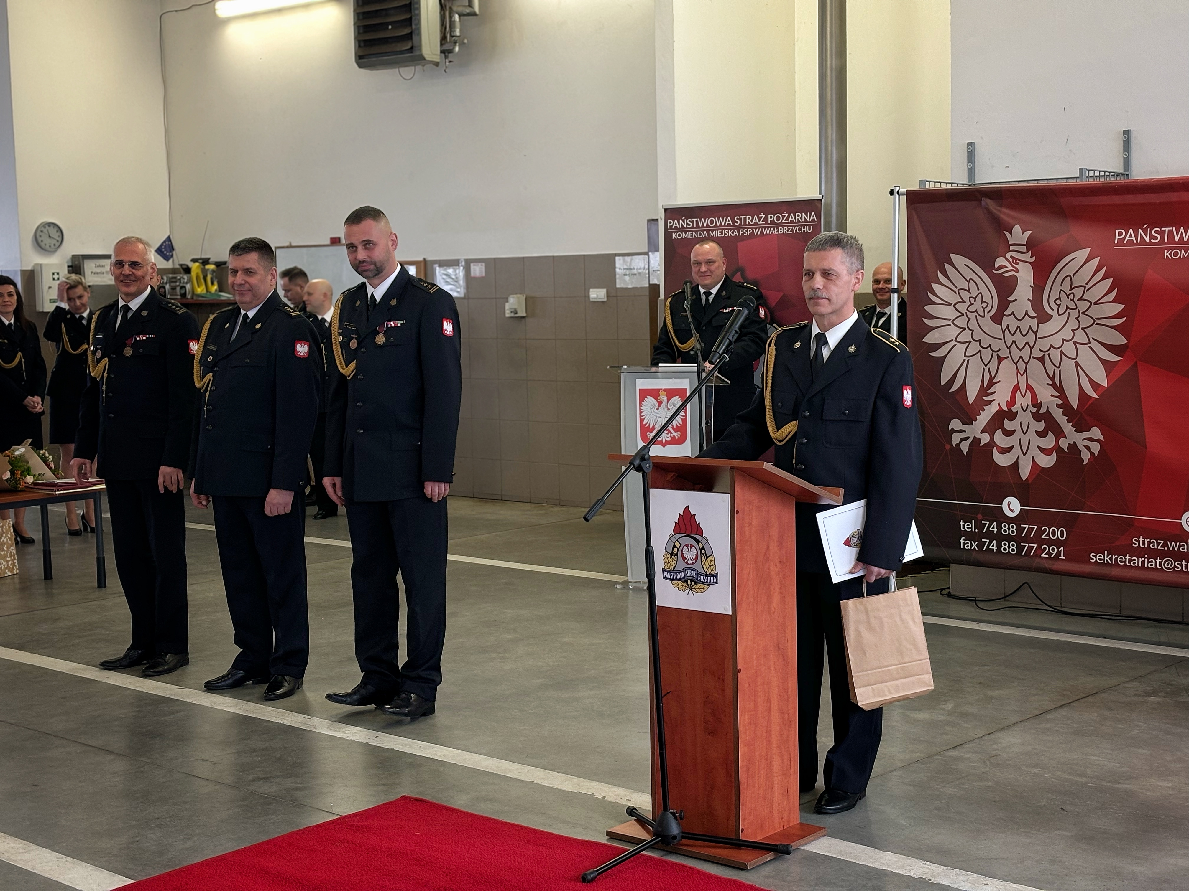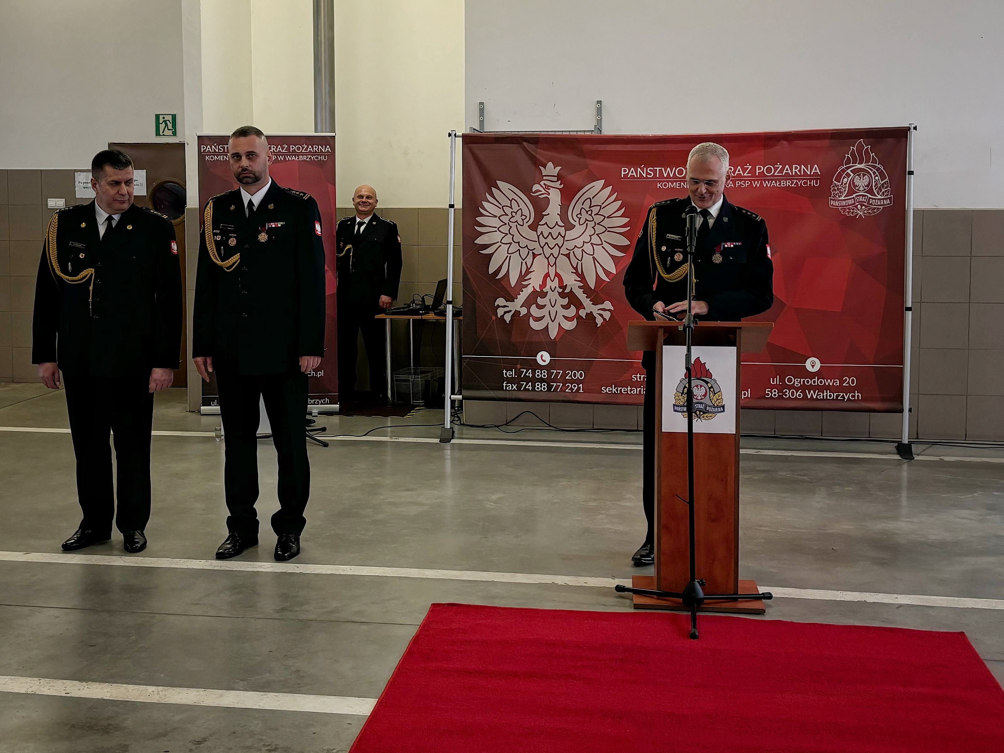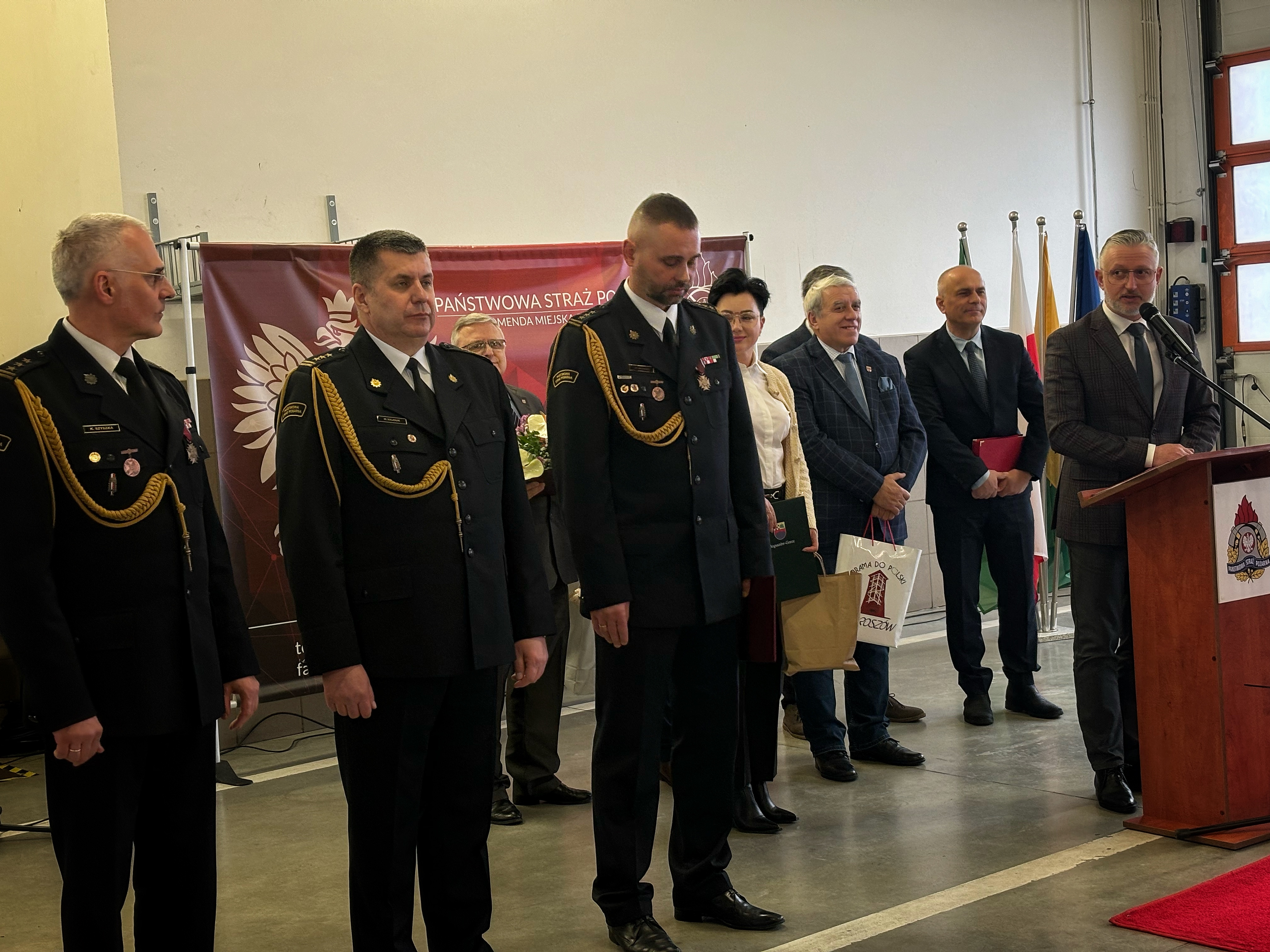 W uroczystości uczestniczył st. bryg. Marek Hajduk pełniący obowiązki Dolnośląskiego Komendanta Wojewódzkiego w Komenda Wojewódzka Państwowej Straży Pożarnej we Wrocławiu