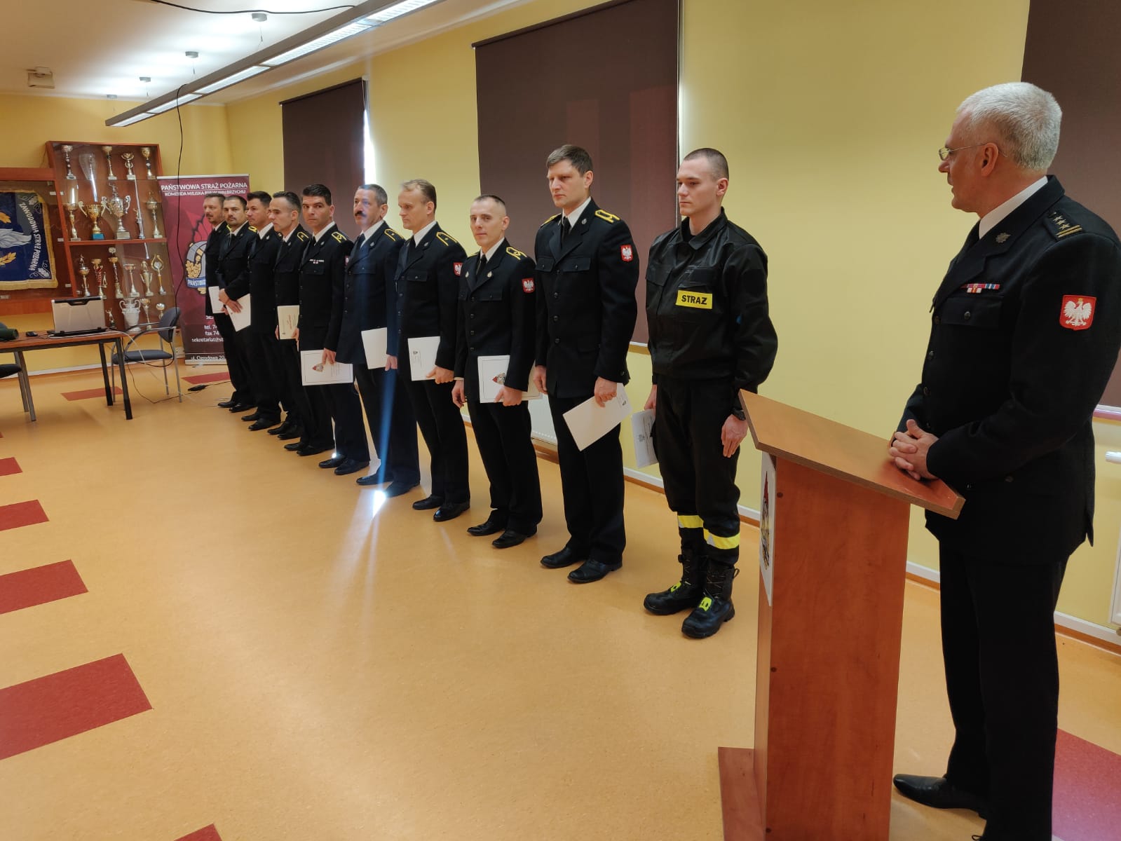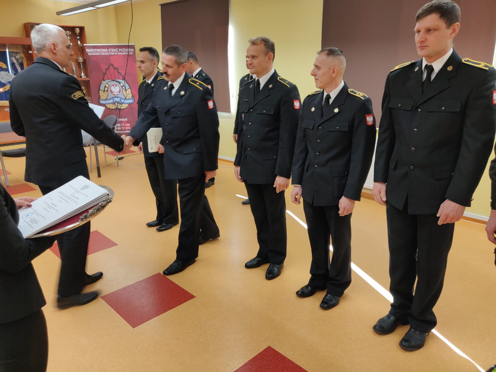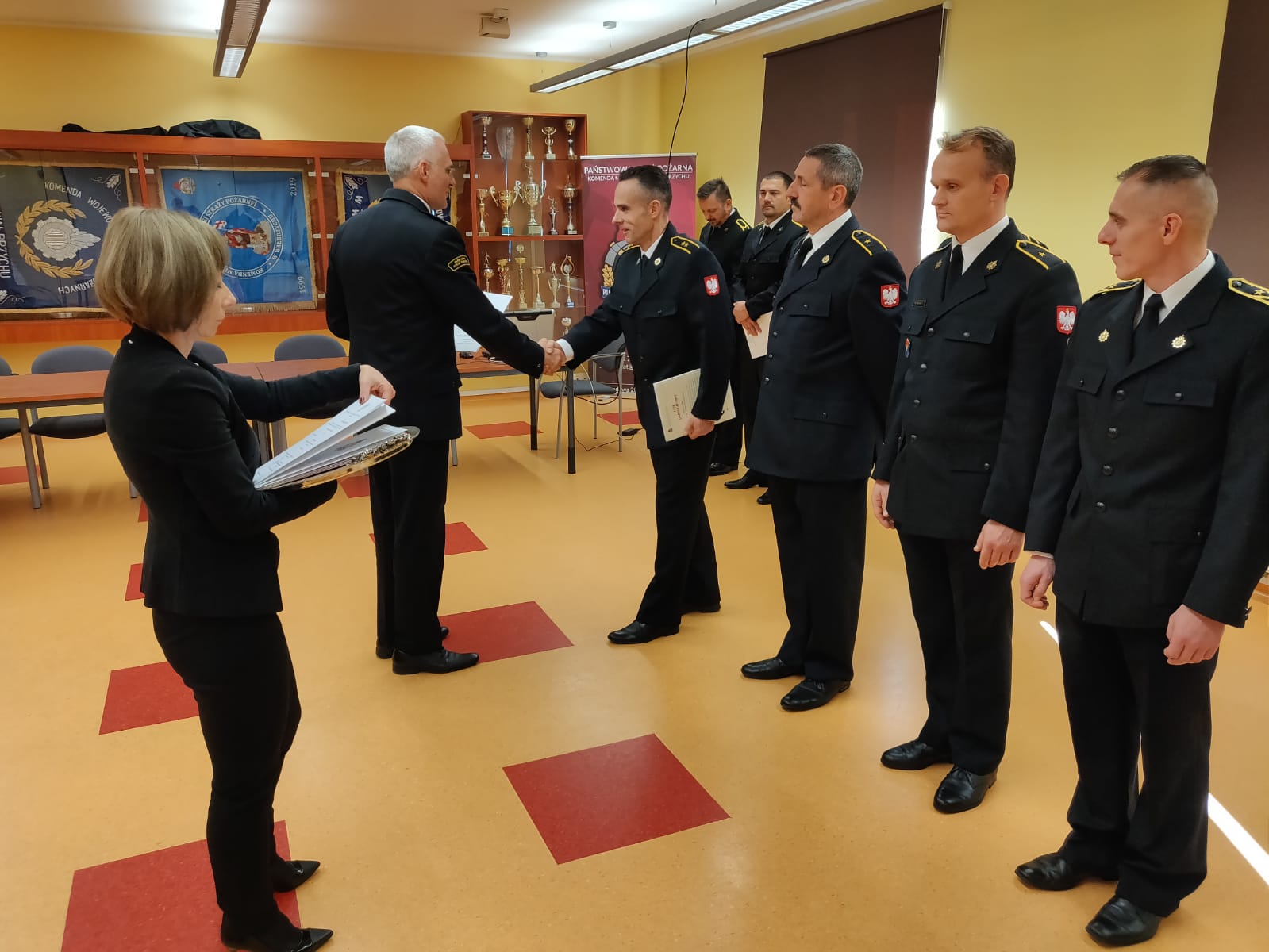 Spotkanie było również okazją do wręczenia 5-ciu strażakom okolicznościowych dyplomów z okazji jubileuszu służby oraz awansów na wyższe stanowiska służbowe.
