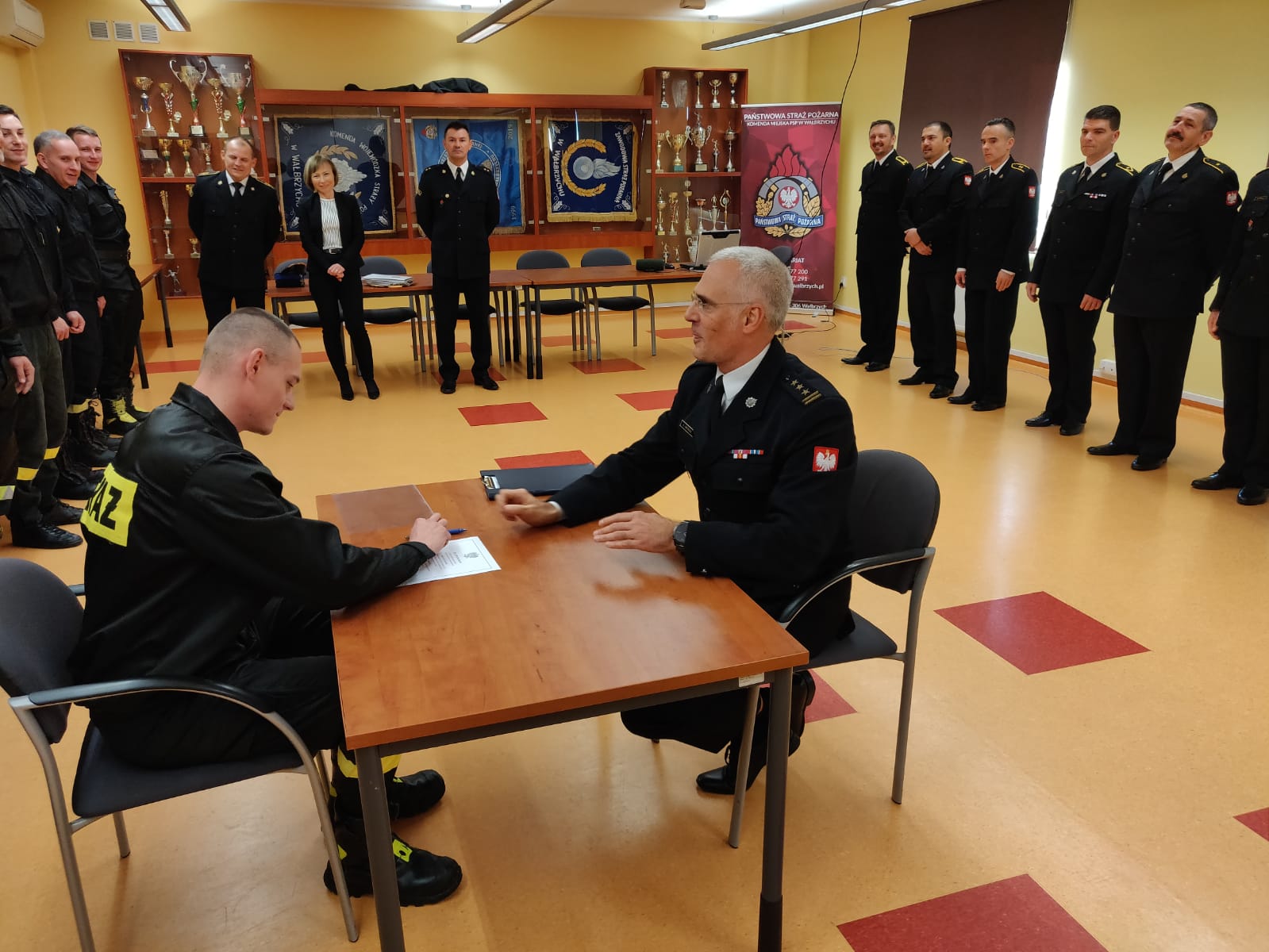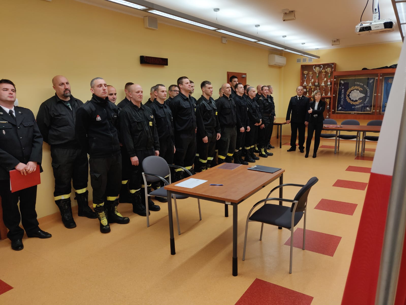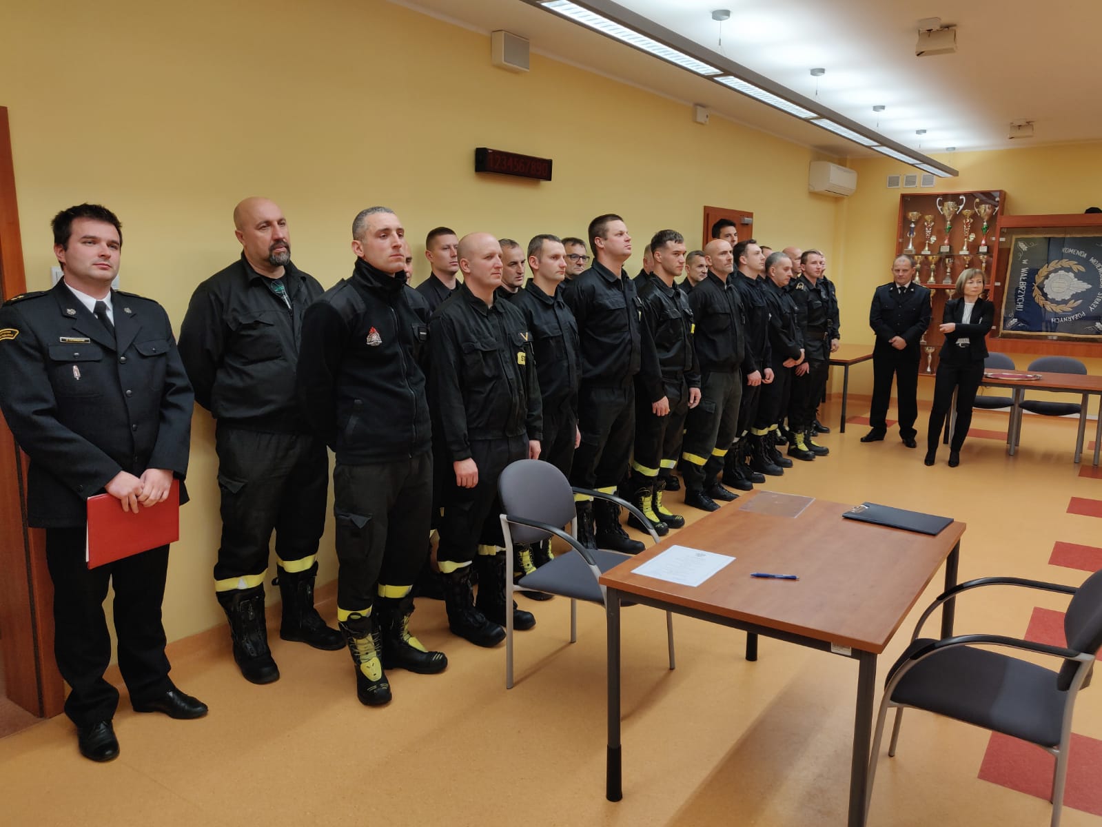 Spotkanie było również okazją do wręczenia 5-ciu strażakom okolicznościowych dyplomów z okazji jubileuszu służby oraz awansów na wyższe stanowiska służbowe.