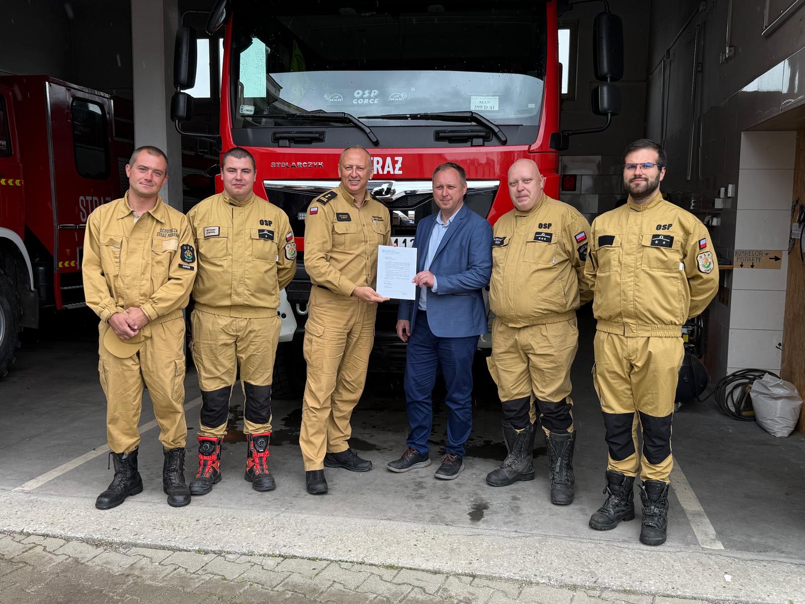 Uroczyste wręczenie promesy dla OSP Gorce na dofinansowanie do zakupu lekkiego samochodu ratowniczo-gaśniczego