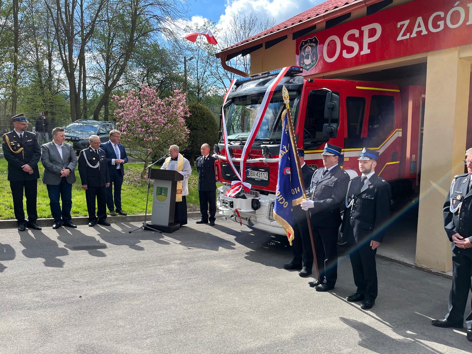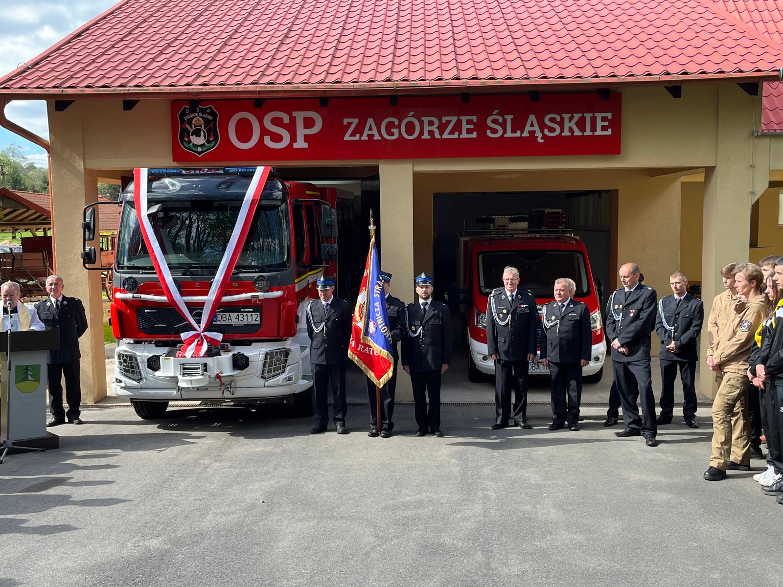 Uroczystość przekazania nowego samochodu ratowniczo-gaśniczego dla OSP Zagórze Śl.