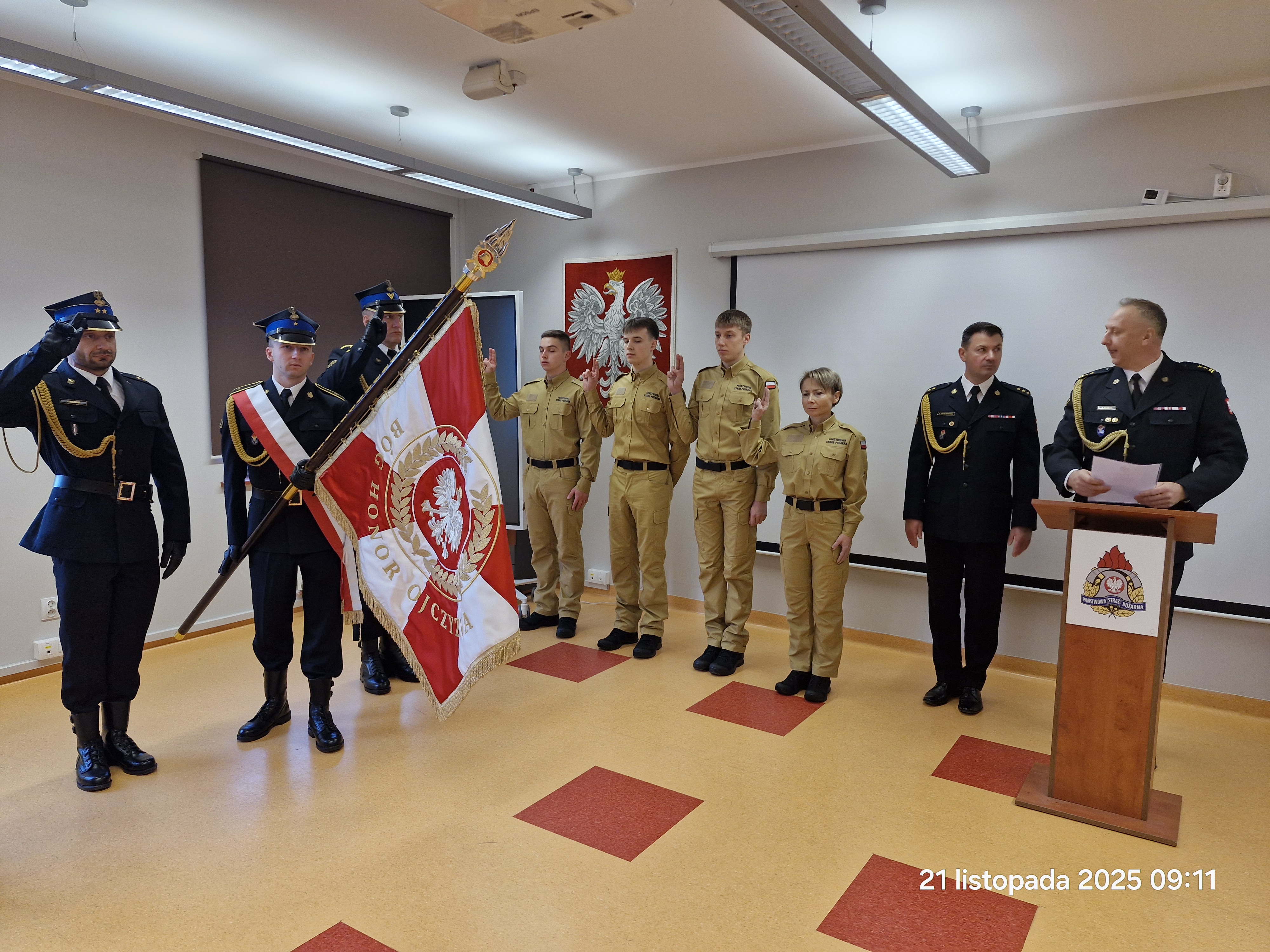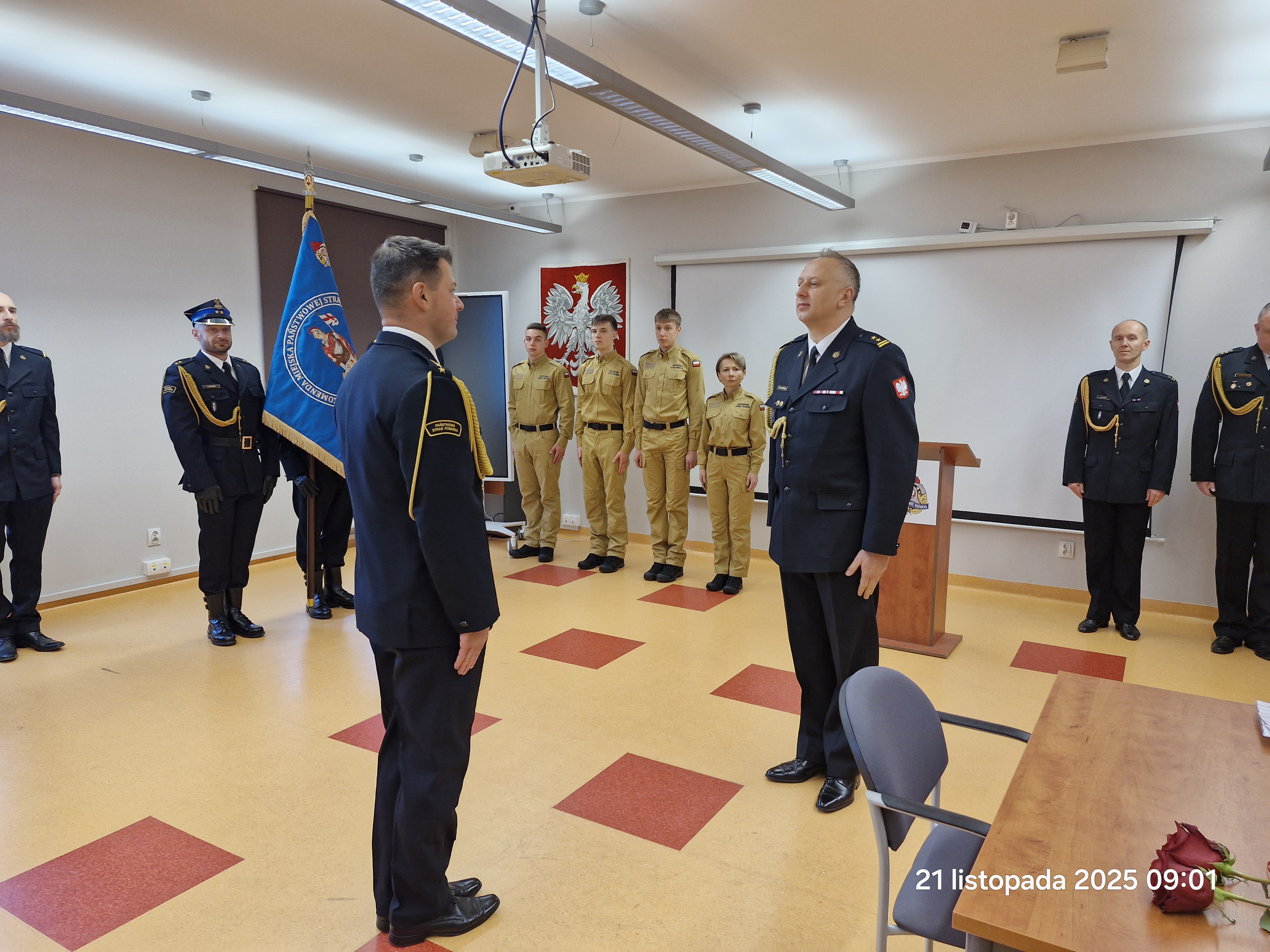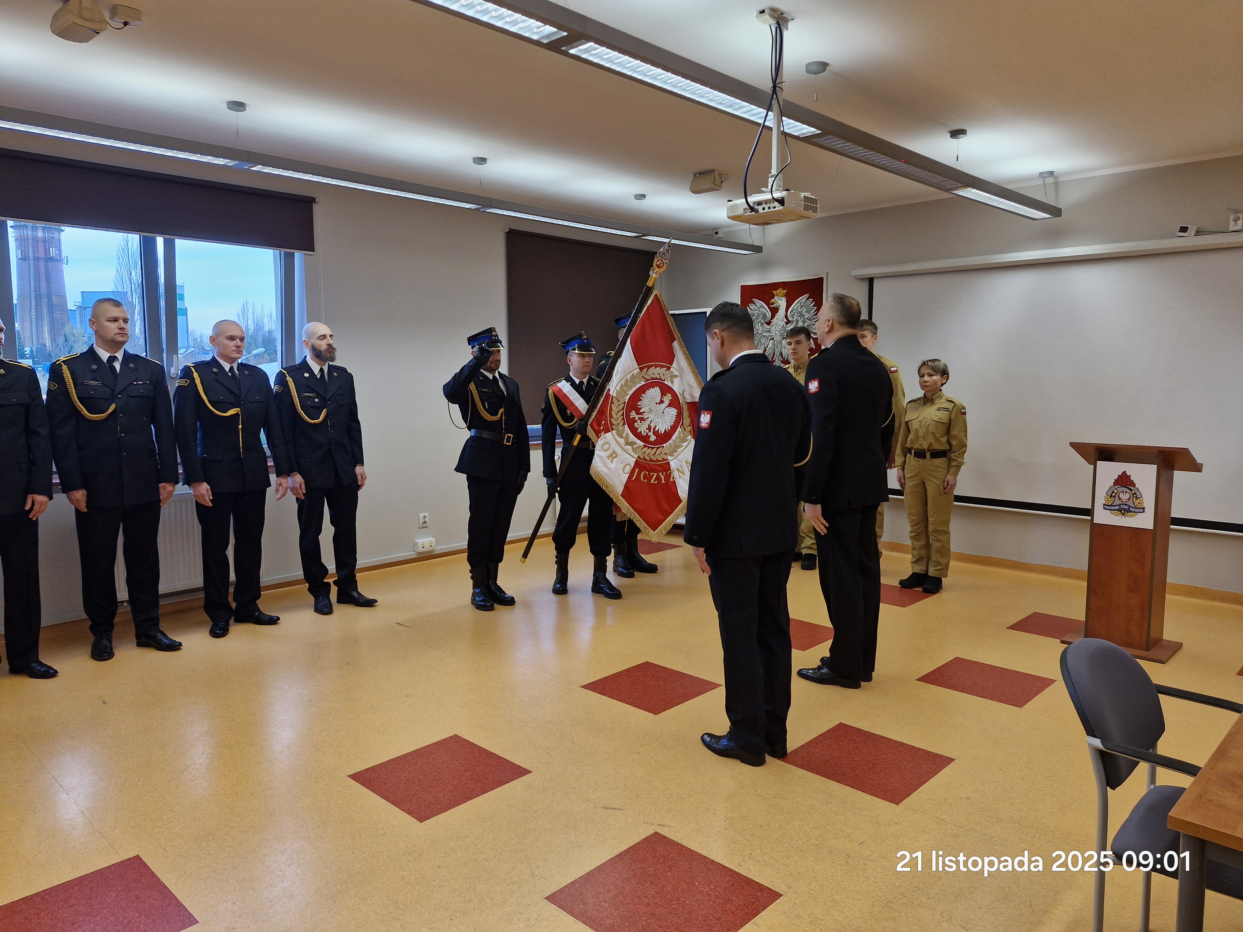W dniu 21 listopada 2025 r. w Komendzie Miejskiej Państwowej Straży Pożarnej w Wałbrzychu odbyła się uroczysta zbiórka z okazji Narodowego Święta Niepodległości. Uroczystość rozpoczęła się od złożenia meldunku przez dowódcę uroczystości Komendantowi Miejskiemu Państwowej Straży Pożarnej w Wałbrzychu – bryg, Arkadiuszowi Klebanowi oraz odegraniu hymnu państwowego. Następnie szef wałbrzyskich strażaków w asyście swojego zastępcy – mł. bryg. Michała Kozioła wręczył nominacje na wyższe stopnie służbowe w korpusie podoficerskim. W dalszej części uroczystości odbyło się ślubowanie 4 nowoprzyjętych strażaków, którzy pomyślnie przeszli wieloetapowy proces rekrutacji do służby przygotowawczej w KM PSP w Wałbrzychu. Ślubowanie to bardzo uroczysty moment w życiu zawodowym każdego strażaka. Stanowi symbol pełnego włączenia się do służby cieszącej się wśród społeczeństwa niesłabnącym zaufaniem i dużym prestiżem. Jest również początkiem zawodowej drogi, wypełnionej szkoleniami i specjalistycznymi kursami, które mają na celu przede wszystkim zdobywanie i doskonalenie umiejętności ratowniczych by móc je właściwie wykorzystać w codziennej służbie. Wszystkim wyróżnionym, jak również tym dopiero stawiającym pierwsze kroki w służbie, życzymy wytrwałości i samych sukcesów na drodze zawodowej oraz w życiu prywatnym.