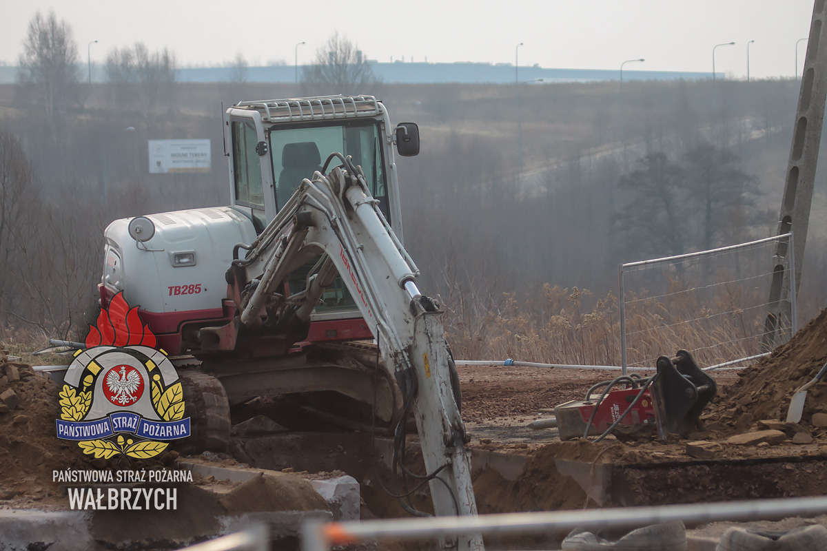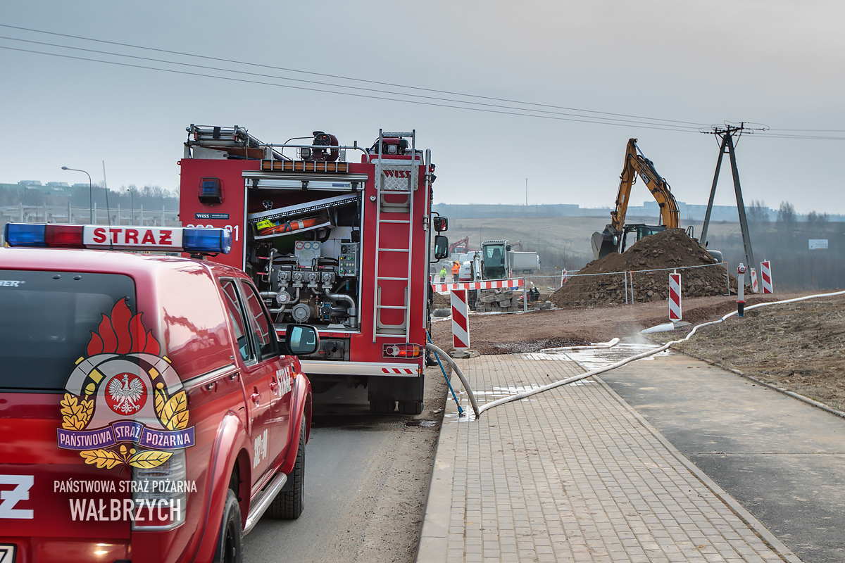 4 marca po godzinie 8.00 SK KM PSP w Wałbrzychu odebrało zgłoszenie o uszkodzeniu gazociągu średniego ciśnienia przez firmę wykonującą prace ziemne. Podczas prac operator koparki uszkodził gazociąg. Zdarzenie miało miejsce na terenie Wałbrzyskiej Specjalnej Strefy Ekonomicznej. Do działań dysponowane były zastępy z JRG 2 w Wałbrzychu wchodzące jednocześnie w skład SGRChem-Ekol. „Wałbrzych – 2”. Na miejsce zadysponowane zostało Pogotowie Gazowe i Pogotowie Energetyczne. Nasze działania polegały na zabezpieczeniu miejsca, ustawieniu kurtyn wodnych oraz określeniu i monitorowaniu strefy niebezpiecznej. Pracownicy Pogotowia Gazowego zlokalizowali zasuwę na gazociągu i po jej zamknięciu przystąpili do naprawy uszkodzonej instalacji.