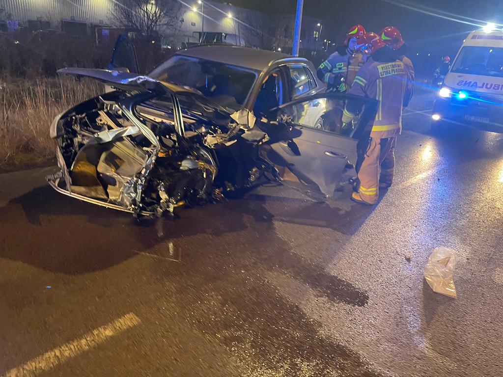 W dniu 01.12.2023 r. o godzinie 17:27 do Jednostki Ratowniczo - Gaśniczej nr 9 wpłynęło zgłoszenie o wypadku na ul. Wirażowej. Do zdarzenia zadysponowano zastępy z JRG 9 oraz Grupę Operacyjną Miasta.