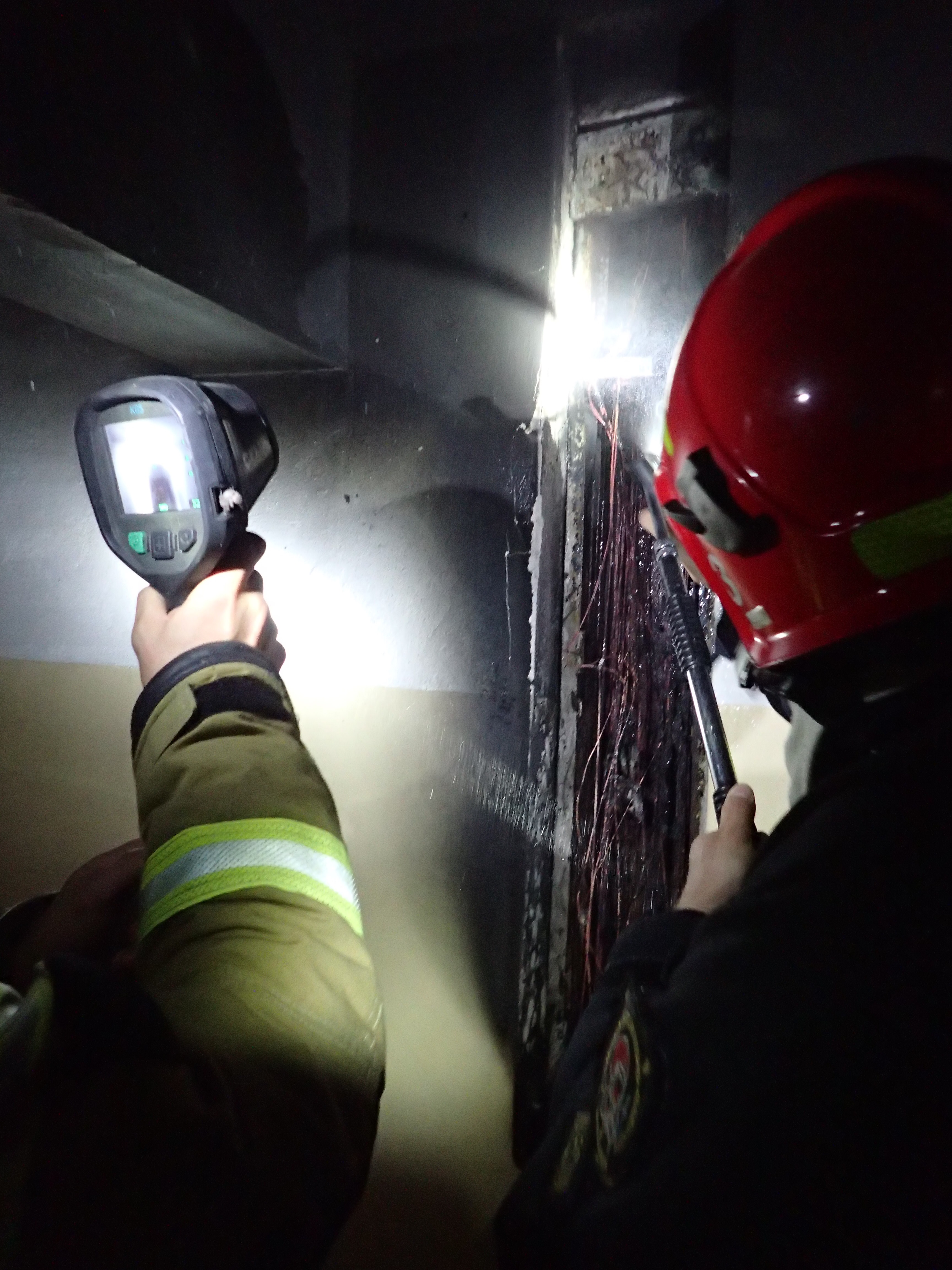 Po przybyciu na miejsce ustalono, że doszło do pożaru instalacji elektrycznej w jednym z szachtów na trzech kondygnacjach, a pożar został wstępnie ugaszony przez mieszkańców przy pomocy gaśnic proszkowych.