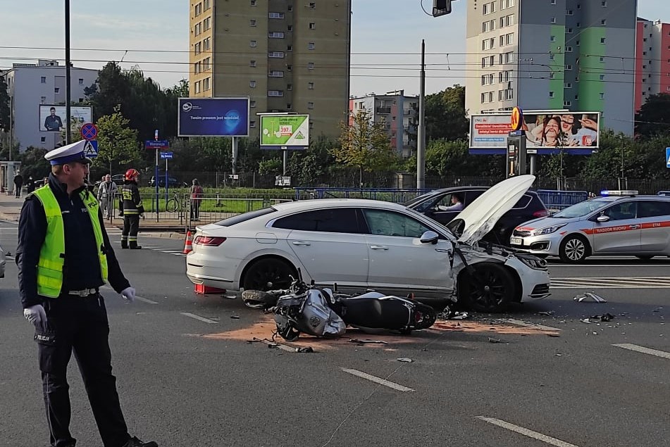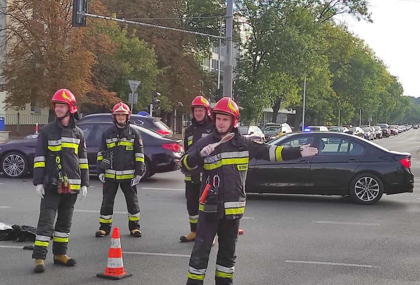 W dniu 07.09.2021 r. około godziny 7:45 do Jednostki Ratowniczo - Gaśniczej nr 9 wpłynęło zgłoszenie o wypadku samochodu osobowego z motocyklem na skrzyżowaniu al. Niepodległości z ulicą Woronicza. Do zdarzenia zadysponowano GBA-Rt 2,5/25/2,5 oraz GCBA 5/32/2,5.