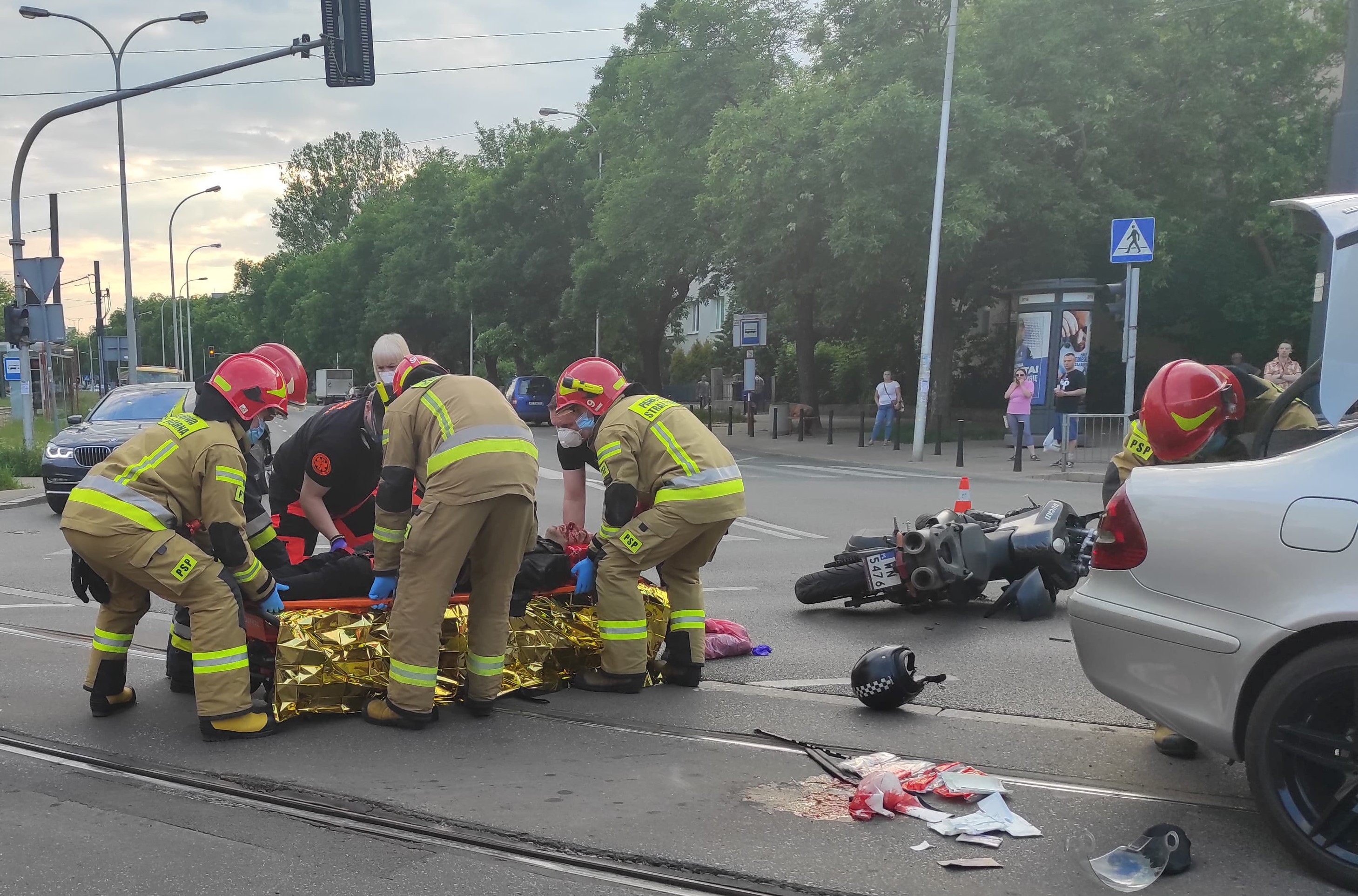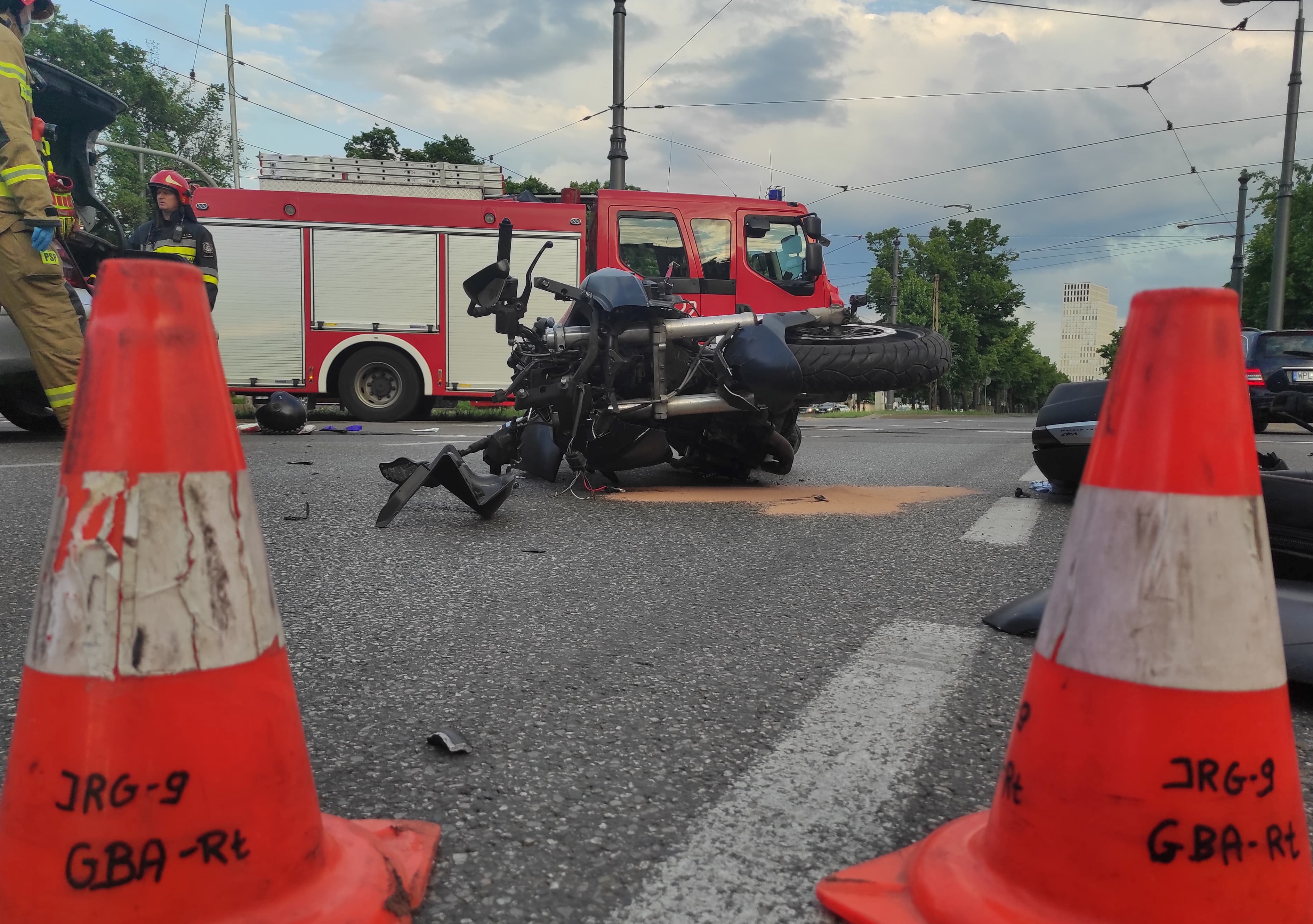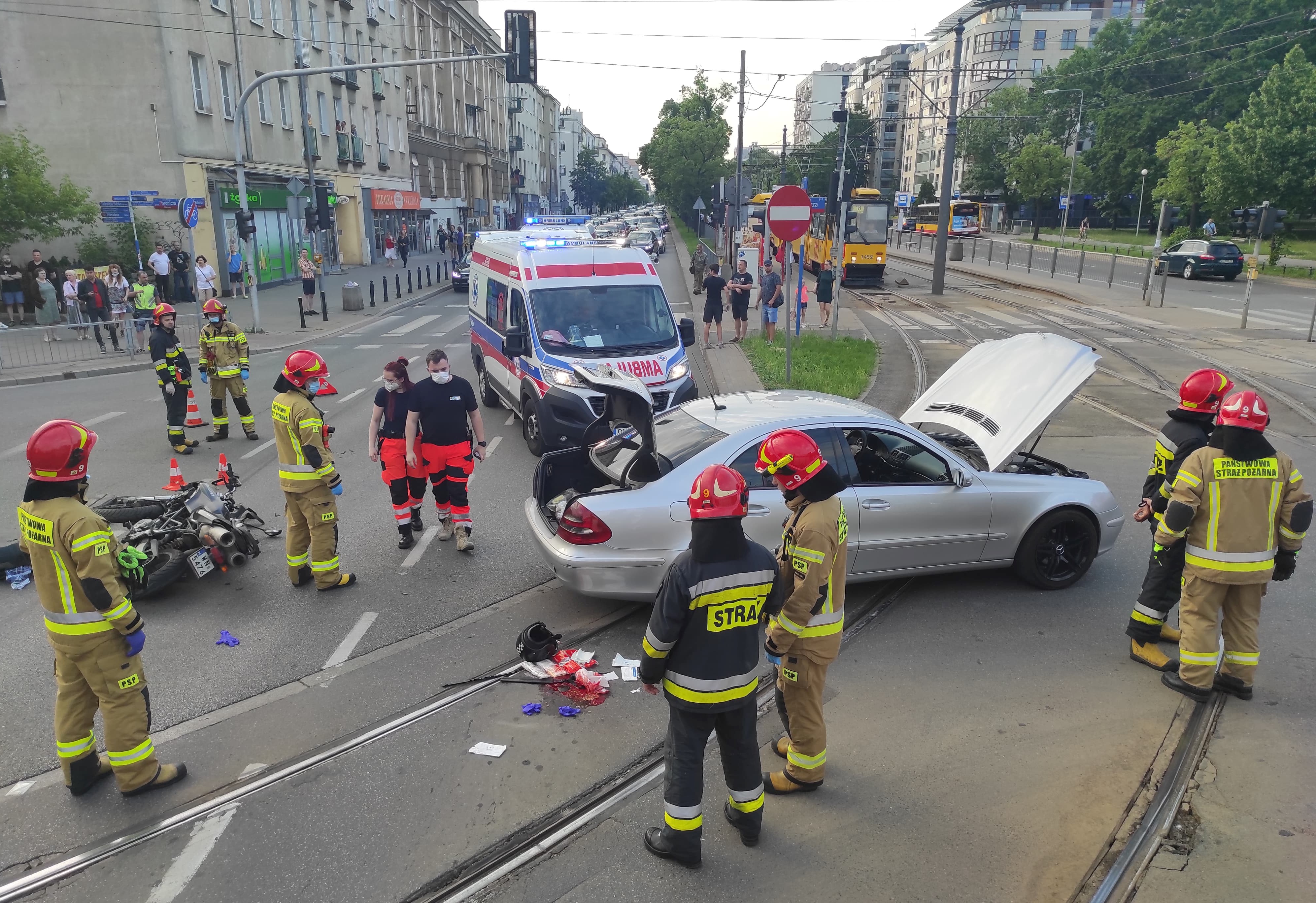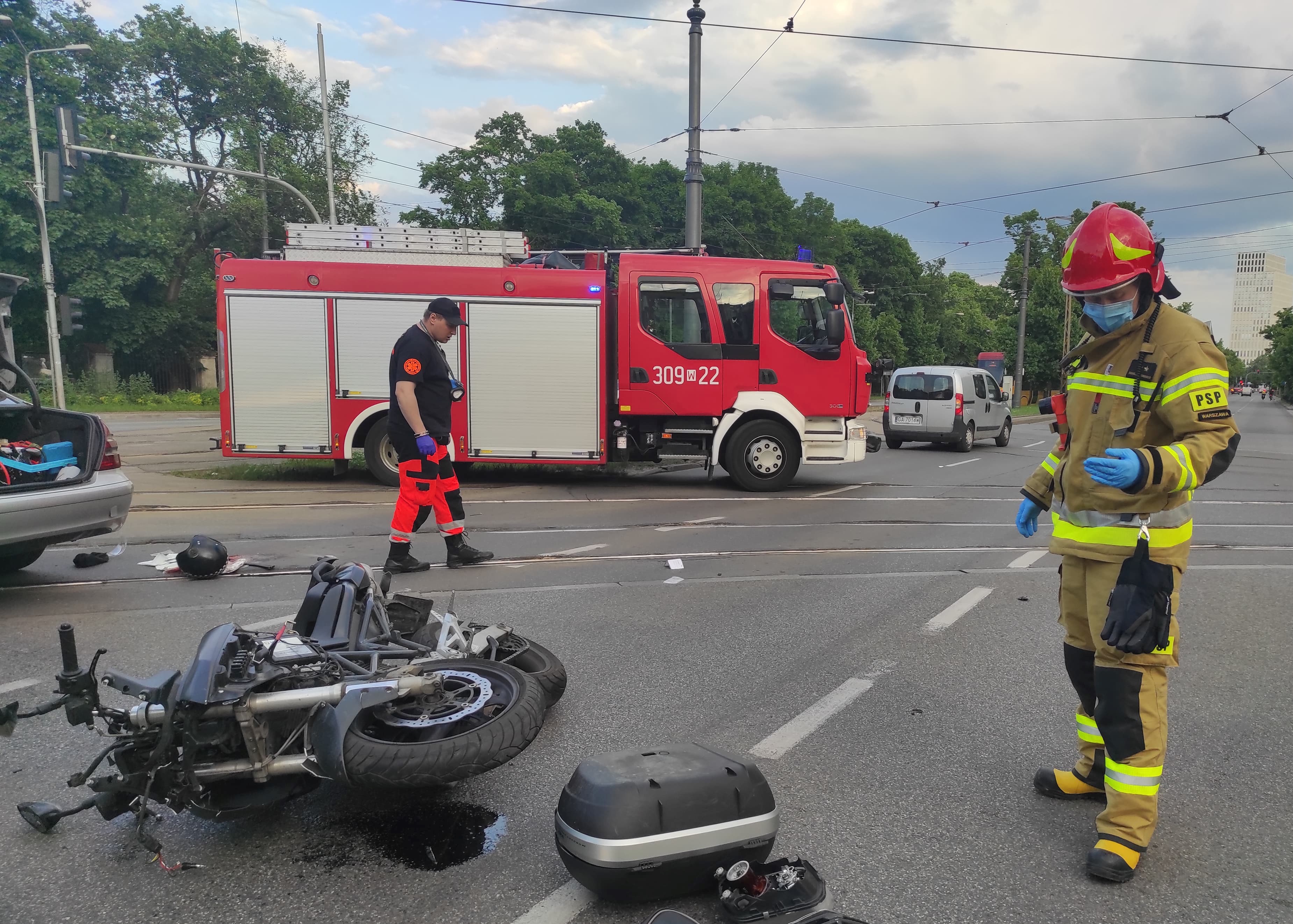 08.06.2021 – Wypadek z udziałem motocyklisty na skrzyżowaniu Puławska/Wołoska.
