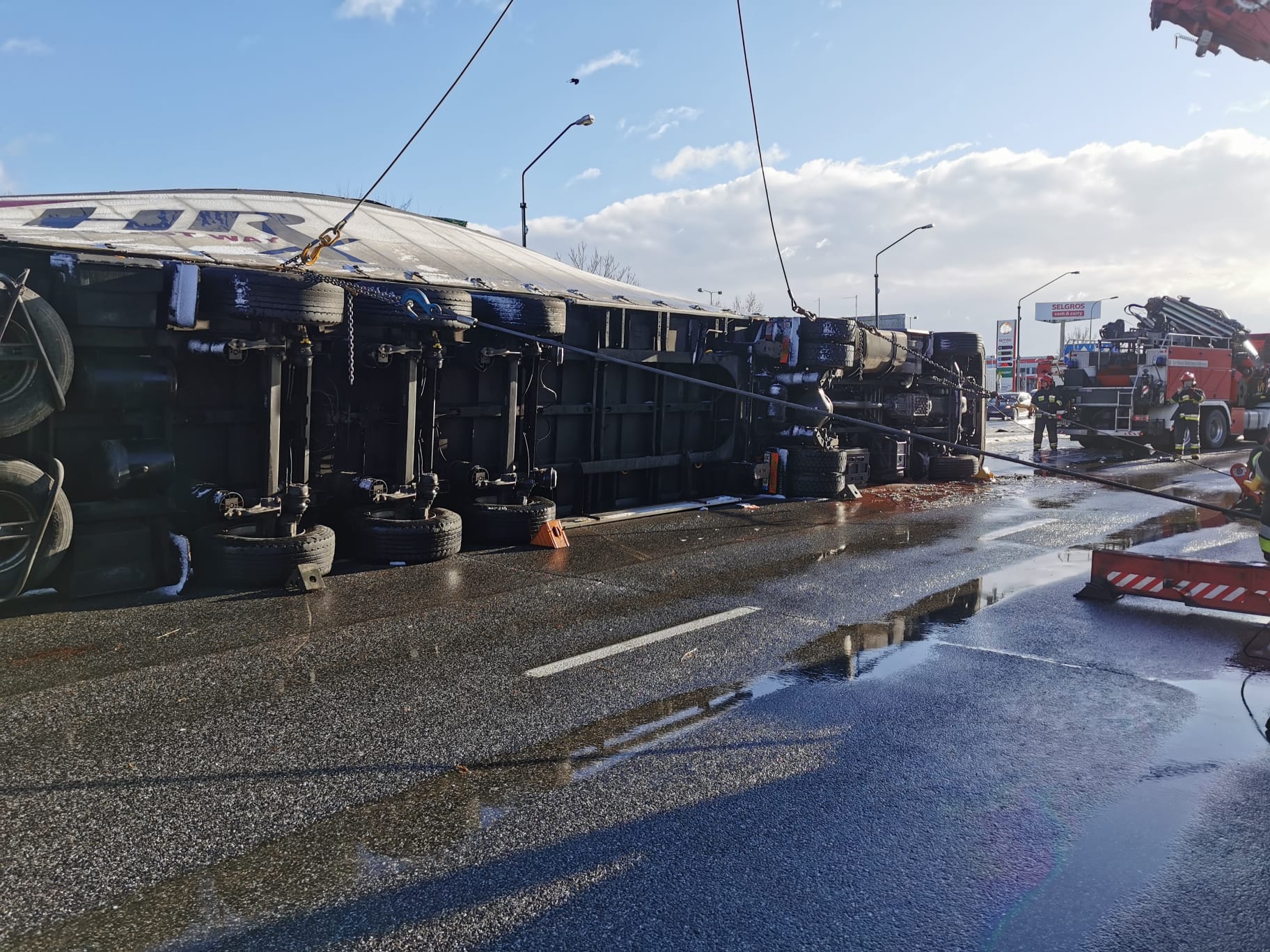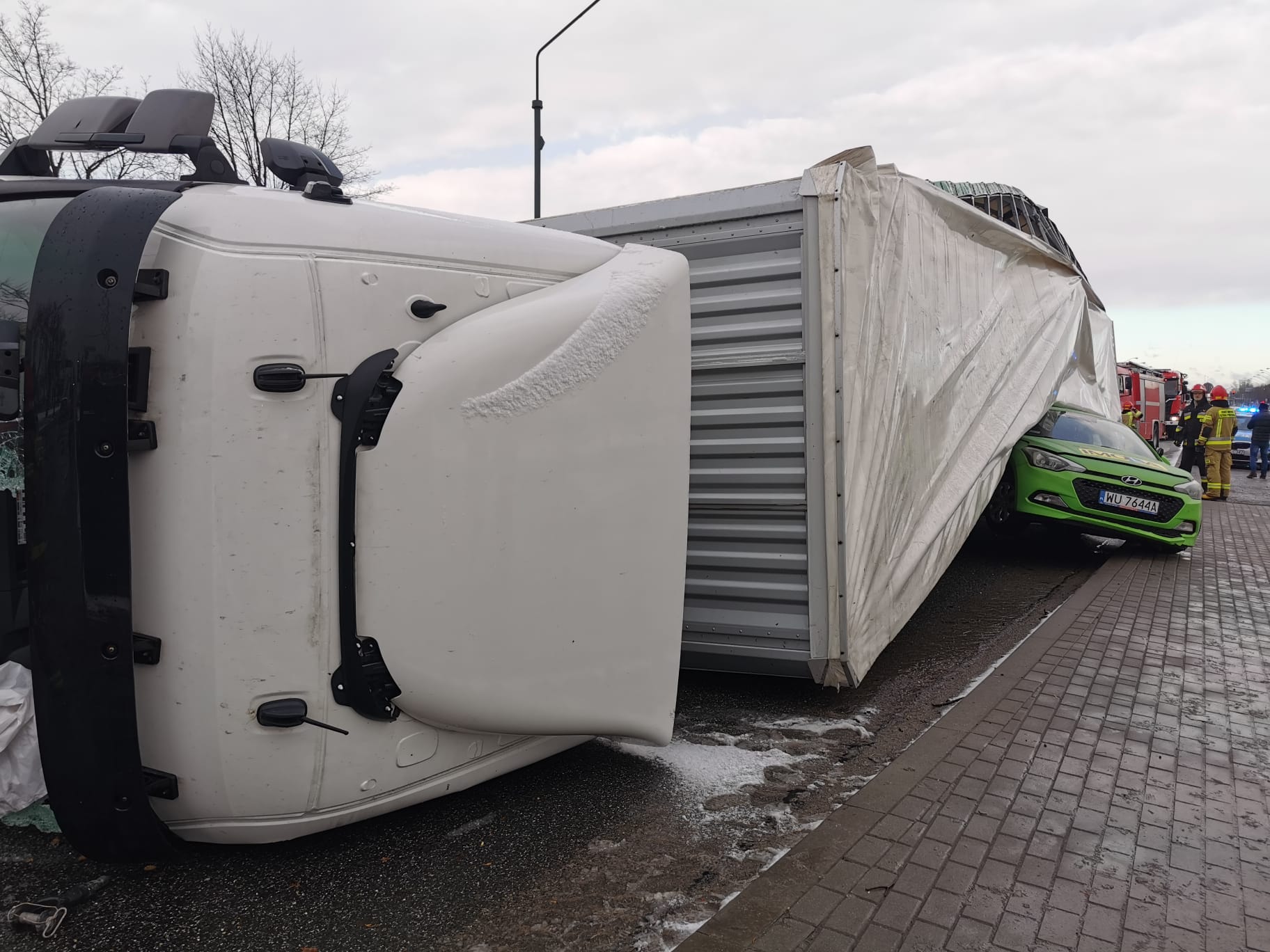 17.01.2022 – Przewrócona ciężarówka na Puławskiej.