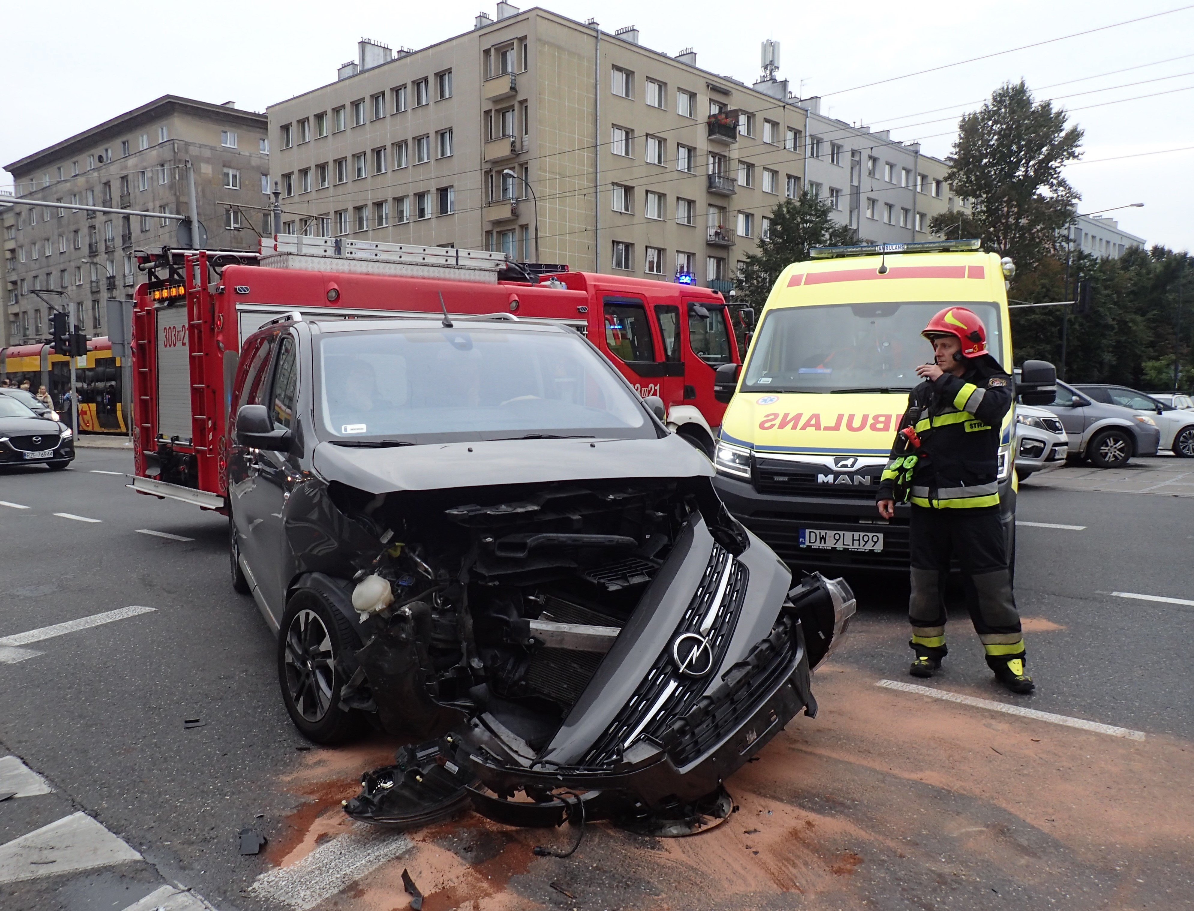 W dniu 17 września o godzinie 8:11 do Stanowiska Kierowania Komendanta Miejskiego PSP m. st. Warszawy wpłynęło zgłoszenie o zdarzeniu drogowym na skrzyżowaniu ulic Grójeckiej i Wawelskiej. Do działań zadysponowano zastępy GBA 2,5/25, GBA-Rt 2,9/16 oraz SLRR wraz z Dowództwem z Jednostki Ratowniczo-Gaśniczej PSP nr 3.