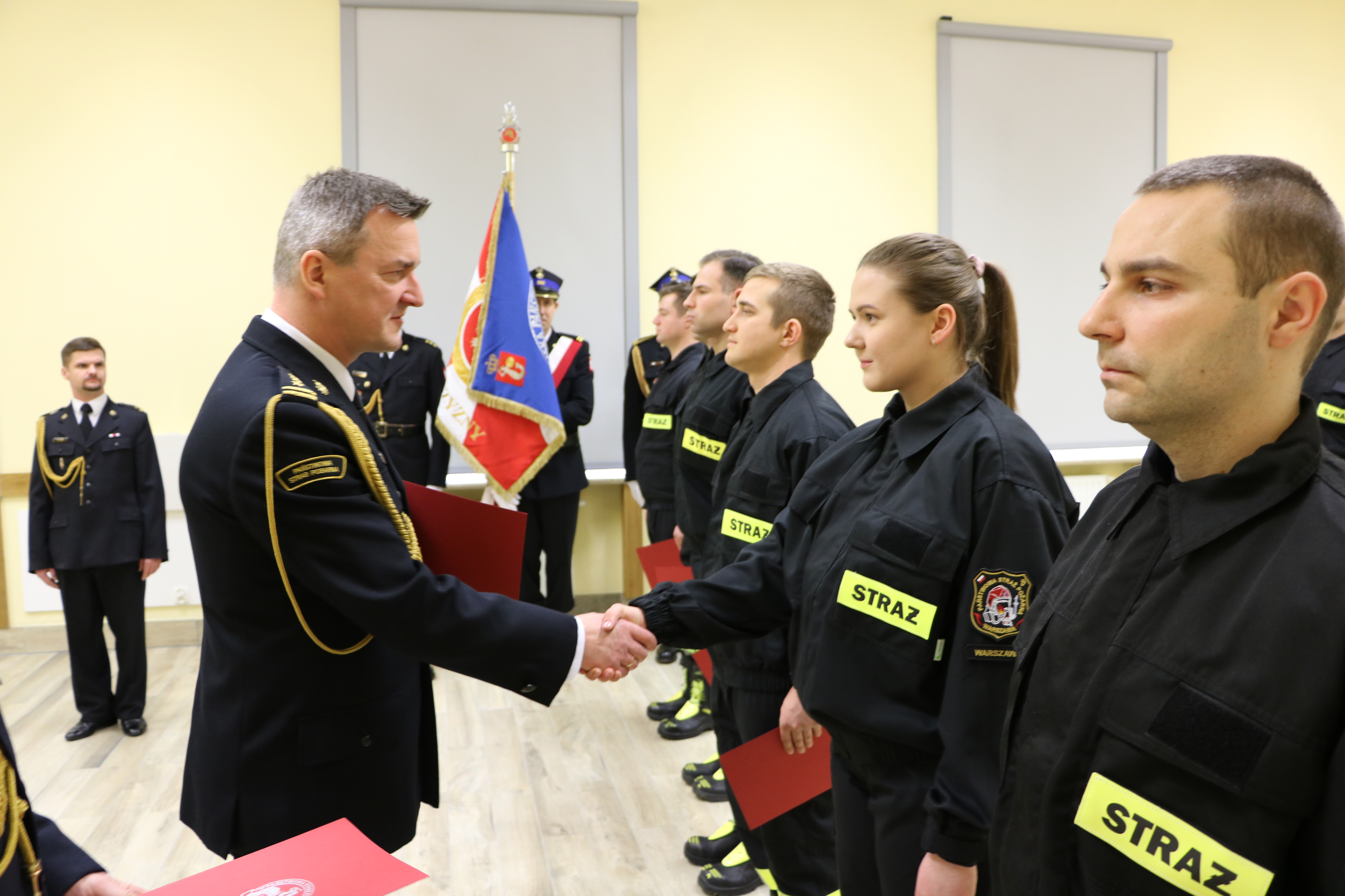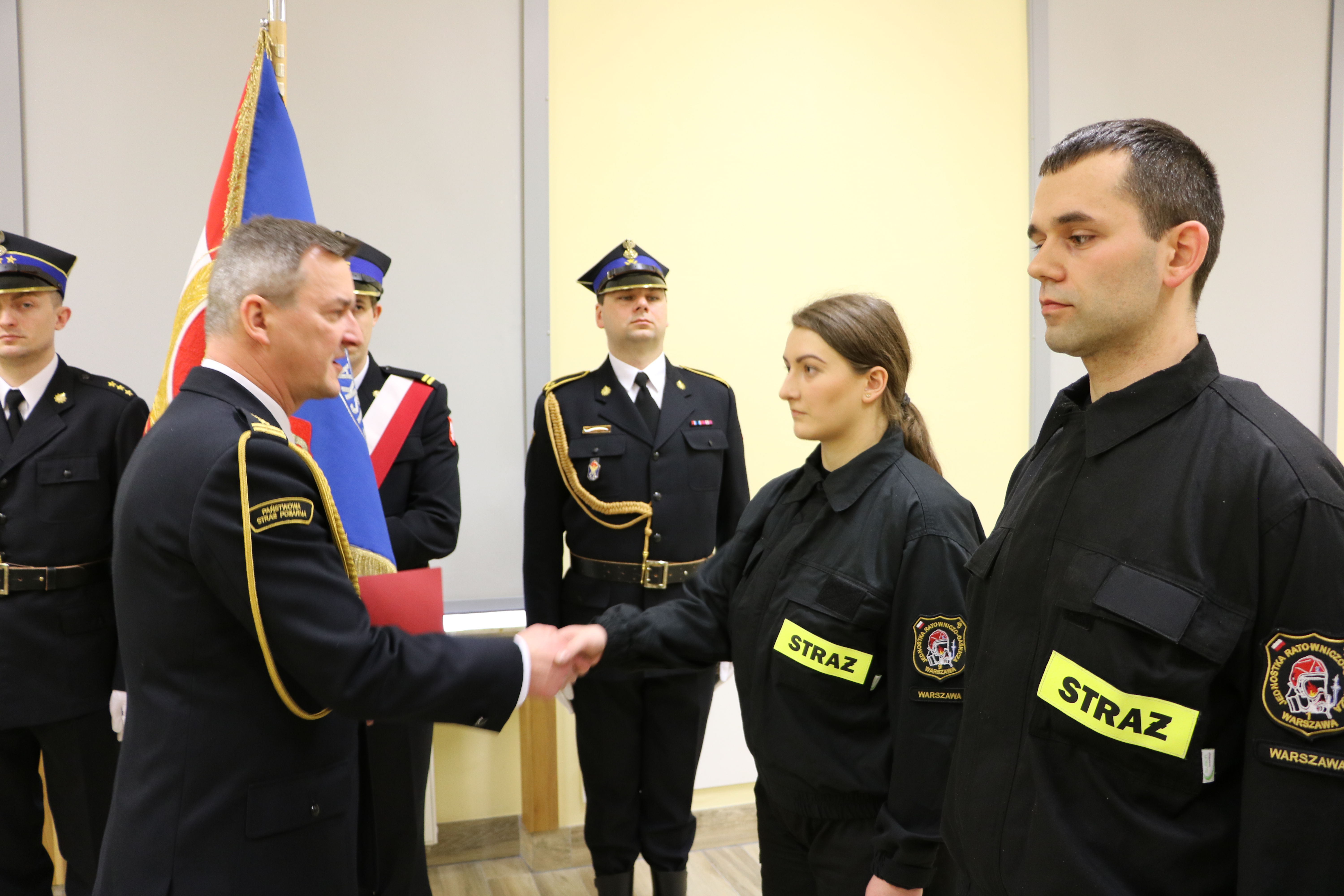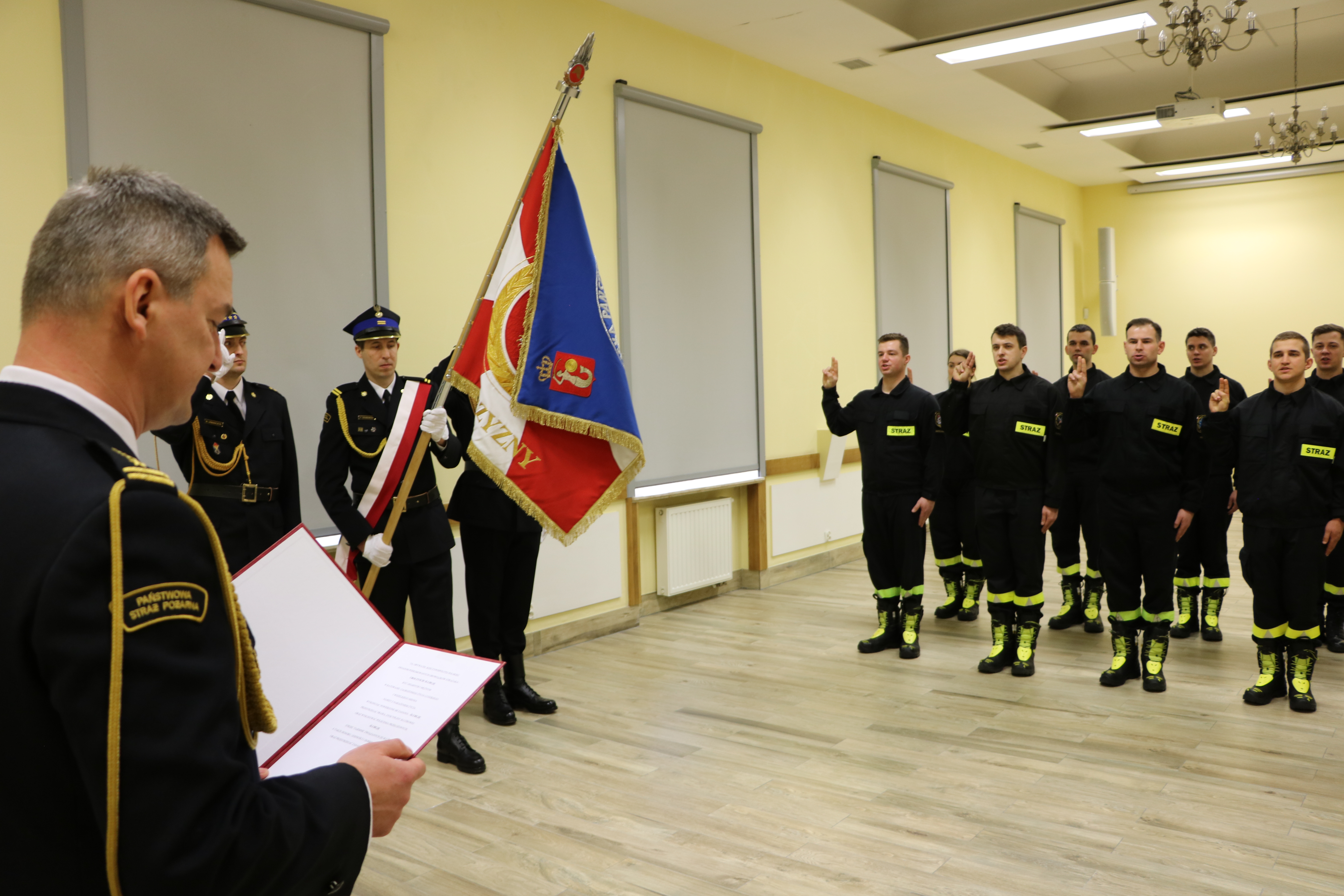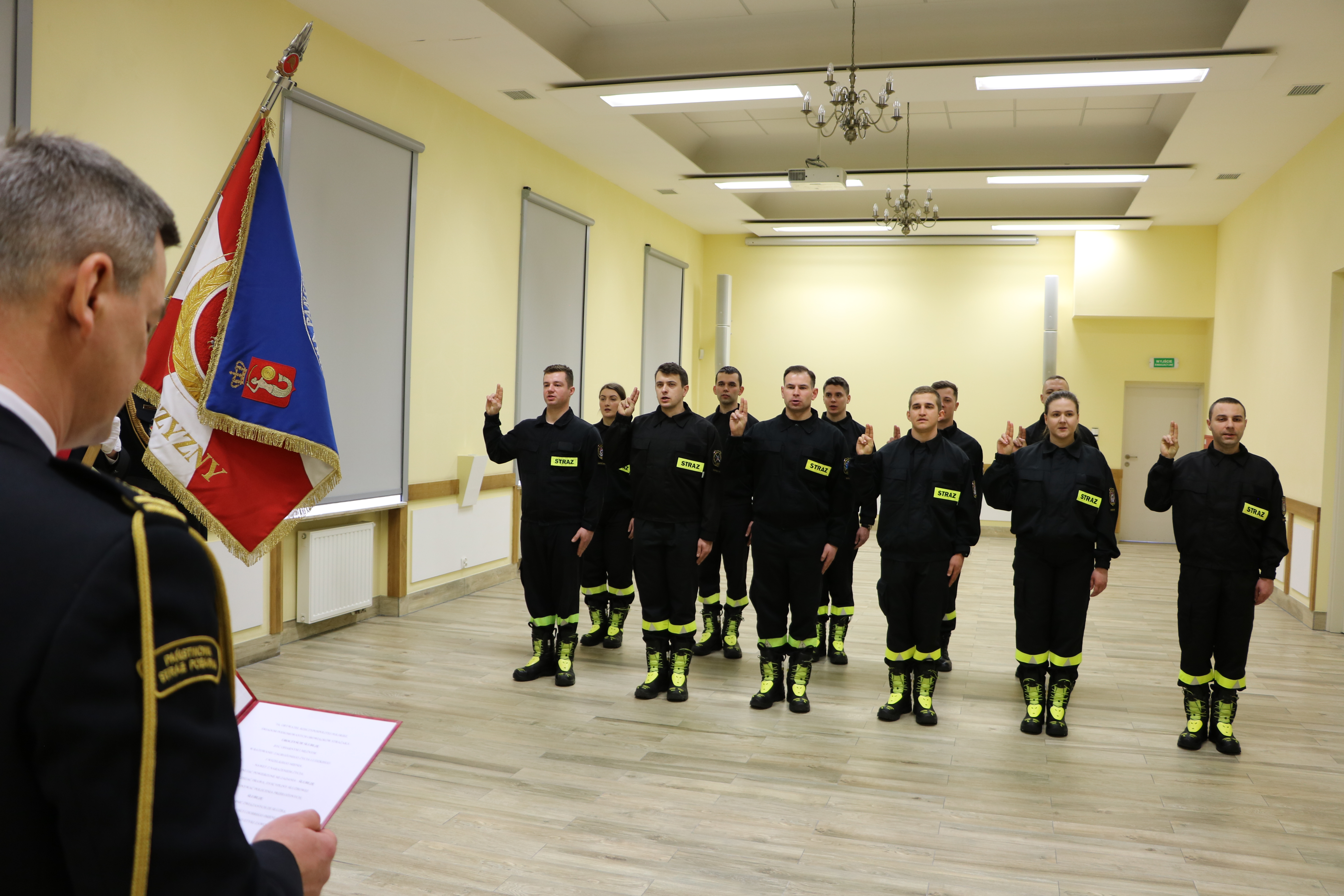 Rotę ślubowania w obecności Komendanta Miejskiego PSP m.st. Warszawy st. bryg. Leszka Smuniewskiego wypowiedziało 11 strażaków, którzy rozpoczeli służbę w Jednostkach Ratowniczo-Gaśniczych i wydziałach KM PSP m.st. Warszawy.