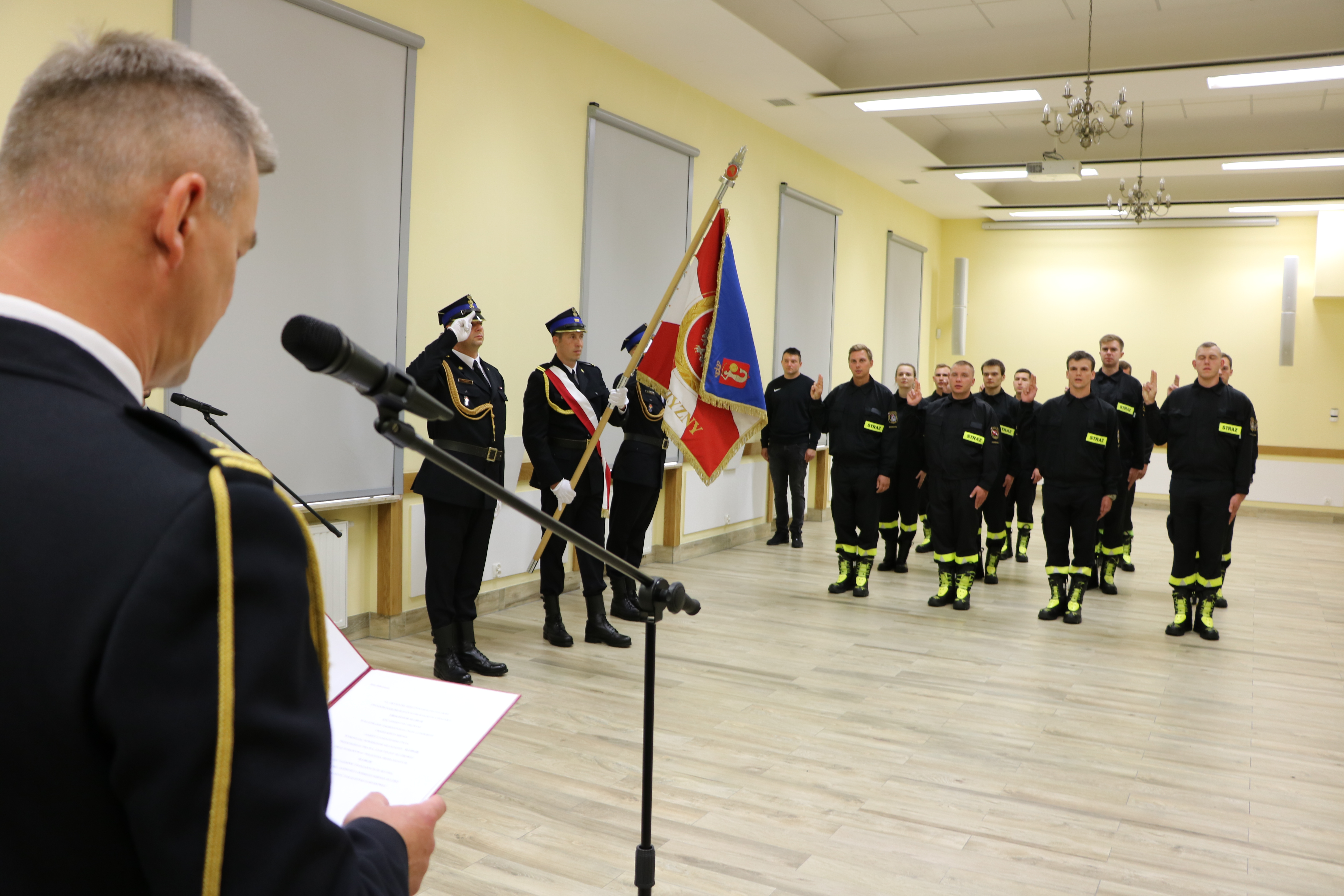 Rotę ślubowania w obecności Komendanta Miejskiego PSP m.st. Warszawy st. bryg. Leszka Smuniewskiego wypowiedziało 11 strażaków, którzy rozpoczęli służbę w Jednostkach Ratowniczo-Gaśniczych nr 1,4,5,6,7,9,12 i 17 KM PSP m.st. Warszawy.