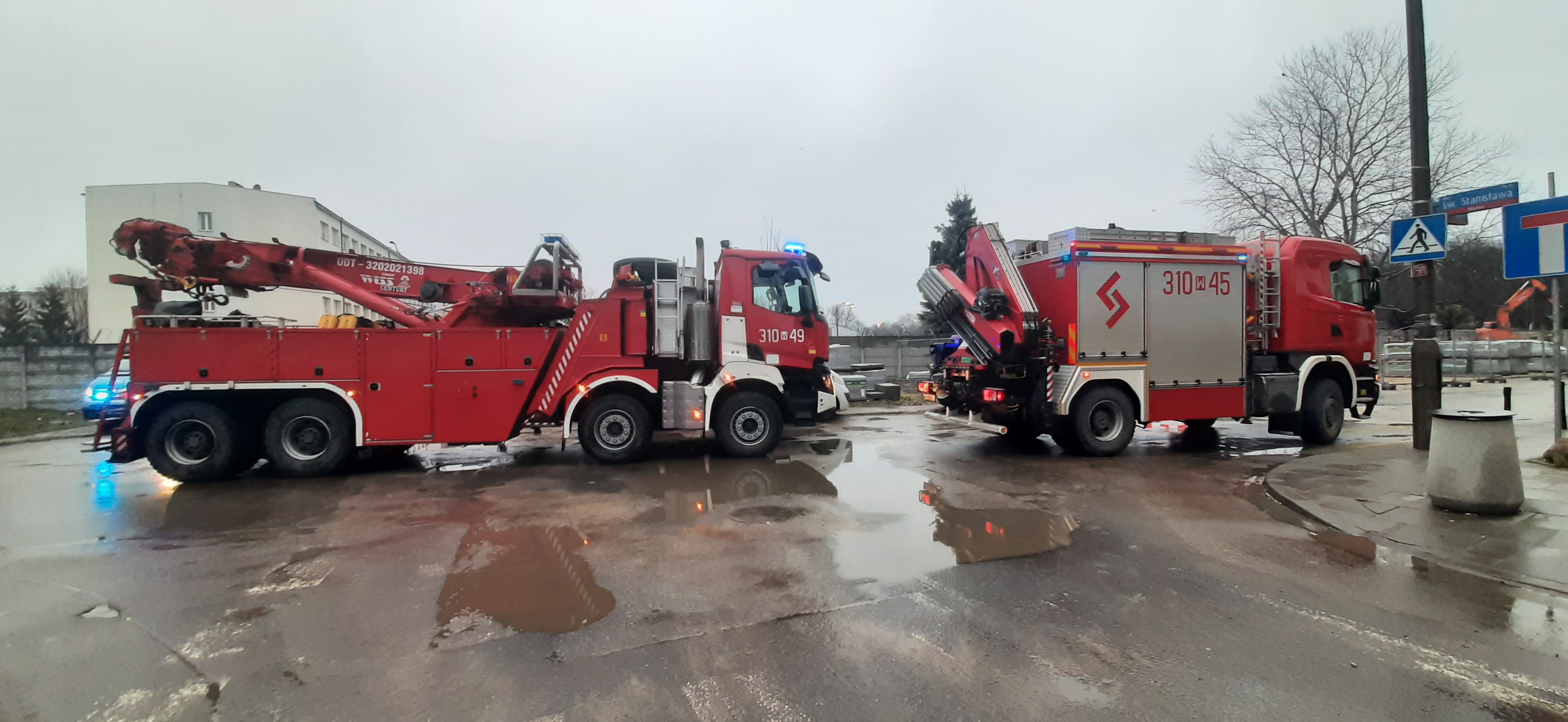 Podjęto decyzje o zadysponowaniu Specjalistycznej Grupy Ratownictwa TechnicznegoWarszawa 10. Po jej dojeździe przystąpiono do podniesienia ciężarówki. Samochód został postawiony na koła. Następnie sprawdzono wnętrze pojazdu osobowego- - nie znajdowały się w nim żadne osoby.