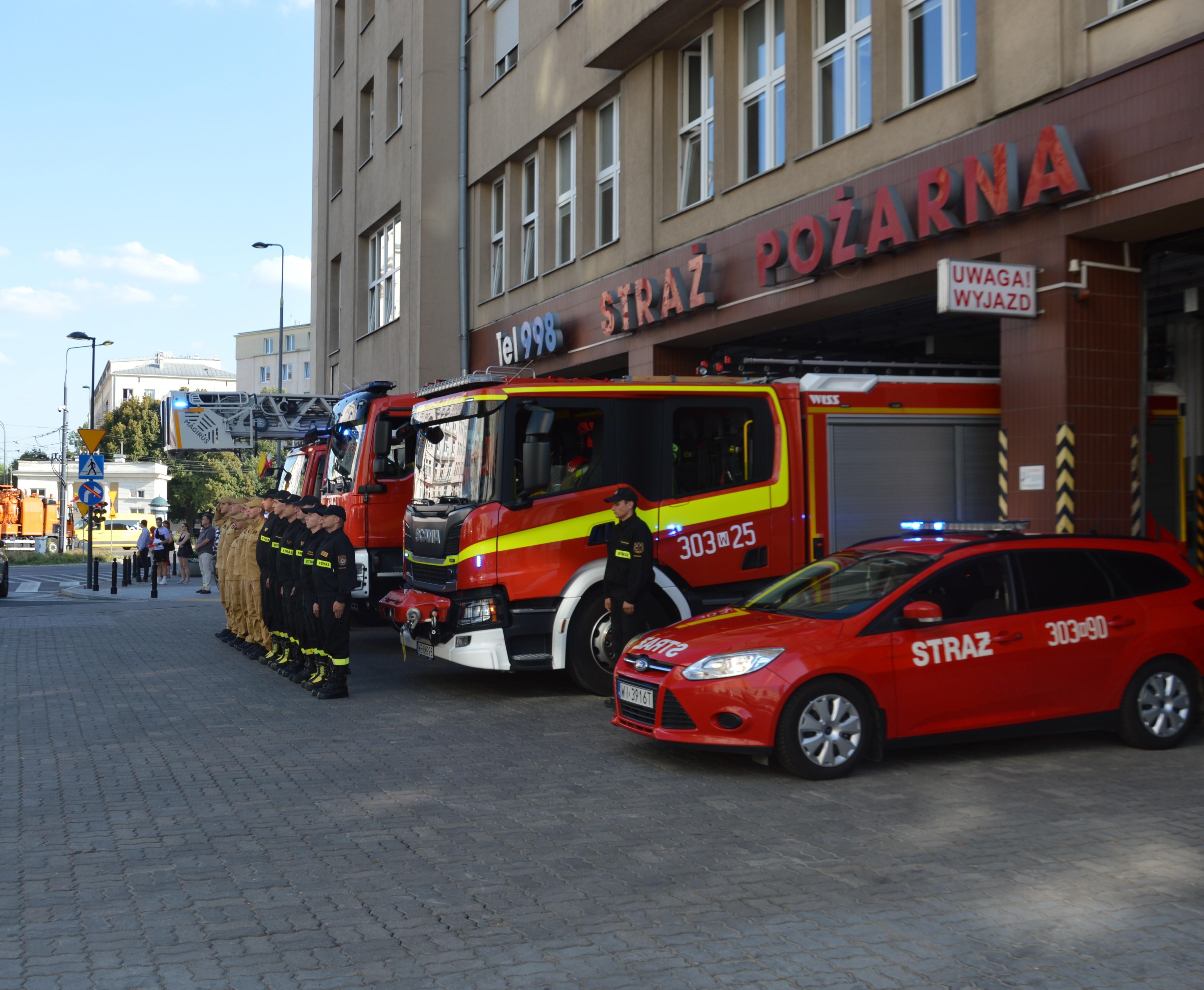 Warszawa, 1 sierpnia 2024 r., w 80. rocznicę wybuchu Powstania Warszawskiego, warszawscy strażacy oddali hołd bohaterskim powstańcom. Punktualnie o godzinie 17:00, zwanej "Godziną W" przed budynkami Jednostek Ratowniczo-Gaśniczych przy dźwiękach syreny oraz sygnałów alarmowych samochodów gaśniczych, strażacy pełniący w tym dniu służbę oddali hołd Powstańcom Warszawskim.