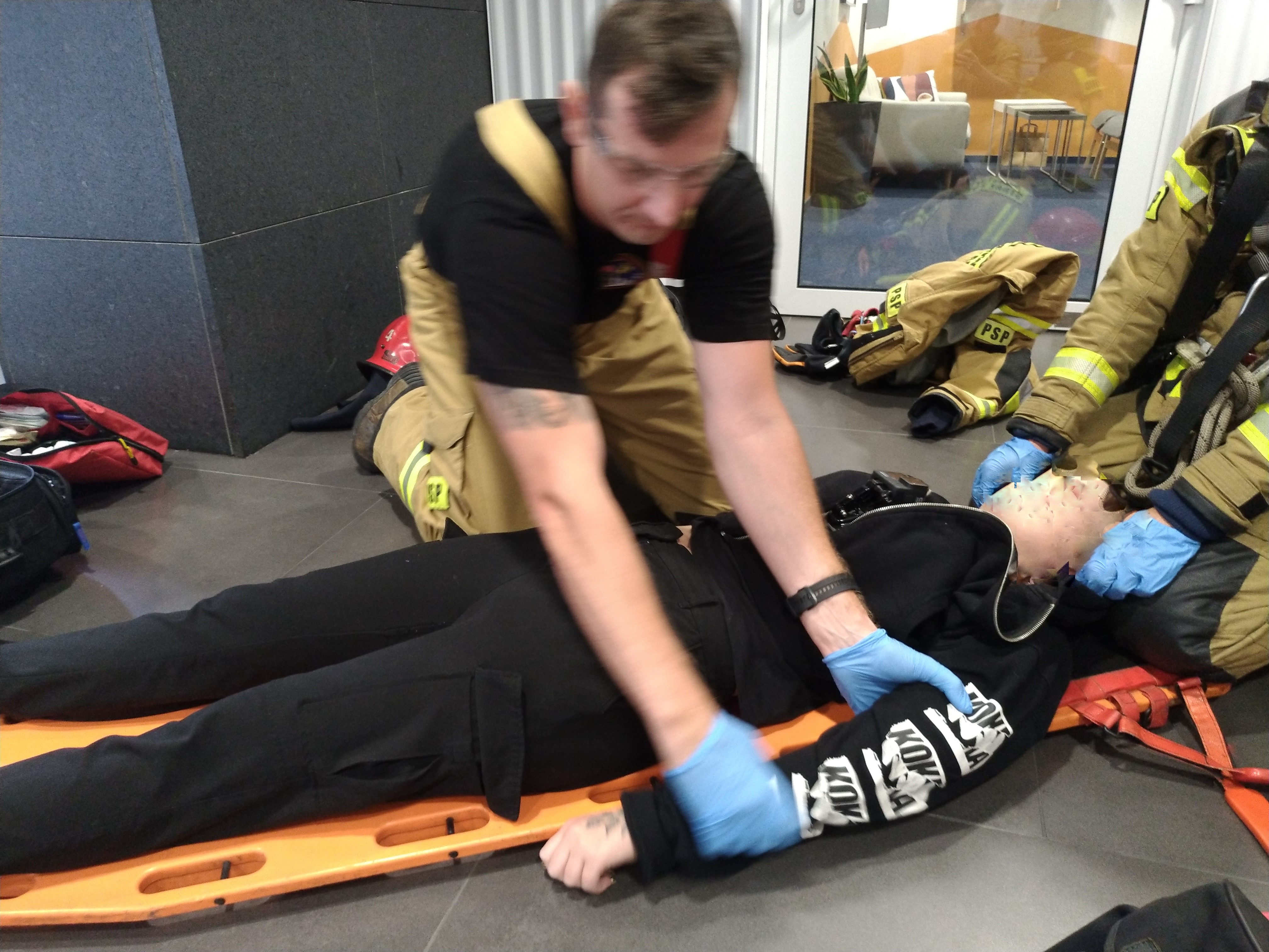 Scenariusz ćwiczeń przewidywał pożar na powierzchni biurowej na 6. piętrze z jedną osobą poszkodowaną. W ćwiczeniach brały udział 4 zastępy z JRG 4. Działania zastępów polegały na lokalizacji pożaru, przeszukaniu kondygnacji zagrożonych pożarem oraz ewakuacji osoby poszkodowanej przy użyciu dźwigu pożarowego i udzieleniu jej kwalifikowanej pierwszej pomocy poza strefą zagrożenia. Z budynku ewakuowano 800 pracowników.