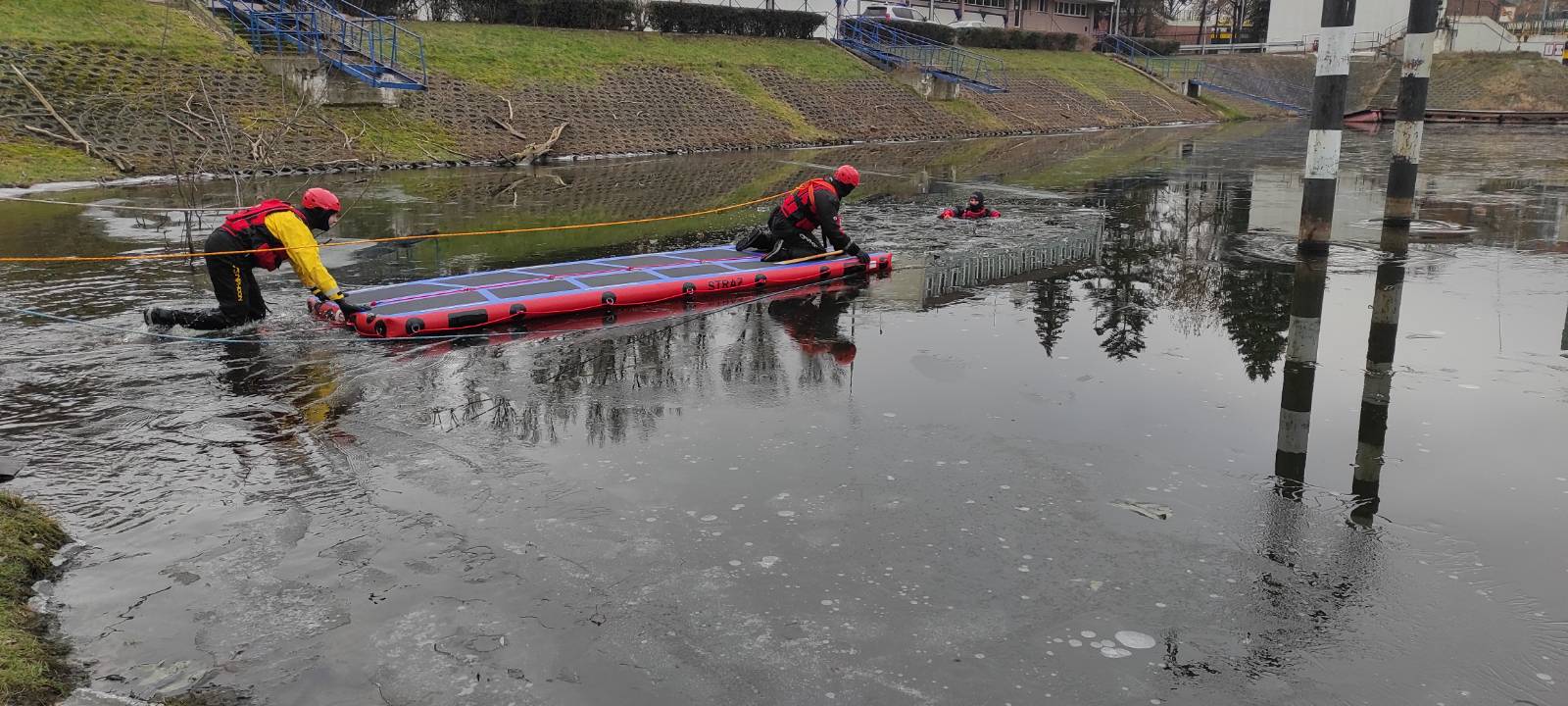 - utrwalenie umiejętności z zakresu ewakuacji osób poszkodowanych z zamarzniętych zbiorników.