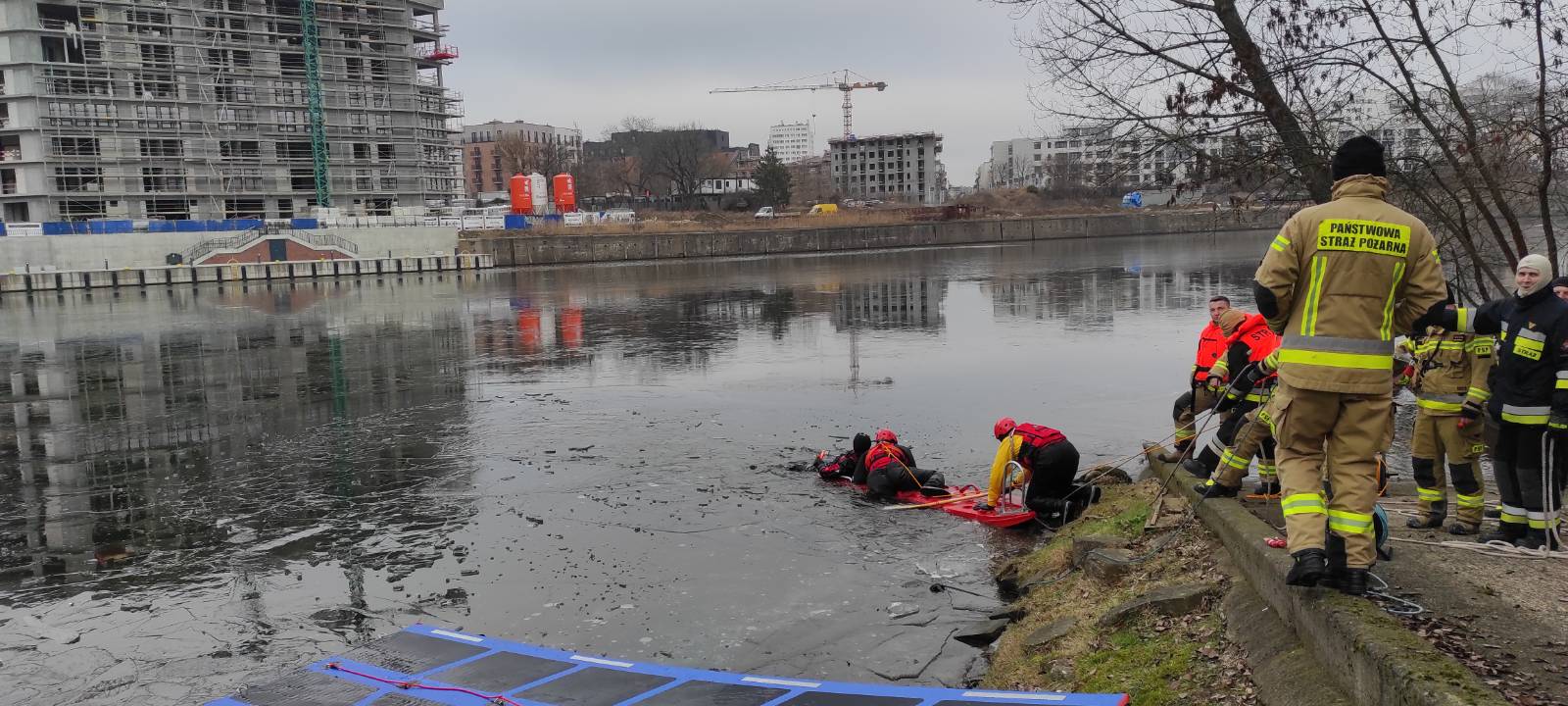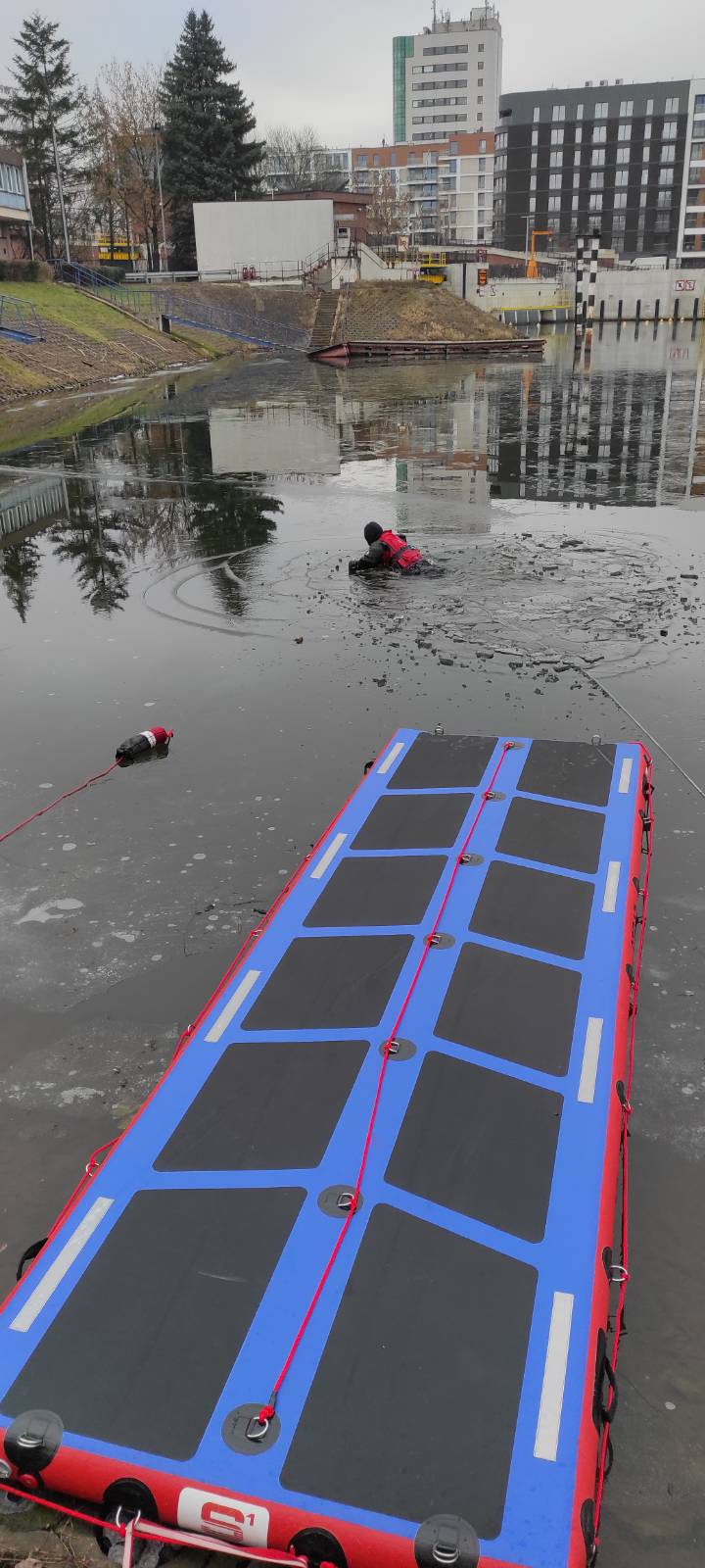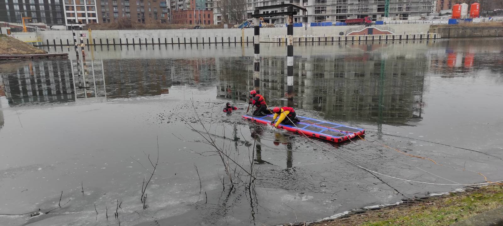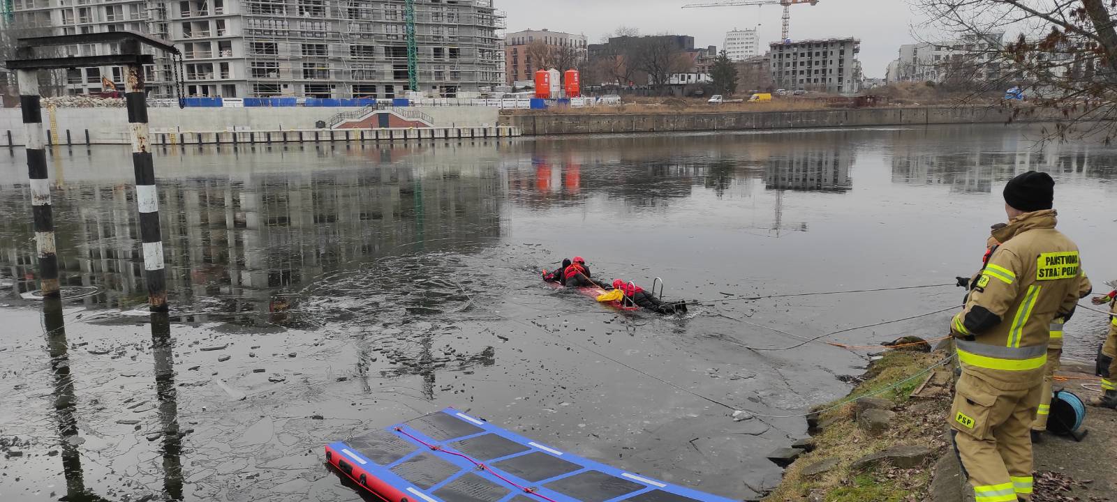 W dniach 14-16.02.2023r. na zamarzniętym akwenie Portu Praskiego odbyły się ćwiczenia z ratownictwa wodno-lodowego. Wzięli w nich udział strażacy z trzech zmian służbowych JRG 5.
